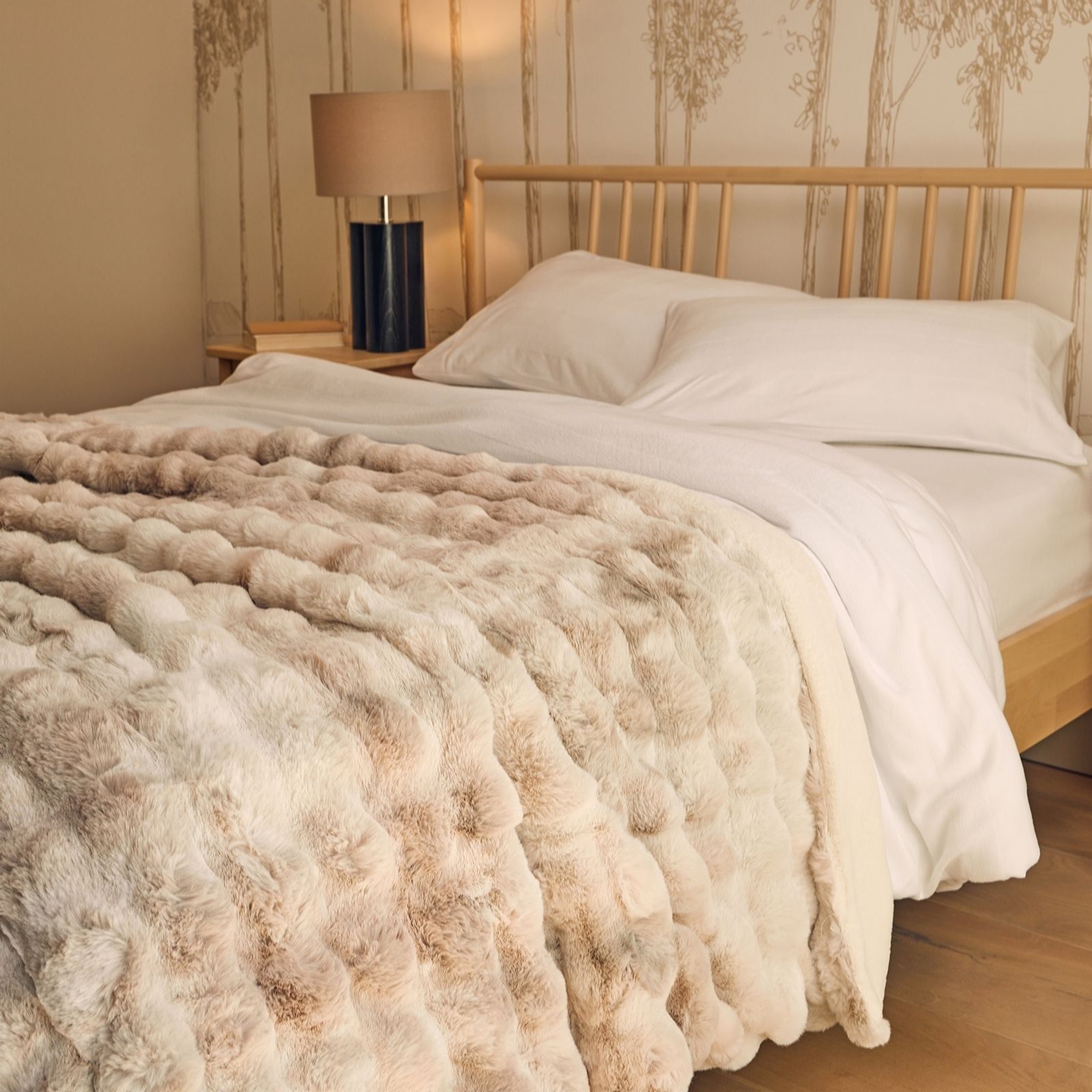 - designed to mimic the look and feel of real fur, this throw boasts a dreamy softness that's begging for a cuddle. It's not just a treat for the senses, but easy to care for. Simply pop it in the washing machine at 40C to keep it fluffy-fresh.