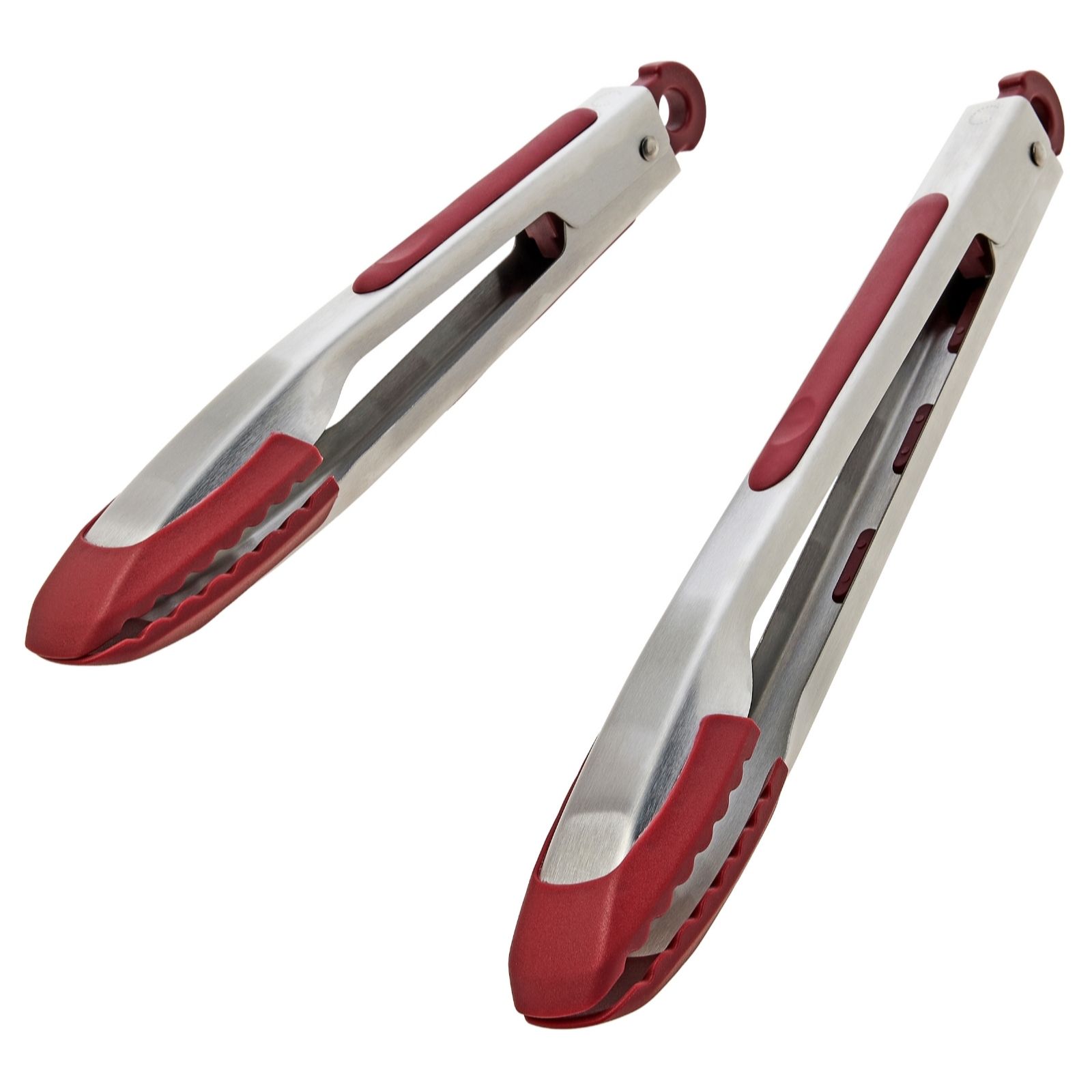 Make your kitchen tasks effortless with the Curtis Stone set of two push tongs. Designed for both kitchen and grill use, these versatile tongs feature serrated edges for a firm grip, perfect for lifting, turning and transferring food. The innovative push lock mechanism allows for easy one-hand operation, while the soft touch handle ensures a comfortable grip. Crafted from heavy gauge stainless steel, these tongs are built to last and are heat resistant up to 232C, making them ideal for various cooking needs.