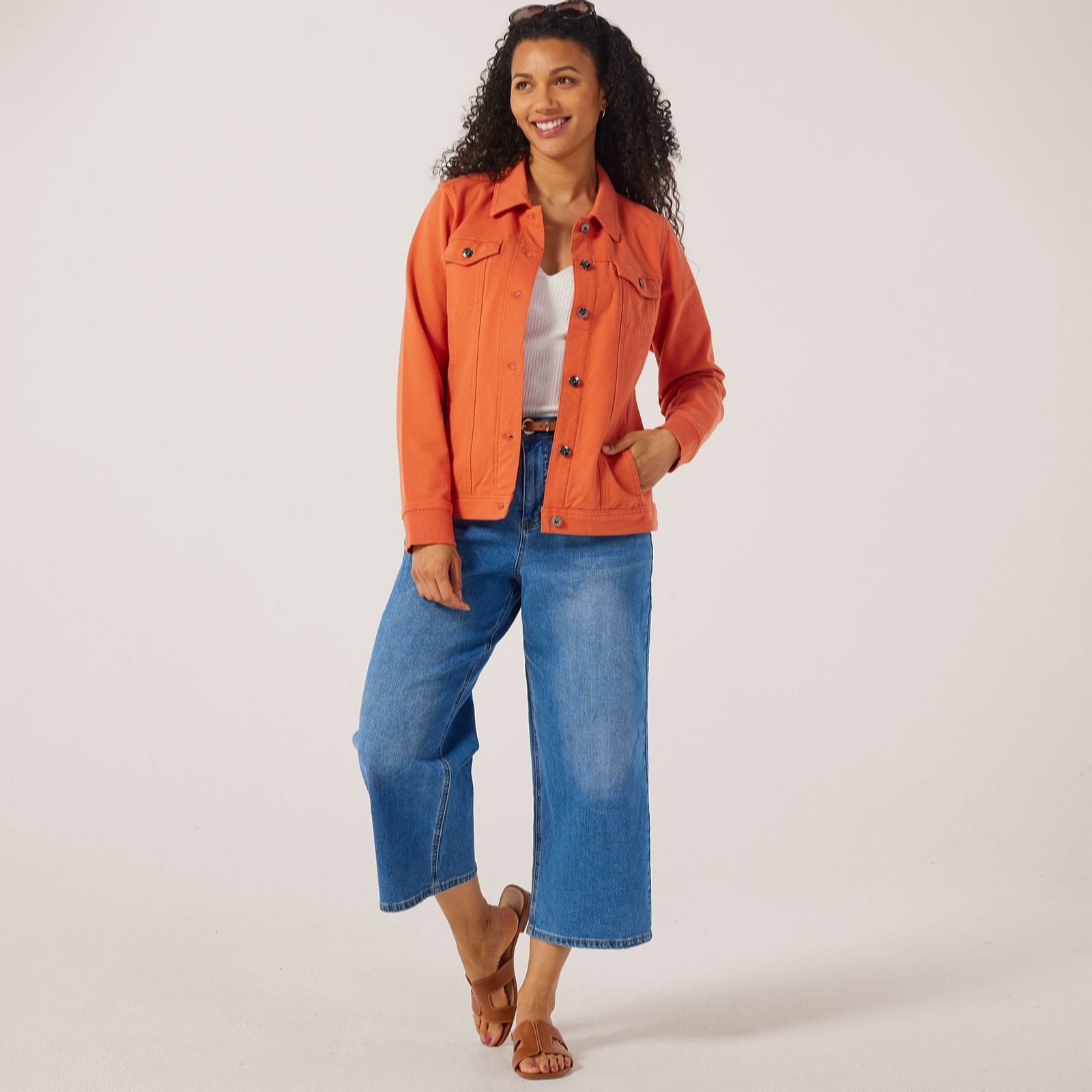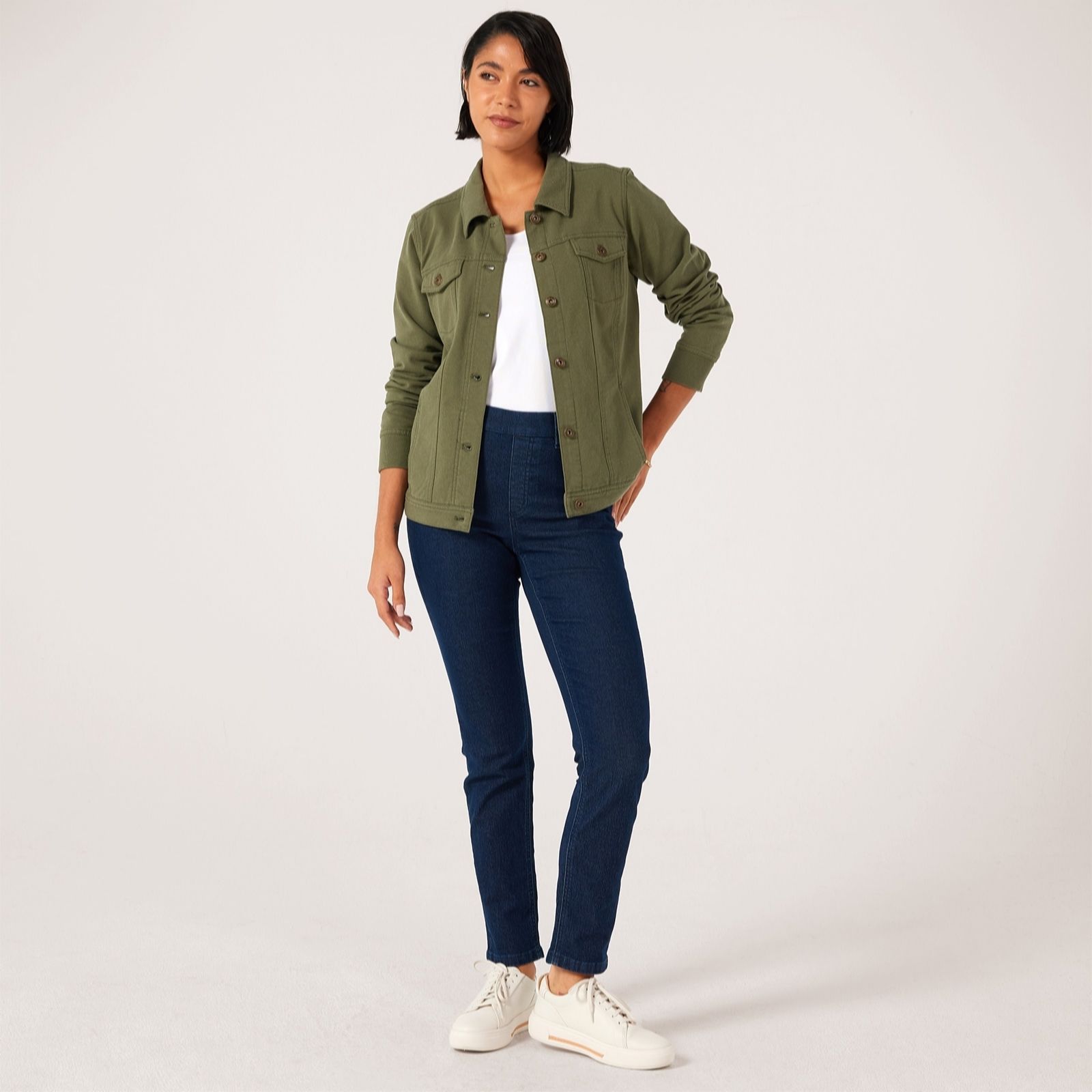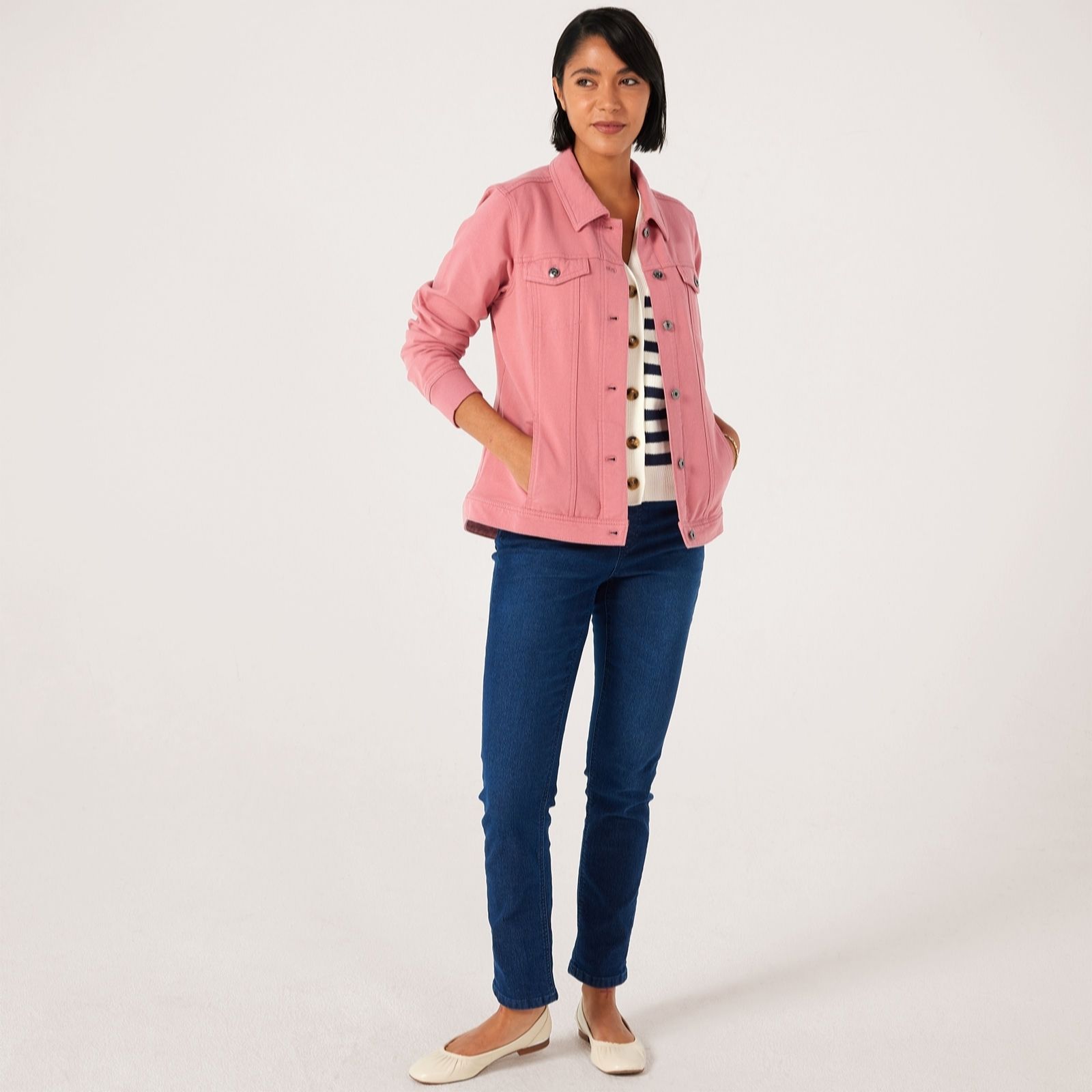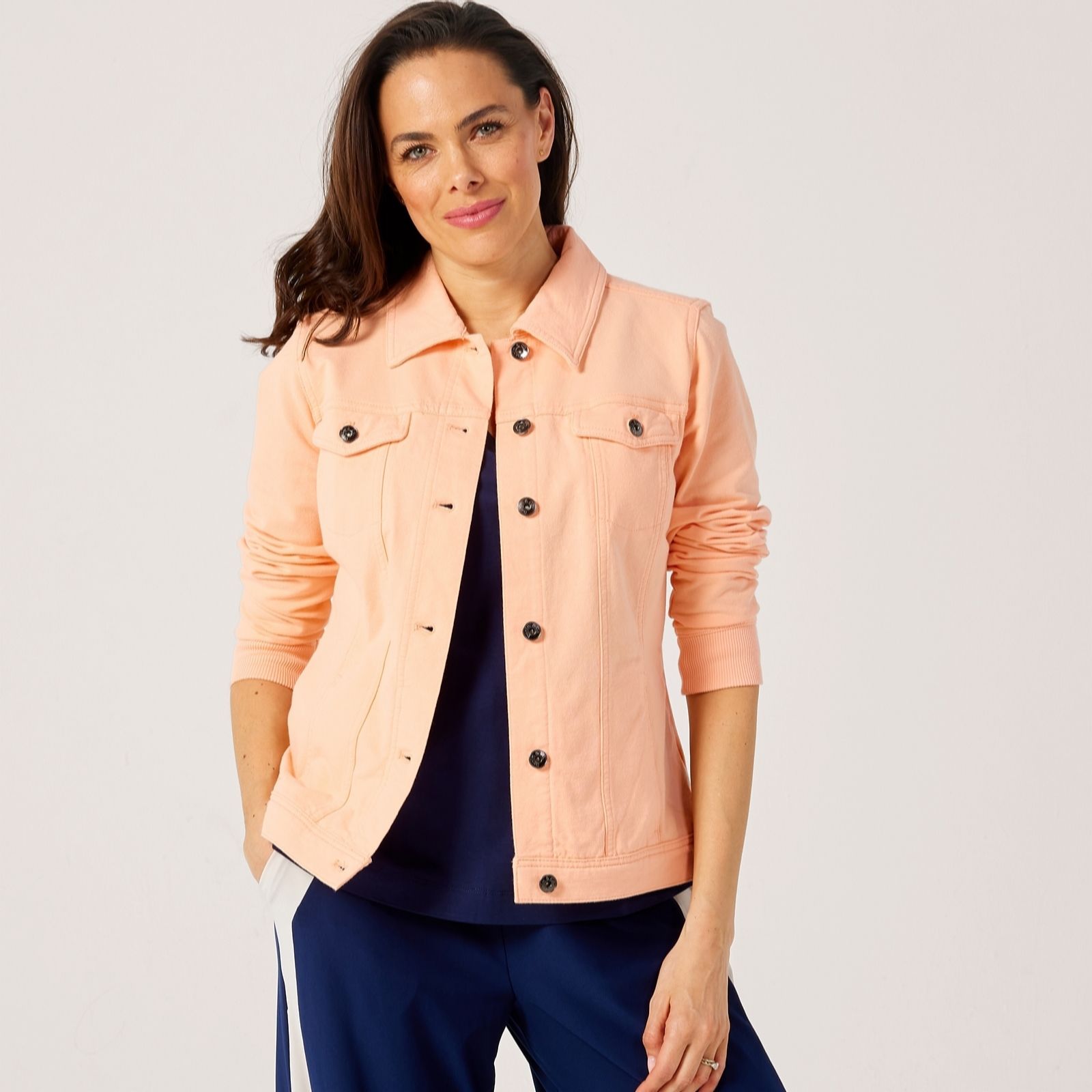 A denim-style jacket from Denim & Co. in lightweight cotton, featuring a neat shirt collar, front pockets and long sleeves, with seam detailing. Transitional and timeless, this stylish piece will prove a favourite season after season.