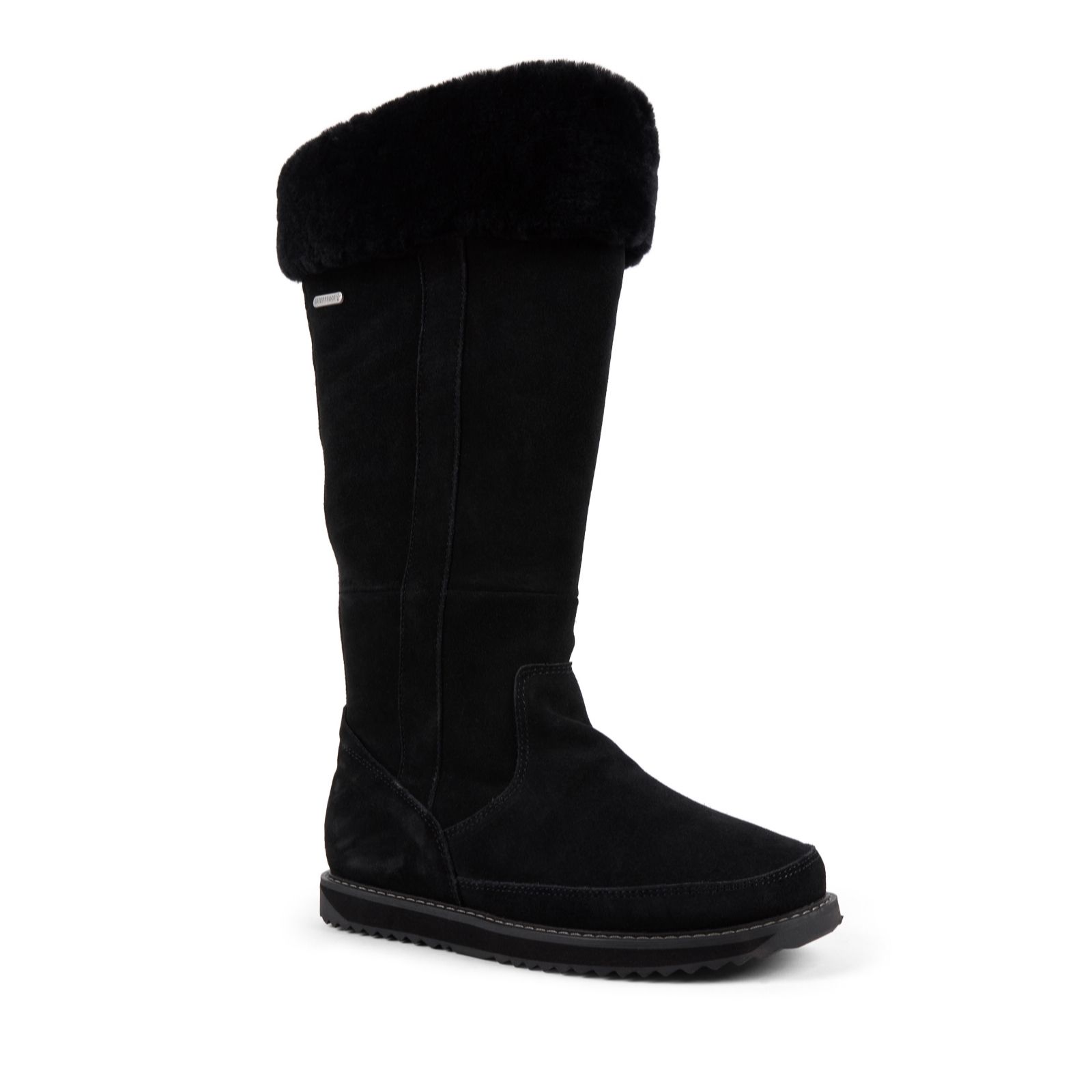 Stand up to the weather in the Georgi waterproof boots from EMU, crafted in premium suede with a cosy exposed cuff and plush sheepskin lining for warmth from top to toe. Perfect for frosty walks, supermarket runs or relaxing after a day on the slopes, they combine durability with understated style. Pair them with skinny jeans and a classic trench coat for a snug, effortless winter look.