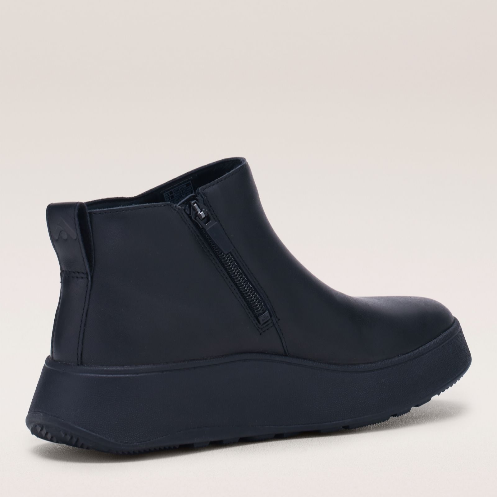 Step into modern minimalism with the Fitflop F-Mode flatform ankle boots. These stacked little zip boots are all-round superstars, featuring a low-cut upper on a superchunky yet lightweight sole. Crafted from supple high-quality leather, they sport a low ankle with simple lines and minimal seaming. A full inside zip with logo pull tabs ensures easy on/off. Perfect for both work and off-duty, they pair beautifully with almost everything in your wardrobe, offering ergonomic comfort and cloud-like cushioning.
