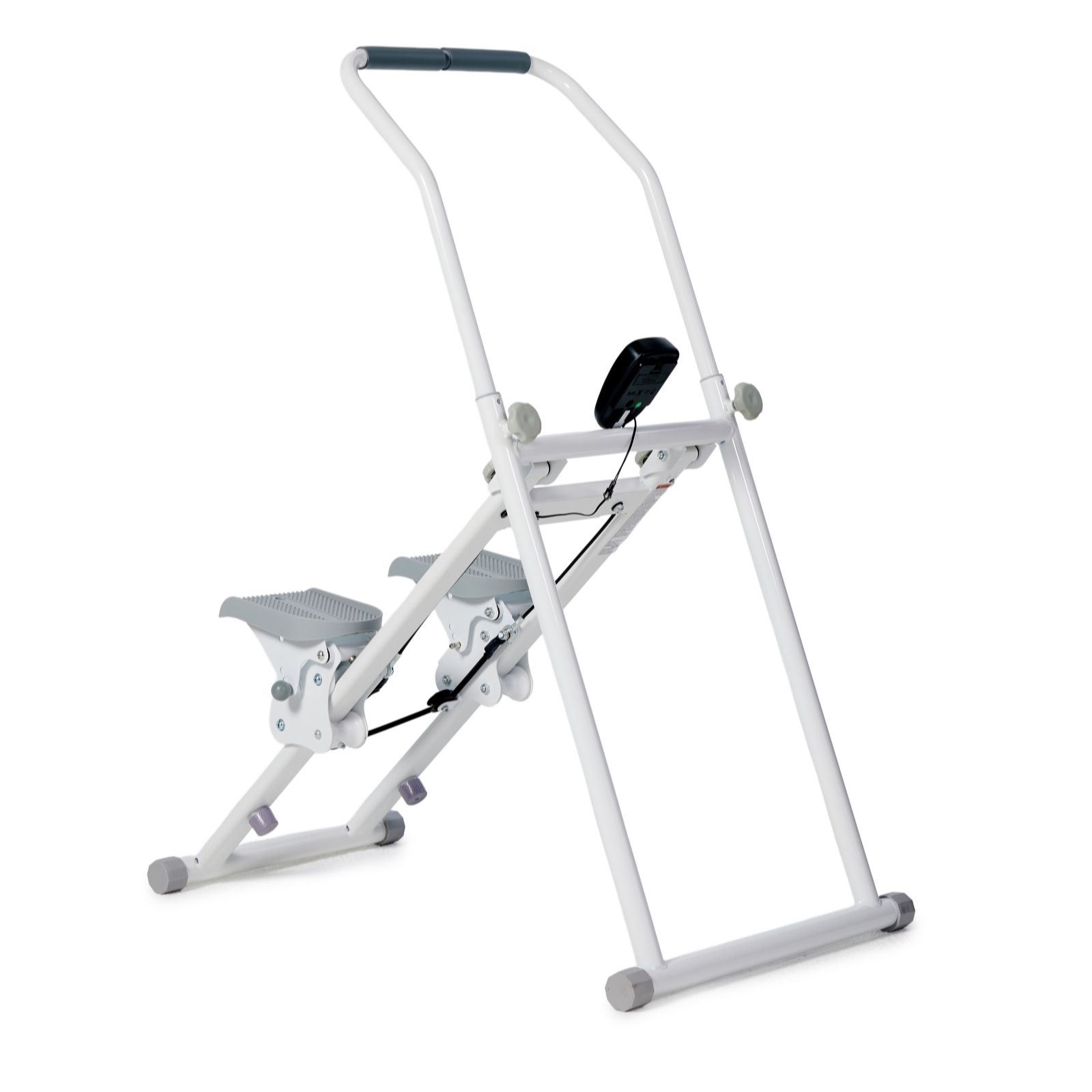 Step up your home fitness game with the FitQuest Stair Climber Elite, designed to help you enjoy a challenging cardio and strength workout without leaving your living room. With its innovative rotating handlebars and clear LED display, this machine allows you to switch up your routine and keep track of your progress as you go. When you're done, simply fold it away for easy storage.