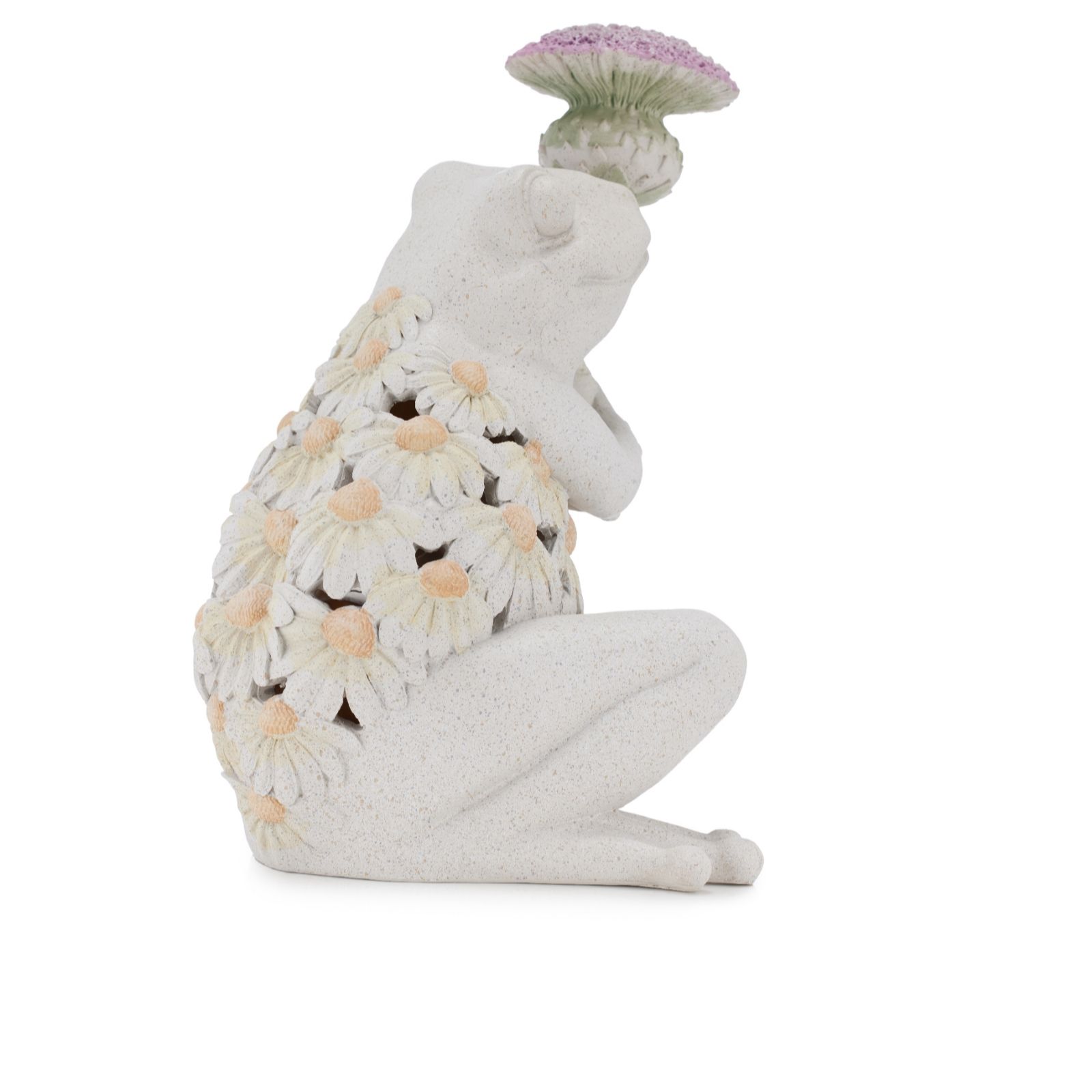 Add a touch of whimsy to your garden with the Garden Reflections Decorative Frog with Flower. Crafted from a blend of polyresin and stonepowder, this charming frog is available in two delightful versions: one with a daisy and the other with a thistle. Its intricate design and durable material make it a perfect addition to any outdoor space, creating a playful and inviting atmosphere. Whether placed among your flower beds or on your patio, this decorative frog is sure to bring a smile to your face and enchant your guests.