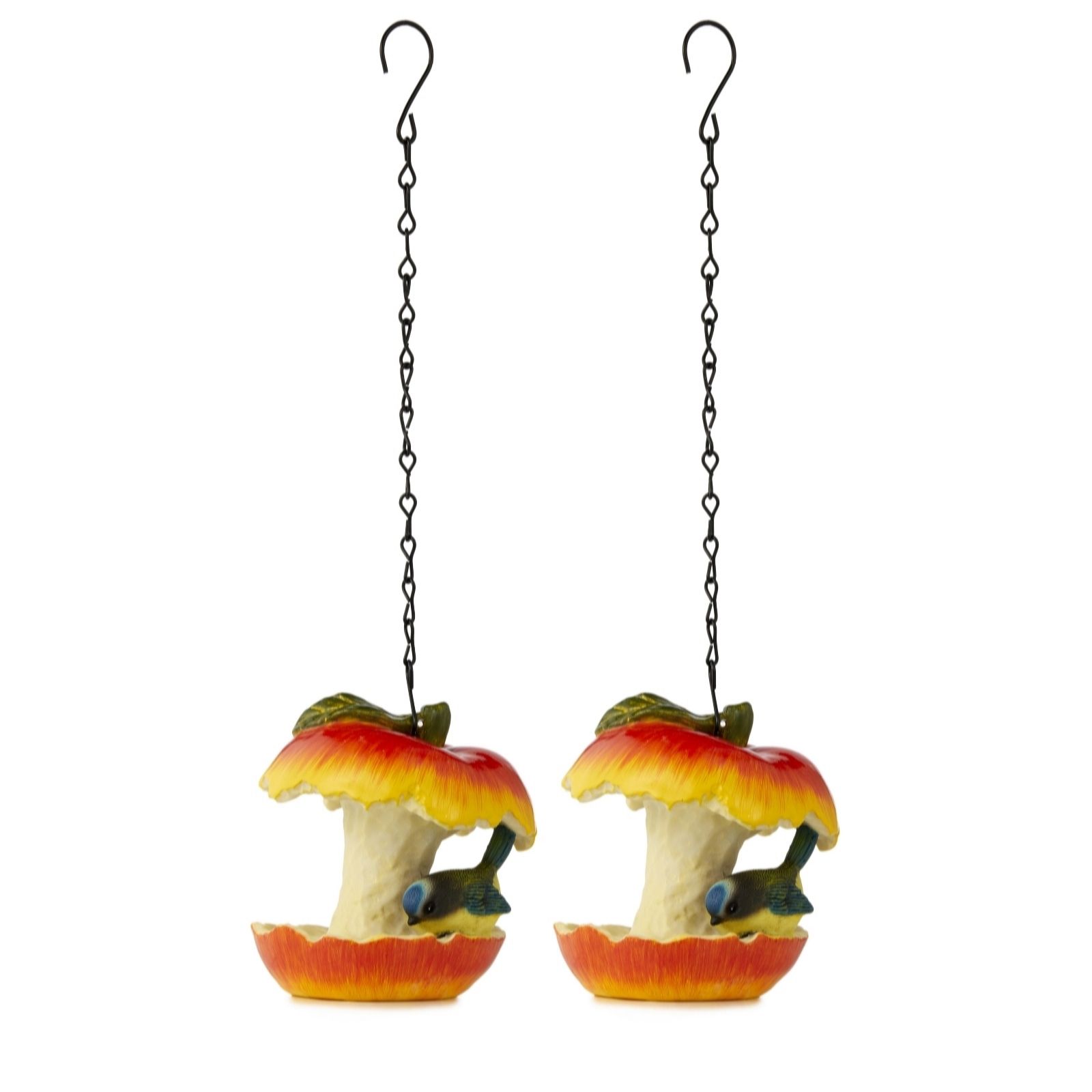 - Set includes two apple-shaped bird feeders