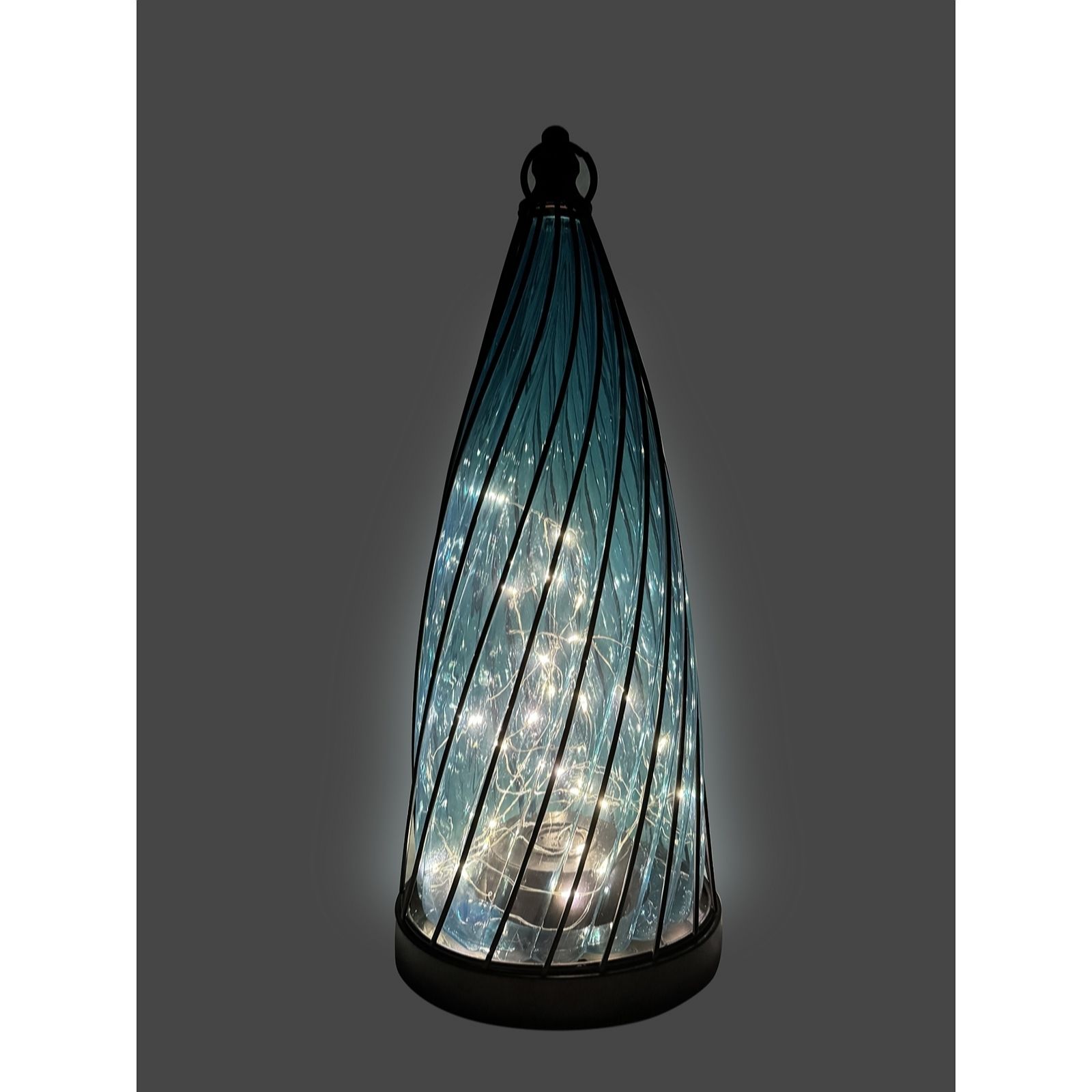 Let your outdoor evenings shine with the Garden Reflections spiral lantern, where a graceful spiral design glimmers with the soft radiance of 30 warm white rice LEDs. Perfect for garden parties or quiet nights on the patio, this lantern adds a magical glow to any corner, indoors or out, and comes ready to use with batteries and a handy timer function for effortless ambience.