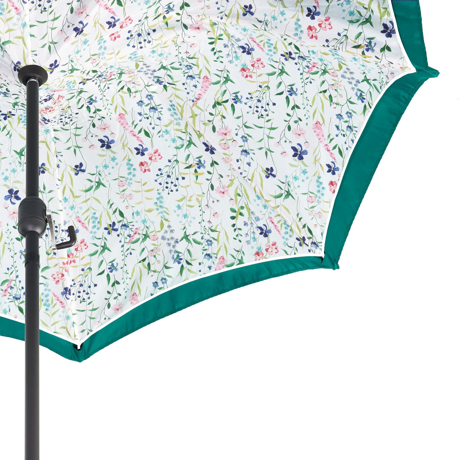 - Polyester canopy with floral printed inner lining