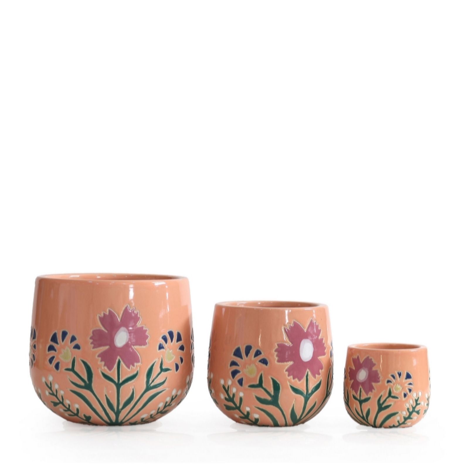 Elevate your garden with the Garden Stories Sorbet Collection set of three ceramic floral planters from My Garden Stories. These beautifully hand-painted earthenware planters bring a delightful touch of artistry to any space. Perfect for both indoor and outdoor use, these planters include drainage plugs, making them versatile for various settings. Each piece is uniquely crafted, ensuring your garden stands out with its own character.