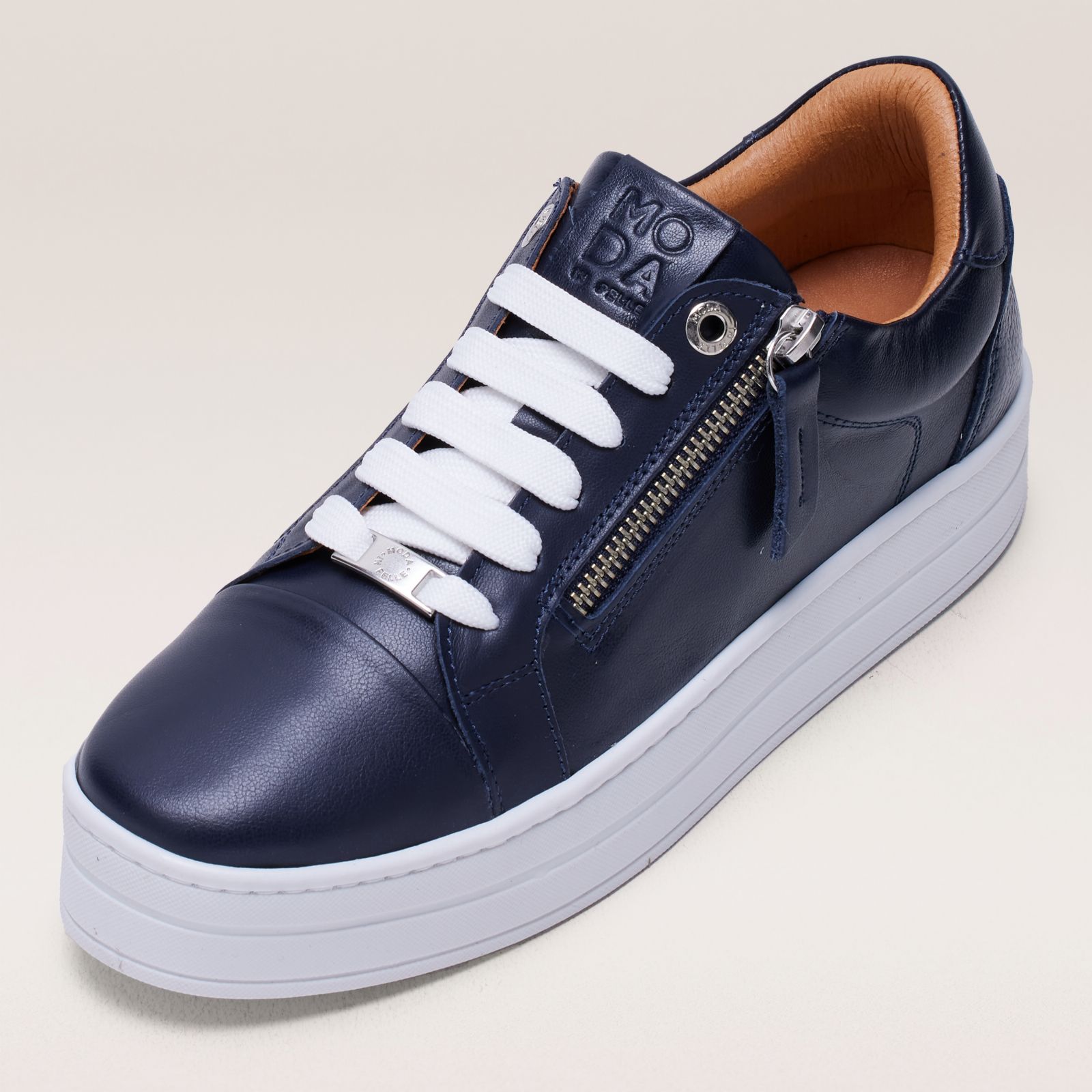 Step into urban sophistication with the Abbiy trainers from Moda In Pelle. These chunky trainers, featuring a stylish side zip and lace-up design, combine modern aesthetics with practical comfort, making them a must-have for your casual wardrobe. The 4cm heel height adds a subtle lift, perfect for day-to-day errands or a casual weekend outing. Pair these versatile trainers with your favourite jeans and a cosy jumper for a chic, laid-back look.