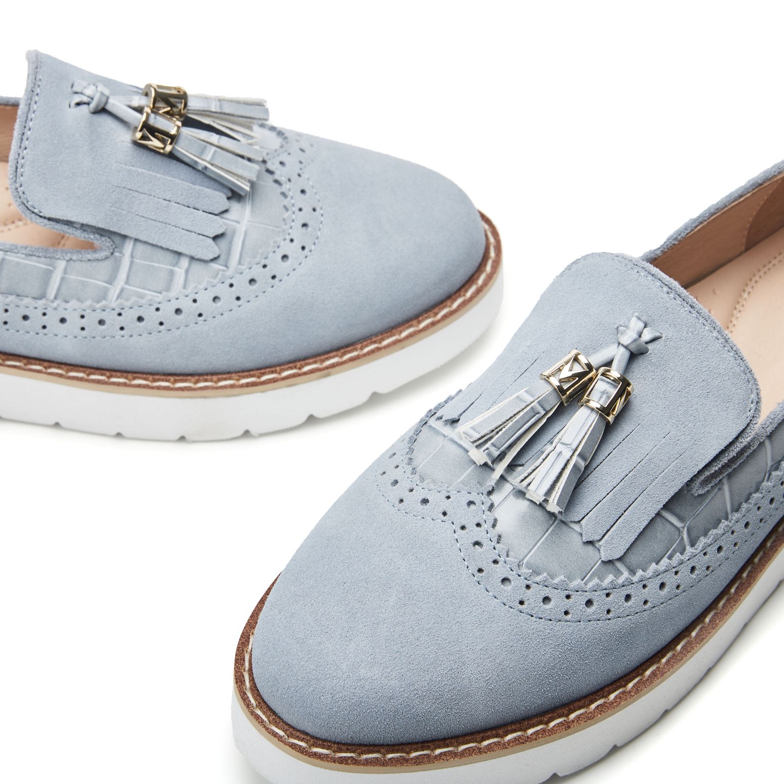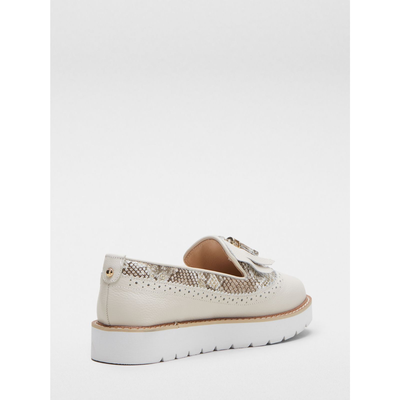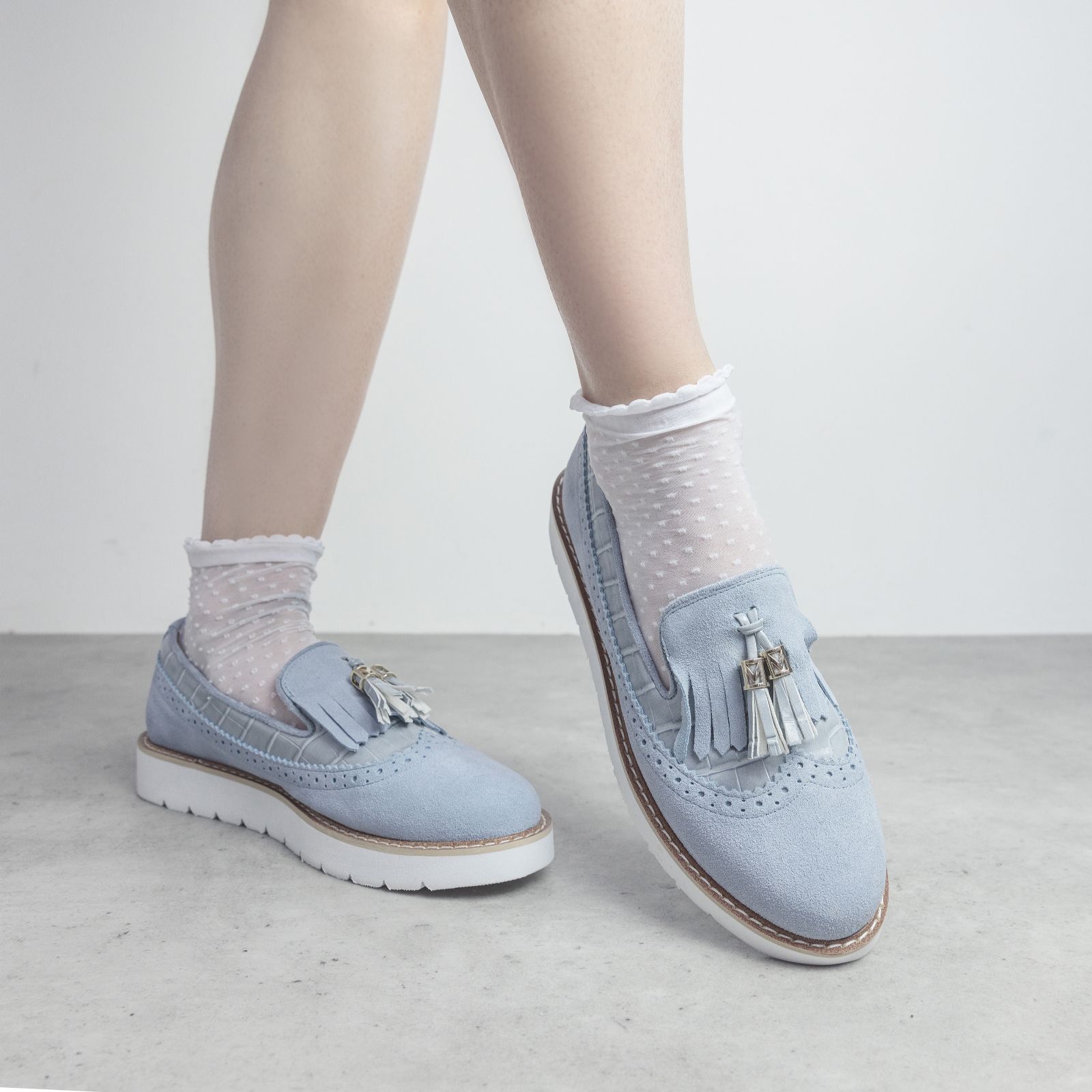 Step into effortless sophistication with the Eilani loafers from Moda In Pelle. Adorned with a classic brogue detail and set on a comfortable EVA wedge, these shoes are not just a style statement but a nod to timeless elegance. Perfect for office meetings or weekend brunches, they can be paired with tailored trousers or a flowing skirt for a chic look.