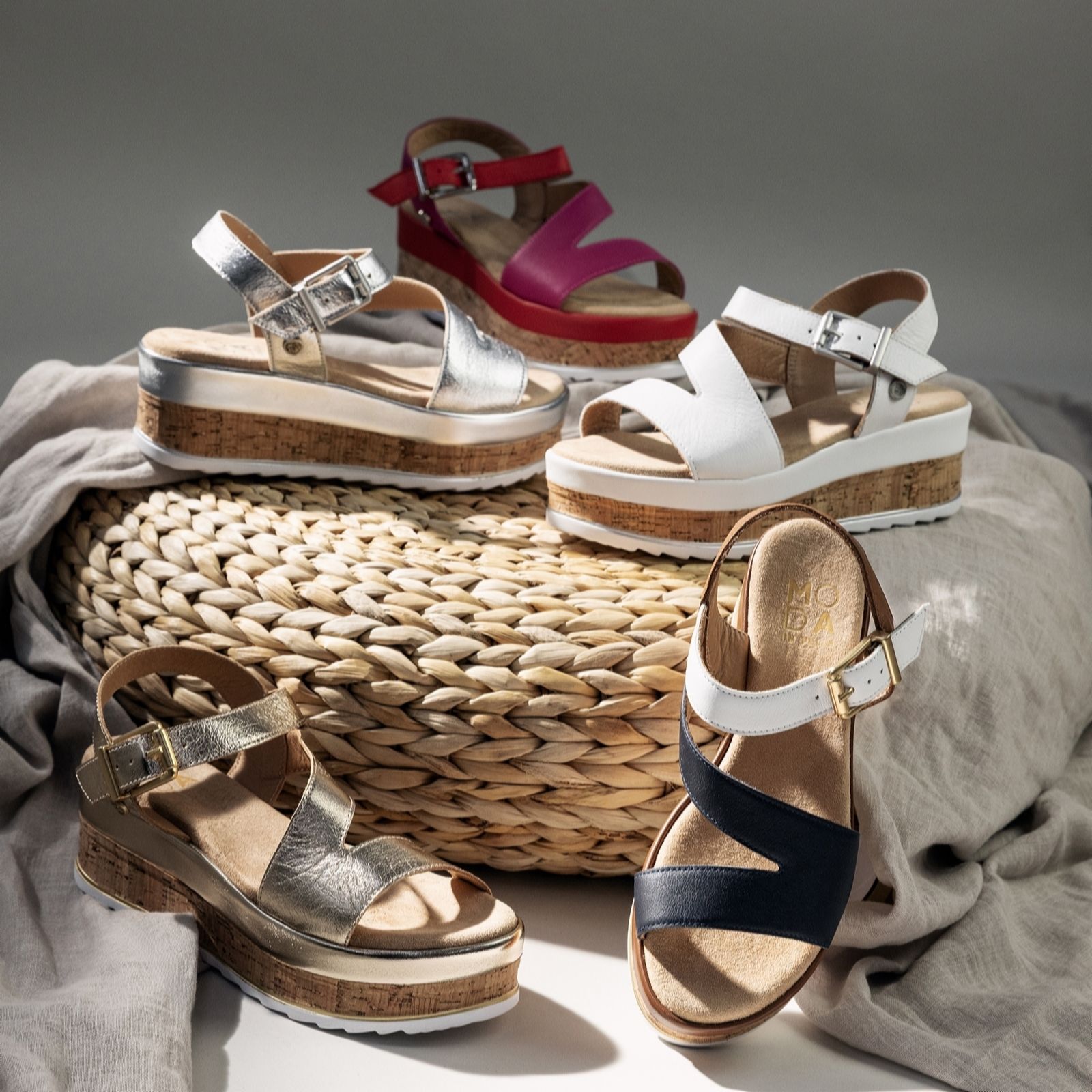 Dust the cobwebs off your warm-weather wardrobe and say hello to the Pepper sandals from Moda in Pelle! These gorgeous sandals, currently only available at QVC, boast asymmetrical straps in buttery soft leather for a contemporary-chic style that feels as good as it looks. Perfect for uplifting your look, cork wedge soles provide just the right amount of lift, so you can stroll or strut from morning to night. Whether there's a picnic, an evening out or a holiday in your plans, these sandals are just the ticket.