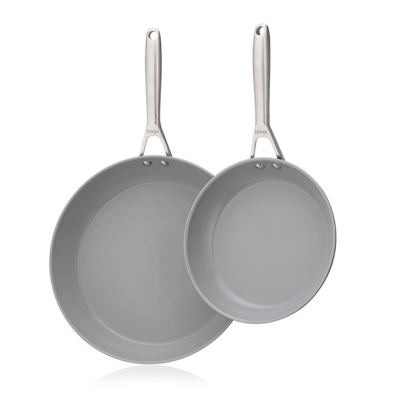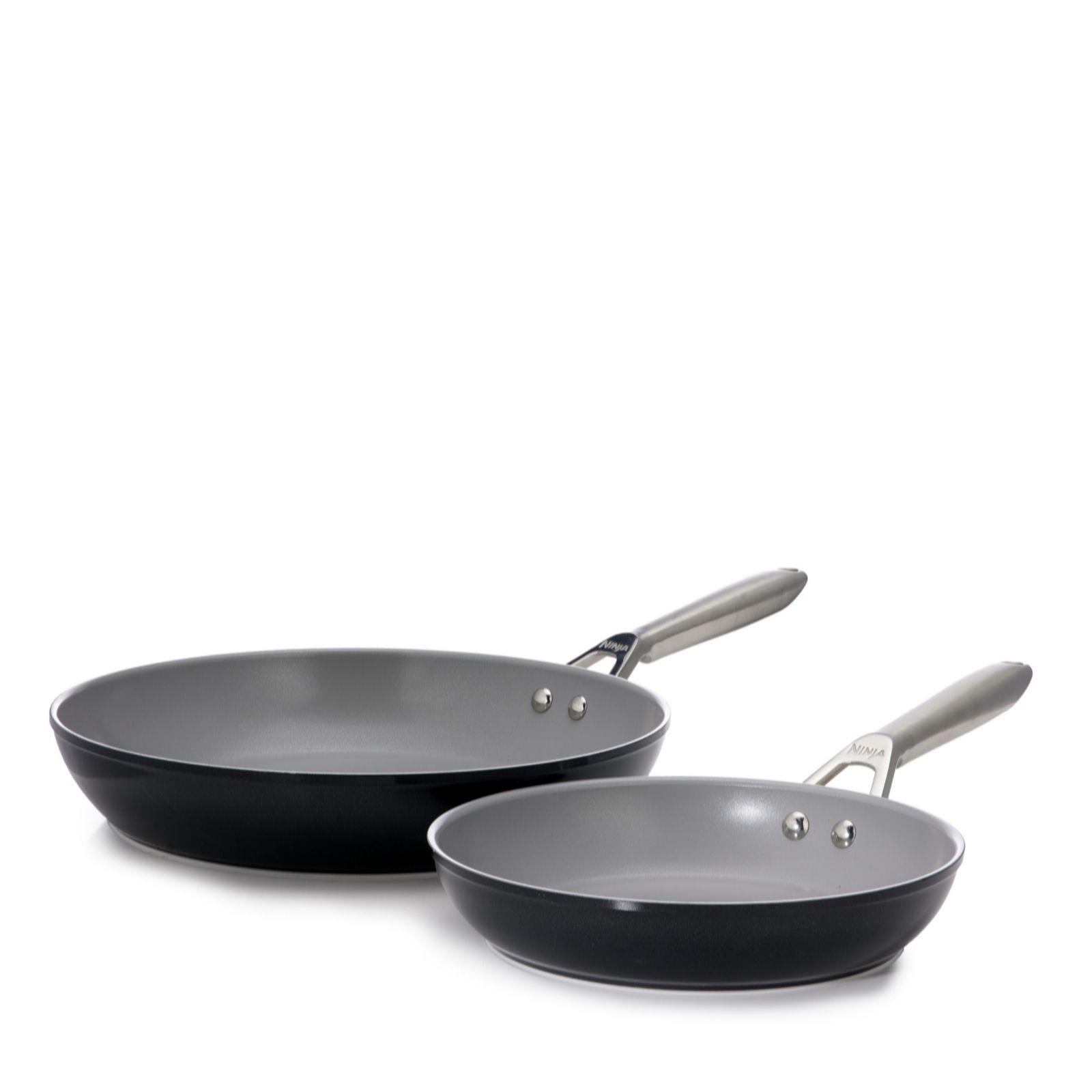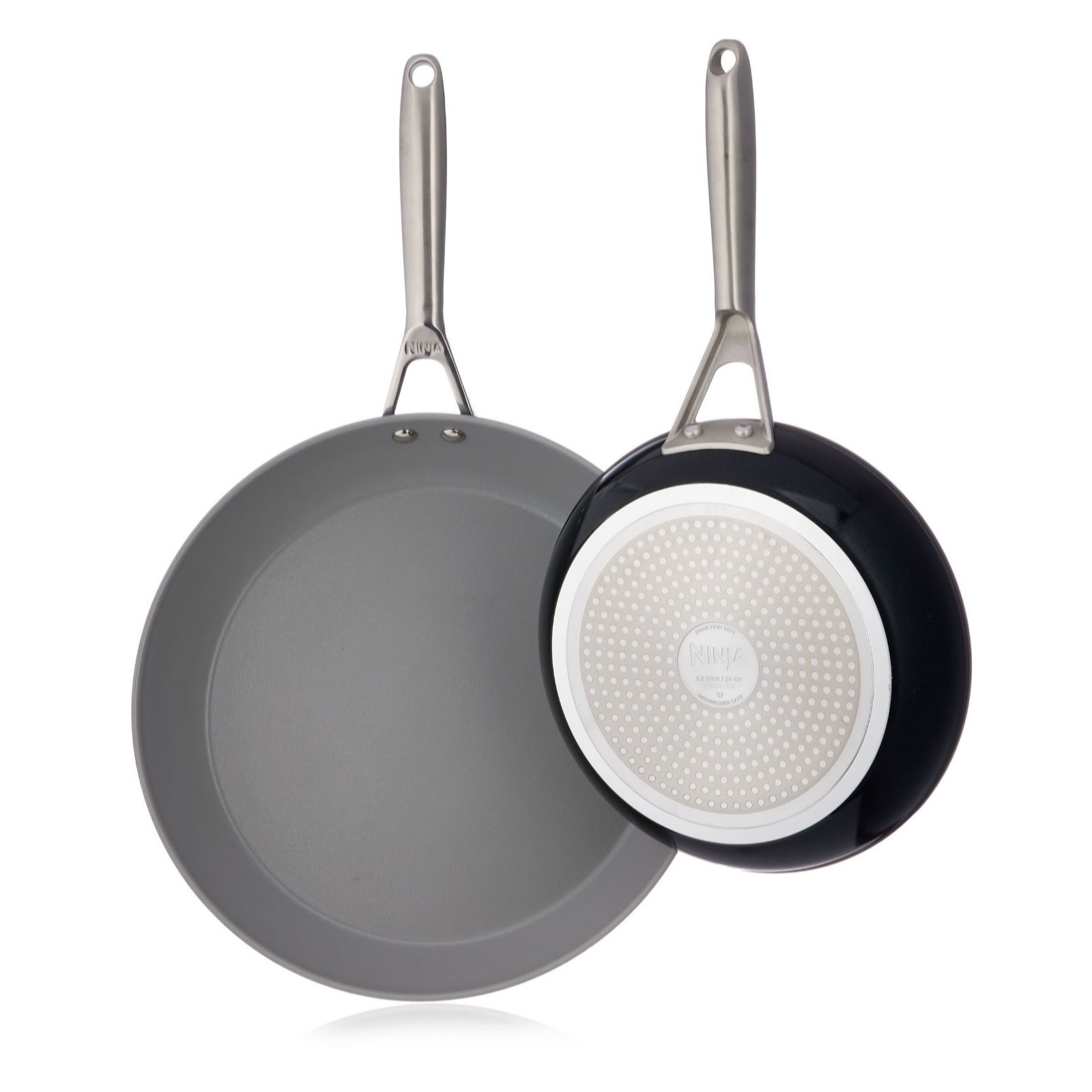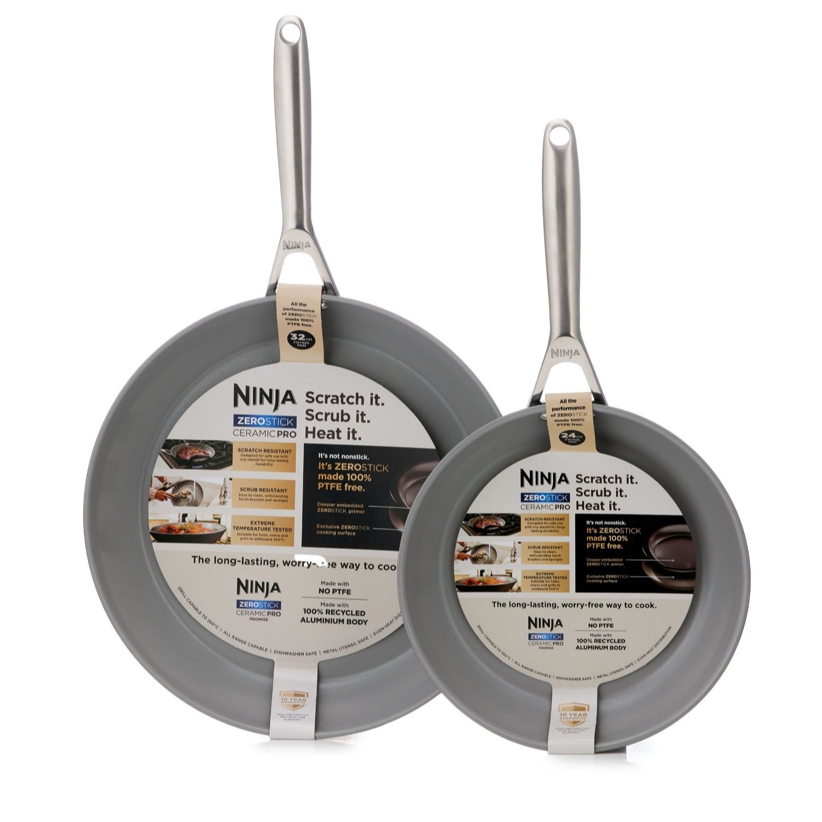 Discover effortless cooking with Ninja's Ceramic Pro Frying Pan Set, featuring two pans crafted from 100% recycled aluminium. The exclusive ZEROSTICK Ceramic Pro coating ensures effortless food release, allowing you to cook with minimal oil for healthier meals. Ideal for frying or sauteing, these pans are scratch-resistant and safe for metal utensils, offering exceptional durability. Compatible with all hob types, they ensure even heat distribution for perfect results every time, no matter what you're cooking up.
