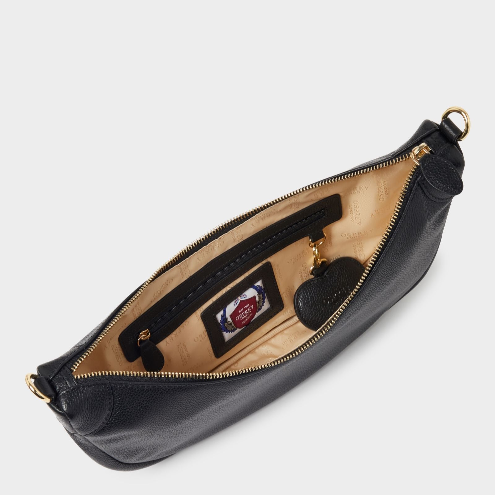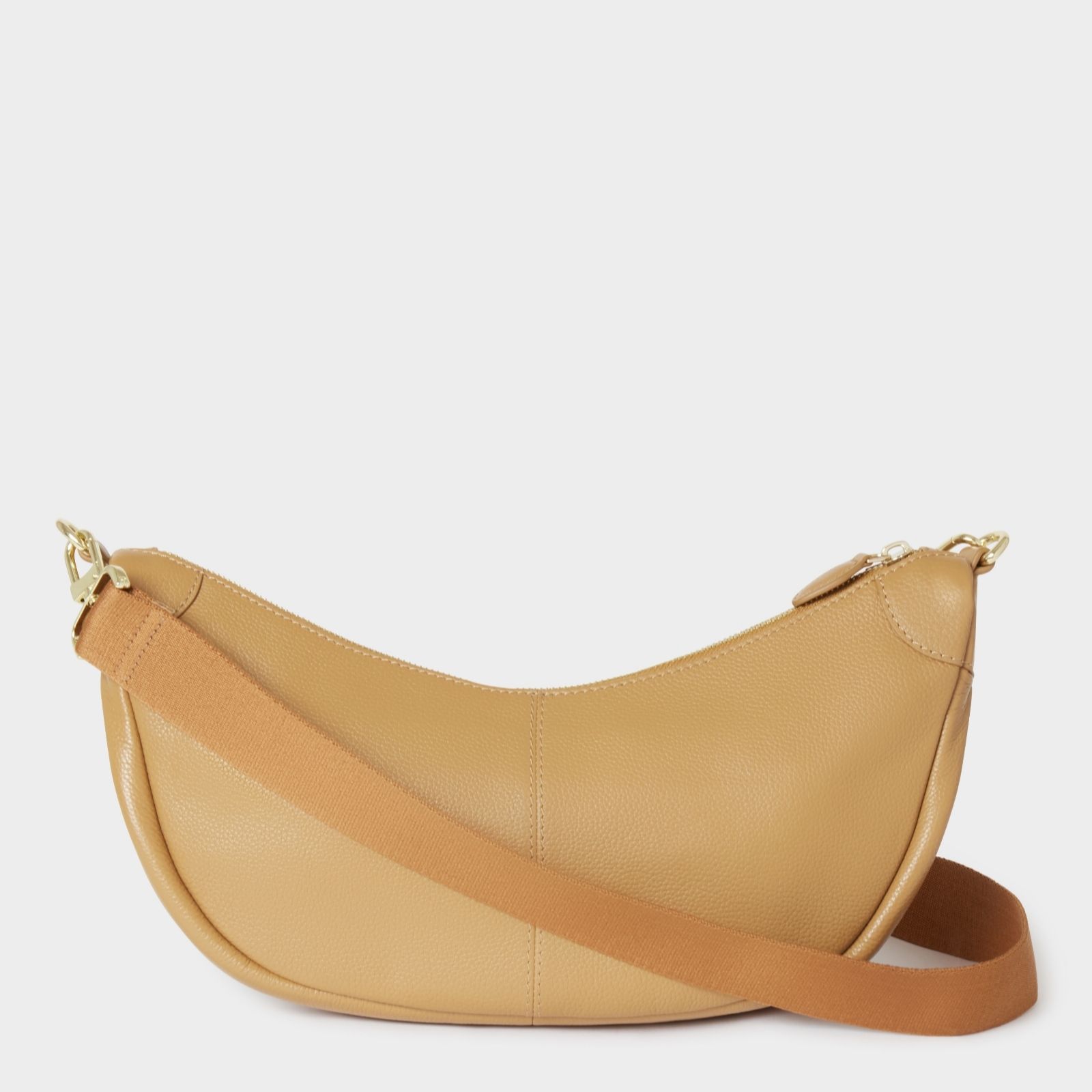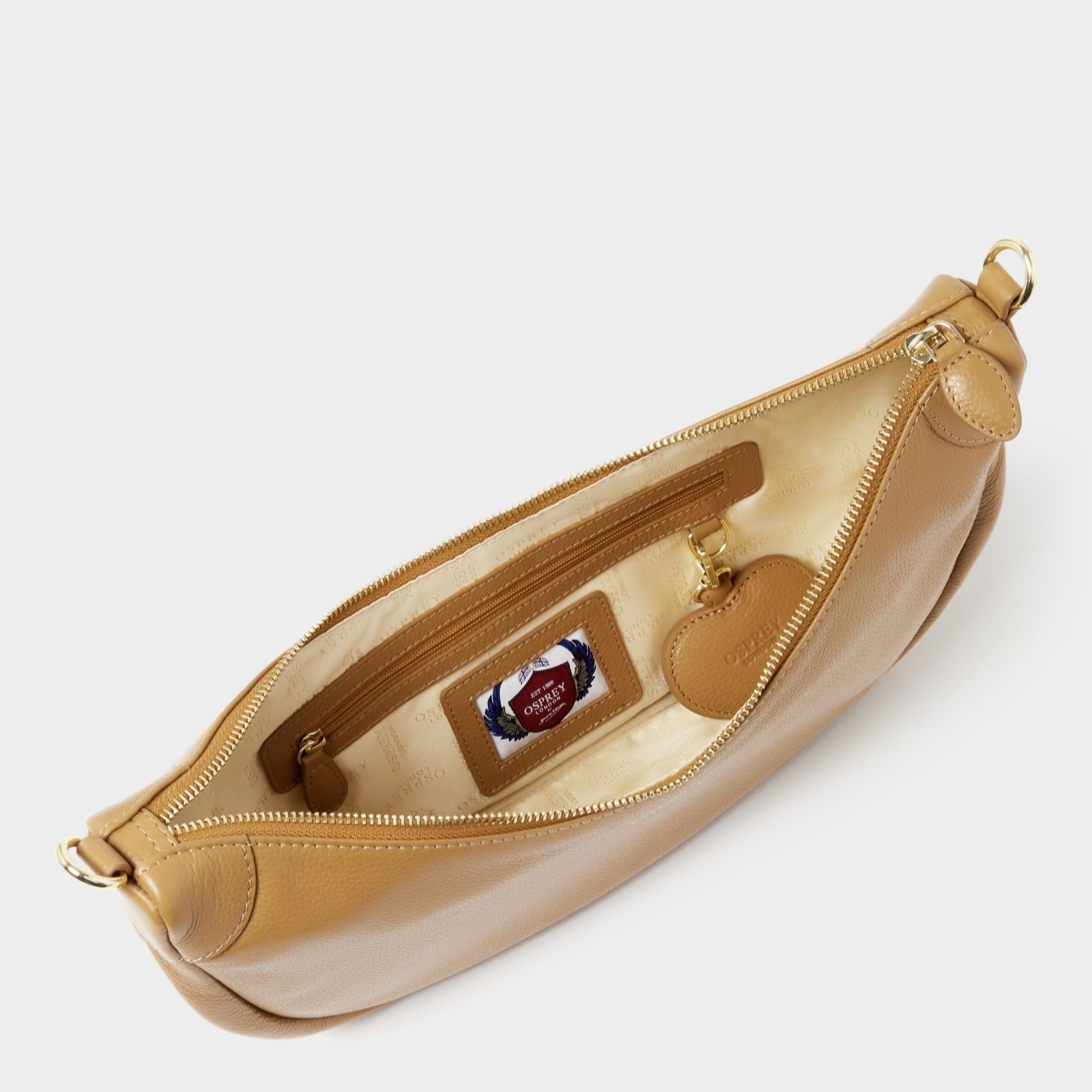 Elevate your look with the Osprey London Brazil sling bag, an exquisite blend of form and function. Perfectly proportioned to hold your essentials without unnecessary bulk, this bag is a chic companion for those on the go. Handcrafted from grainy hide leather, its crescent shape hugs your body comfortably, while secure zippers and easy-access pockets keep your belongings safe. The adjustable strap and gold metal hardware add a touch of elegance, making it suitable for both casual outings and more formal occasions.