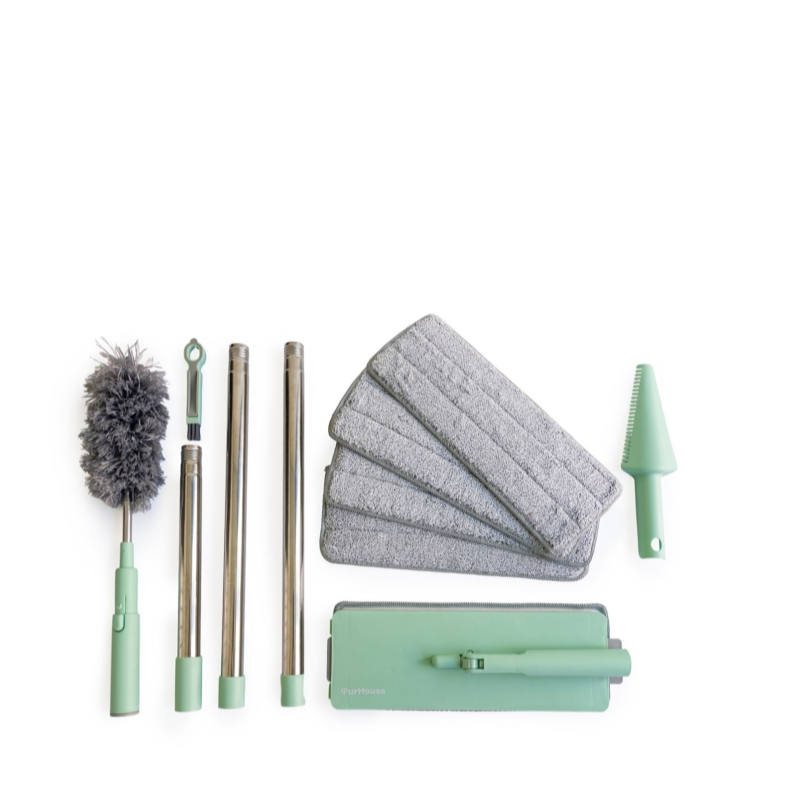 Introducing the OurHouse 5-in-1 Flat Mop, your all-in-one solution for cleaning without the clutter of multiple tools. This versatile mop covers everything you need, including a flat mop that delivers streak-free results, whether you're cleaning wet or dry, plus a foot-activated brush edge and squeegee, a telescopic duster for reaching tough spots, a crevice brush and scraper tool, and a microfibre cleaning implement to keep your mop head pristine. It's the multitasking solution that'll revolutionise your cleaning arsenal.