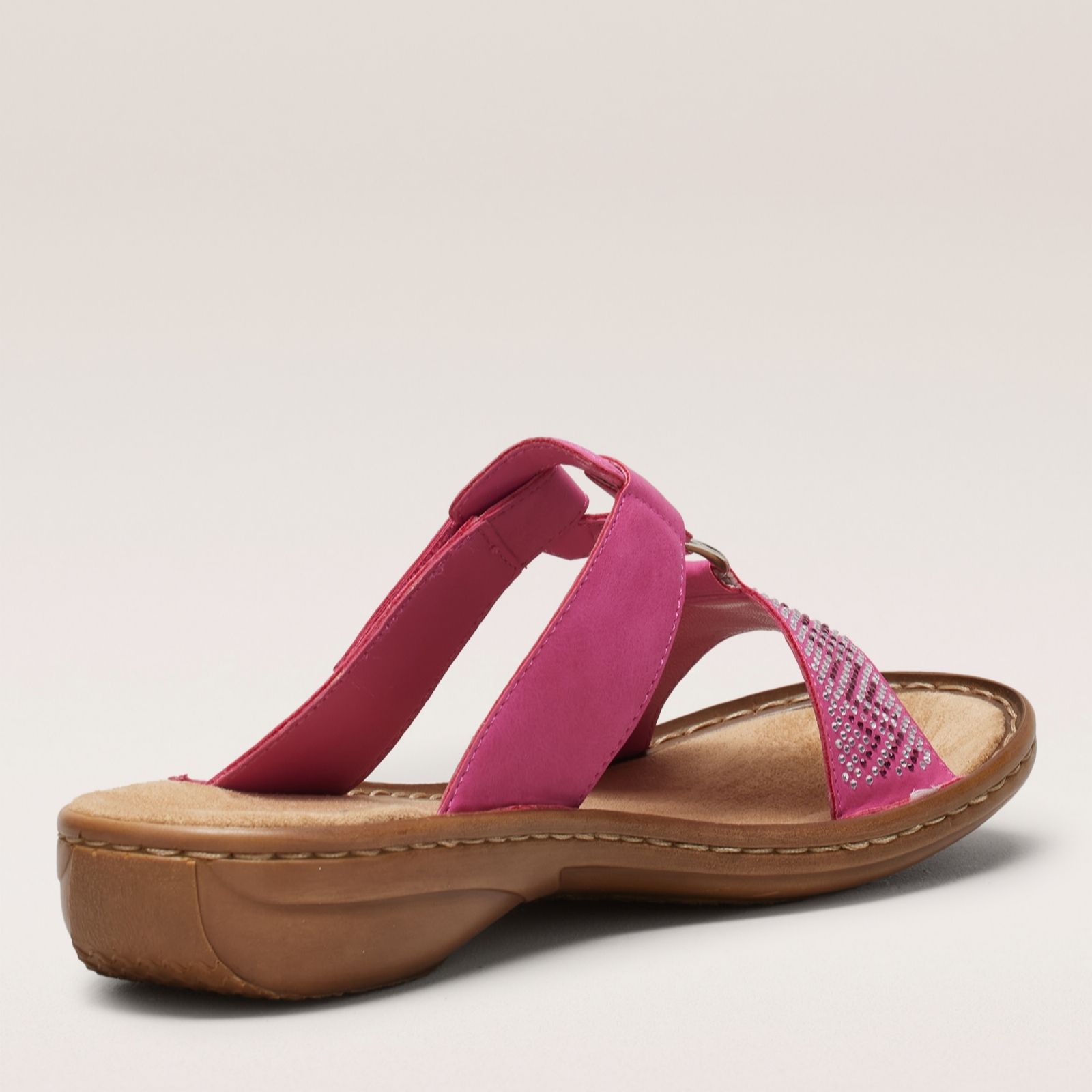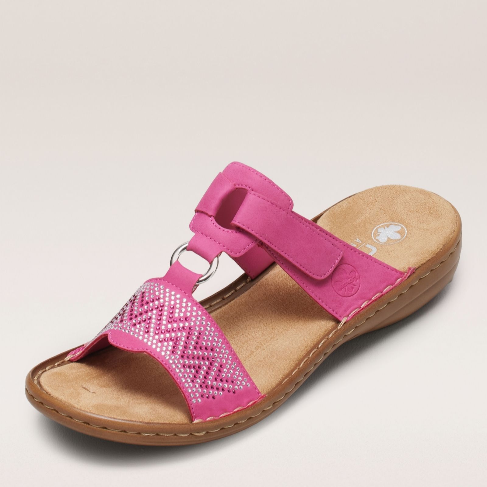 Step into effortless elegance with these beaded circle detail sandals from Rieker. These lightweight slide sandals feature a hook and loop adjustment for a customised fit, while the intricate applique detail on the front panel adds a touch of sophistication. Perfect for both casual outings and dressier occasions, their cushioned footbed ensures all-day comfort. Pair them with a flowing summer dress or your favourite jeans for a chic, relaxed look.