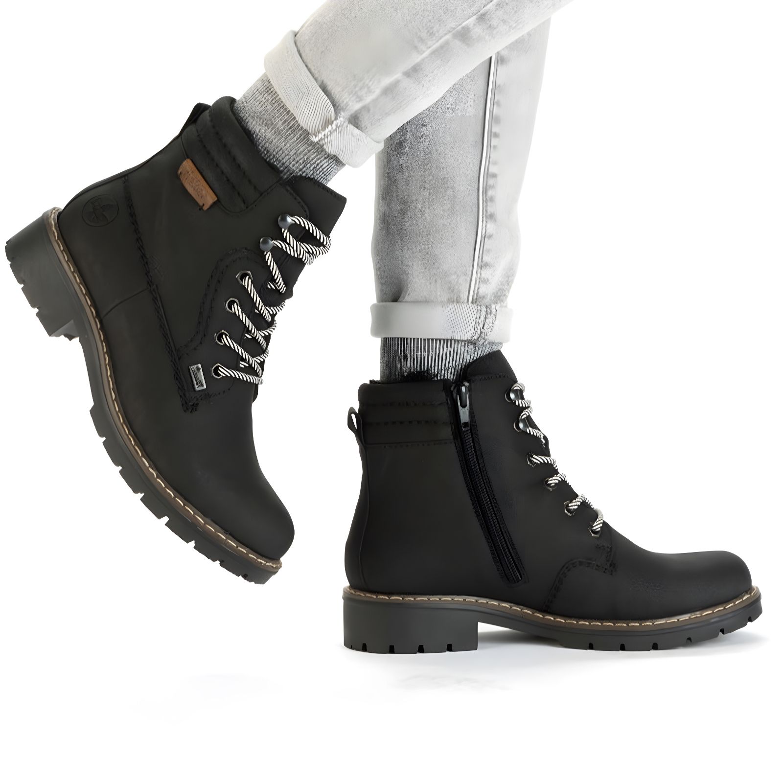 - featuring RiekerTex technology that includes a water-resistant membrane, these boots are designed to offer protection from moisture, cold and wind. Perfect for those chilly, wet days, they'll help ensure your feet stay toasty and comfortable so you can venture out in winter confidently.