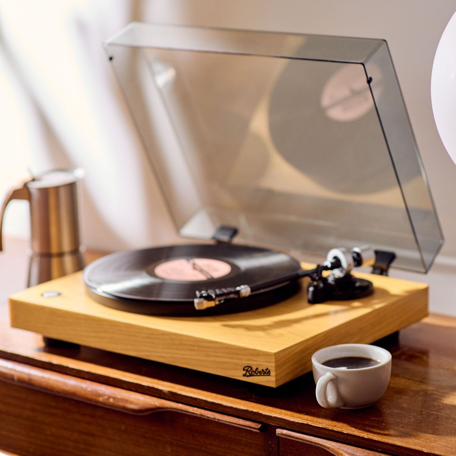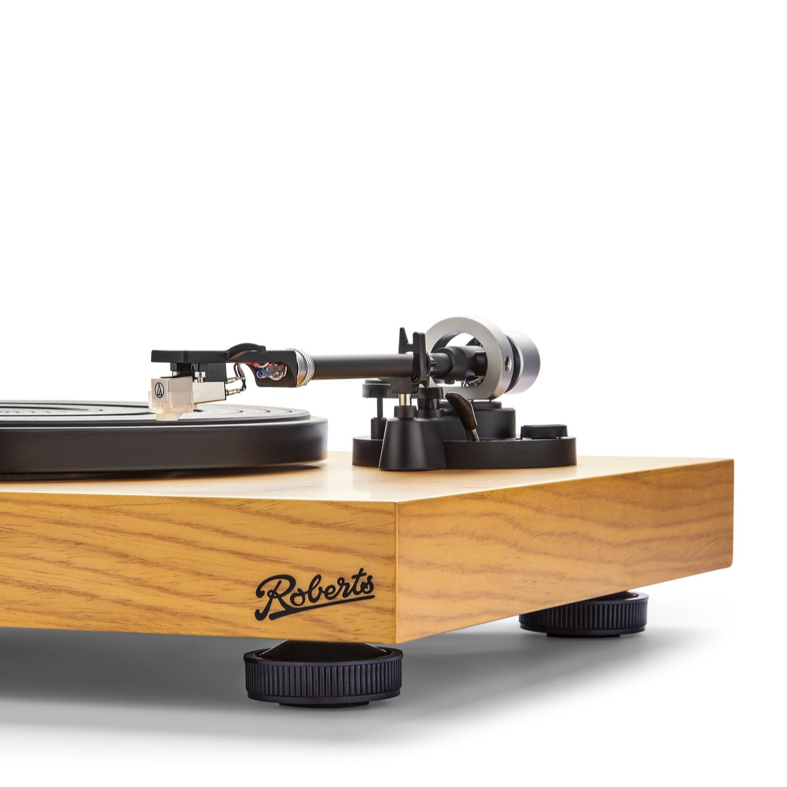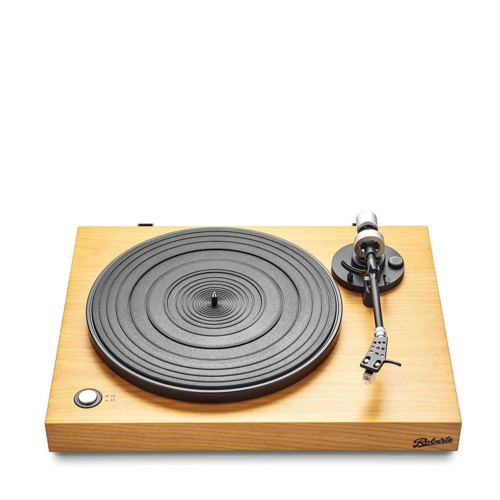Rediscover the magic of vinyl with the Roberts Stylus Vinyl Turntable, a true blend of vintage charm and modern functionality. Wrapped in a stunning light oak real wood veneer, this turntable connects directly to your sound system, offering a Hi-Fi quality audio experience that breathes new life into your cherished vinyl collection. Whether you're a seasoned audiophile or a nostalgic music lover, this turntable is perfect for leisurely afternoons, intimate gatherings or simply elevating your home entertainment setup.