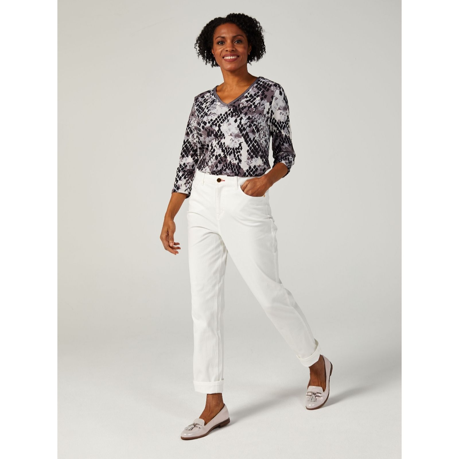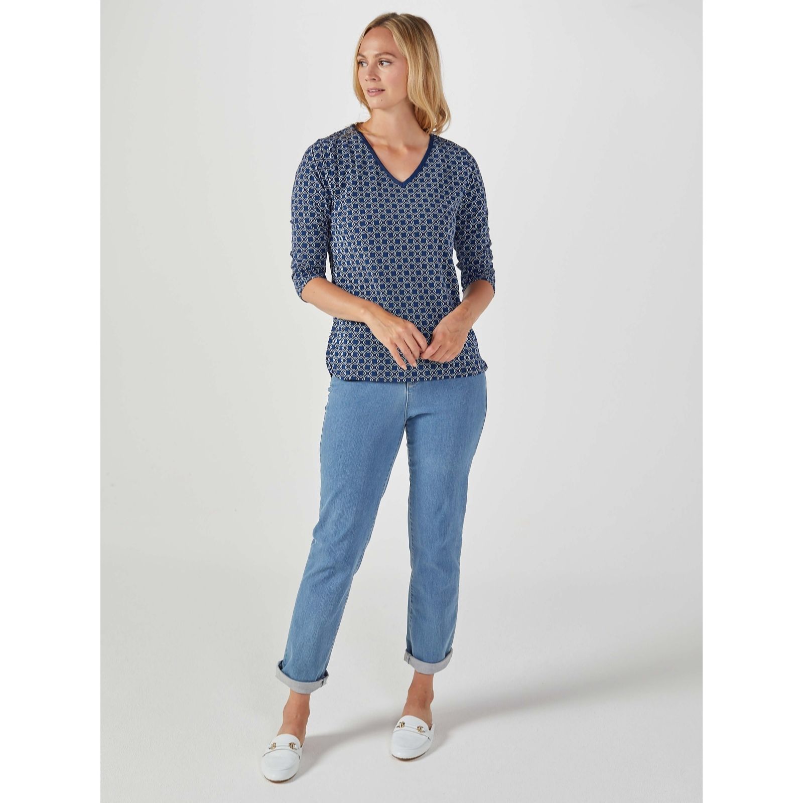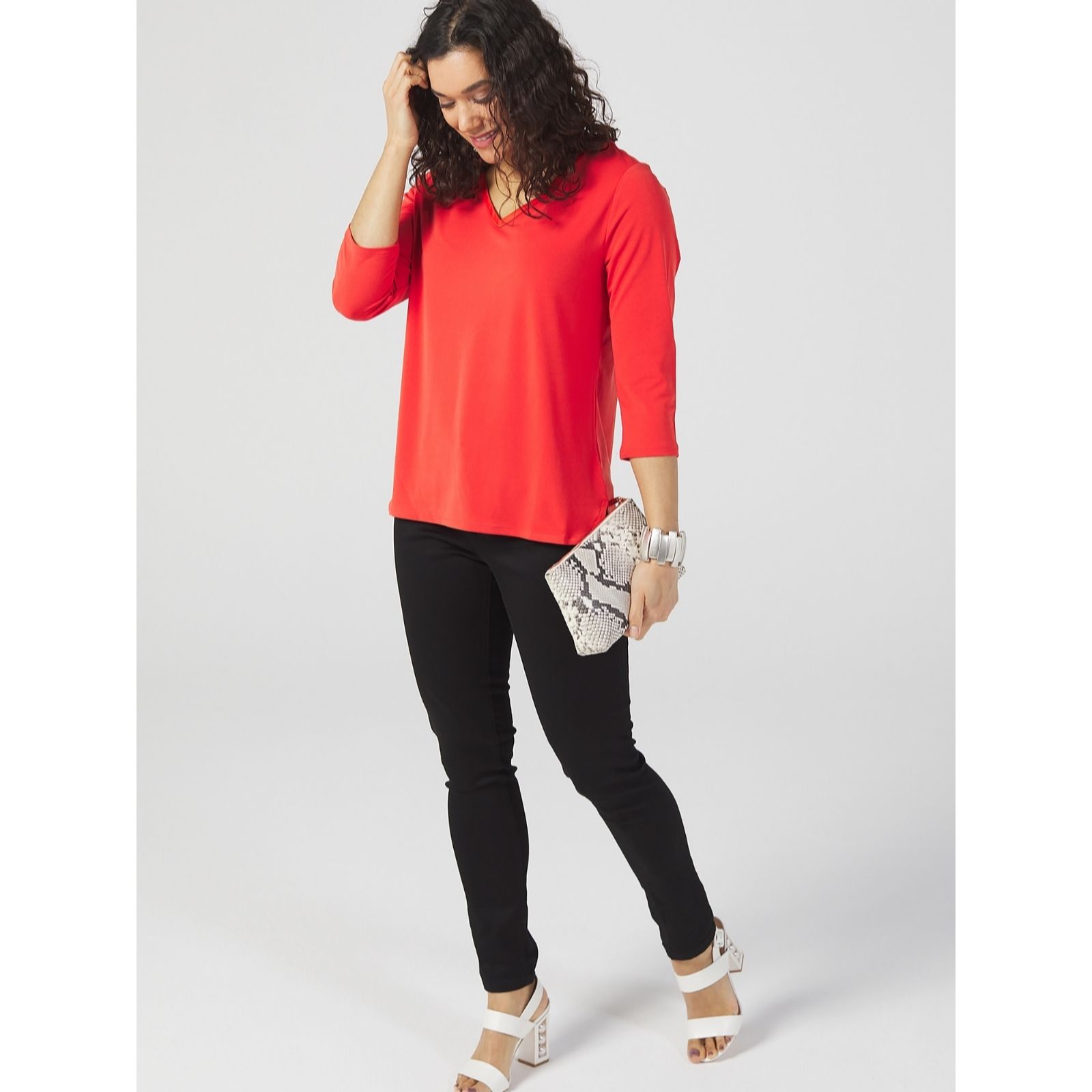 This top from Ruth Langsford features a V-neckline with a cut-out detail at the back and satin piping, a curved hemline with side splits and 3/4 length sleeves. A sleek twist on a classic design, this versatile wardrobe staple will elevate your everyday outfits in an instant.