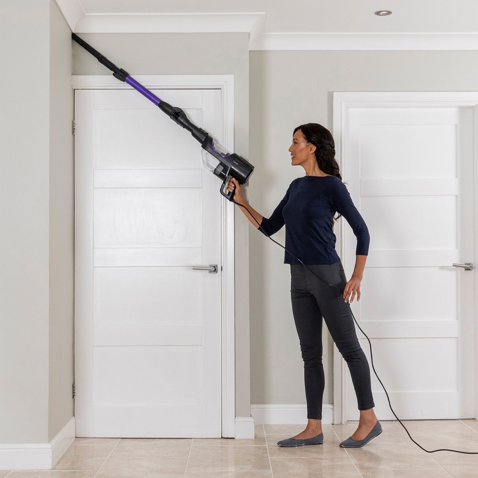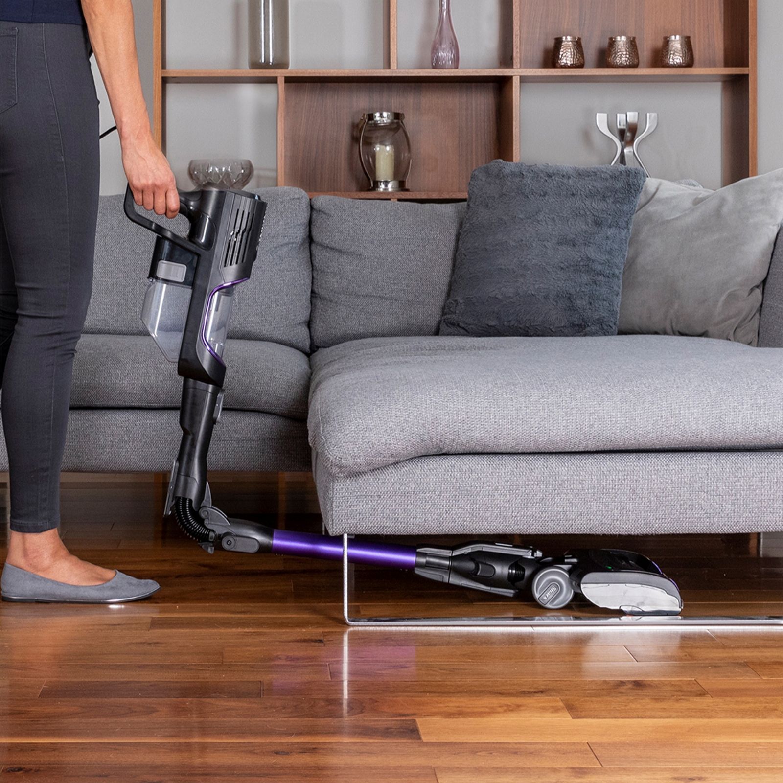 - never miss those hard to reach places again with help from the Flexology wand, which bends to fit under low furniture such as coffee tables, sofas and beds. Even better, when you’ve finished cleaning, it folds down at the touch of a button for space-saving, free-standing storage.