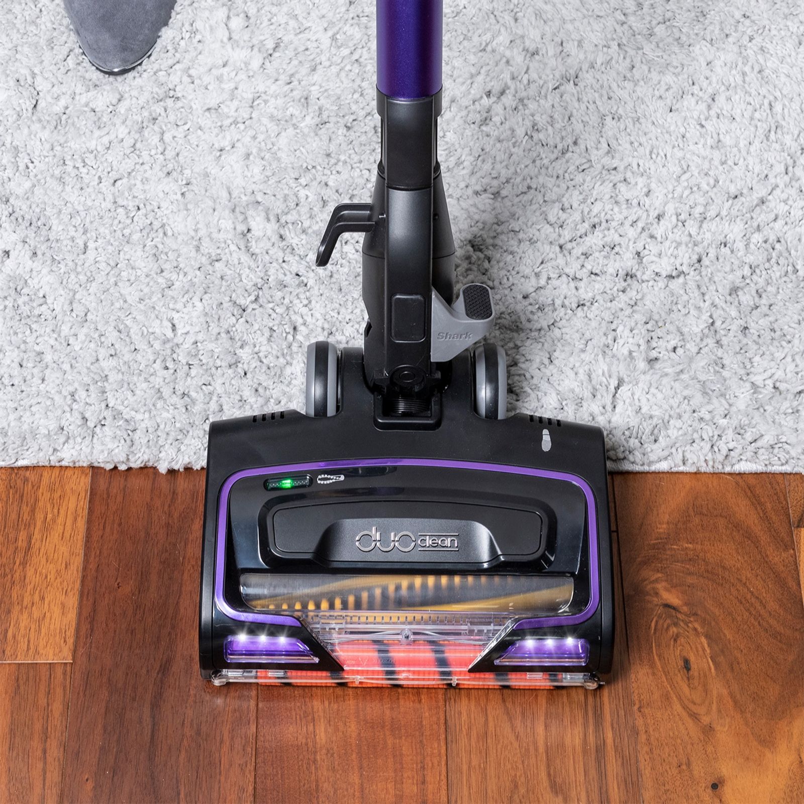 - move easily between carpets and hard floors with DuoClean Technology, which combines two motorised brush rolls in one floorhead. The bristle brush-roll works to remove embedded dirt from carpets, while a soft front brush-roll makes continuous contact with the floor, drawing in dust, small and large debris from hard floors. All you need to do is switch between floor modes!