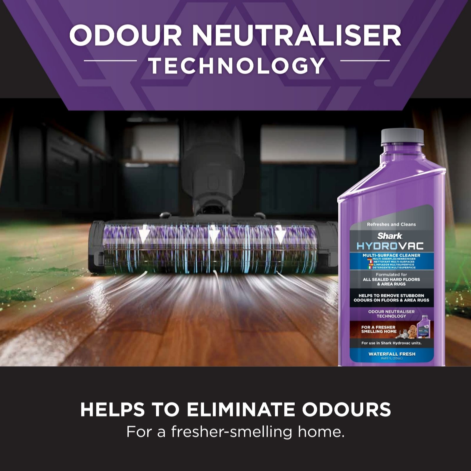 - Includes two bottles of Shark's Multi-floor cleaning solution with odour neutraliser technology