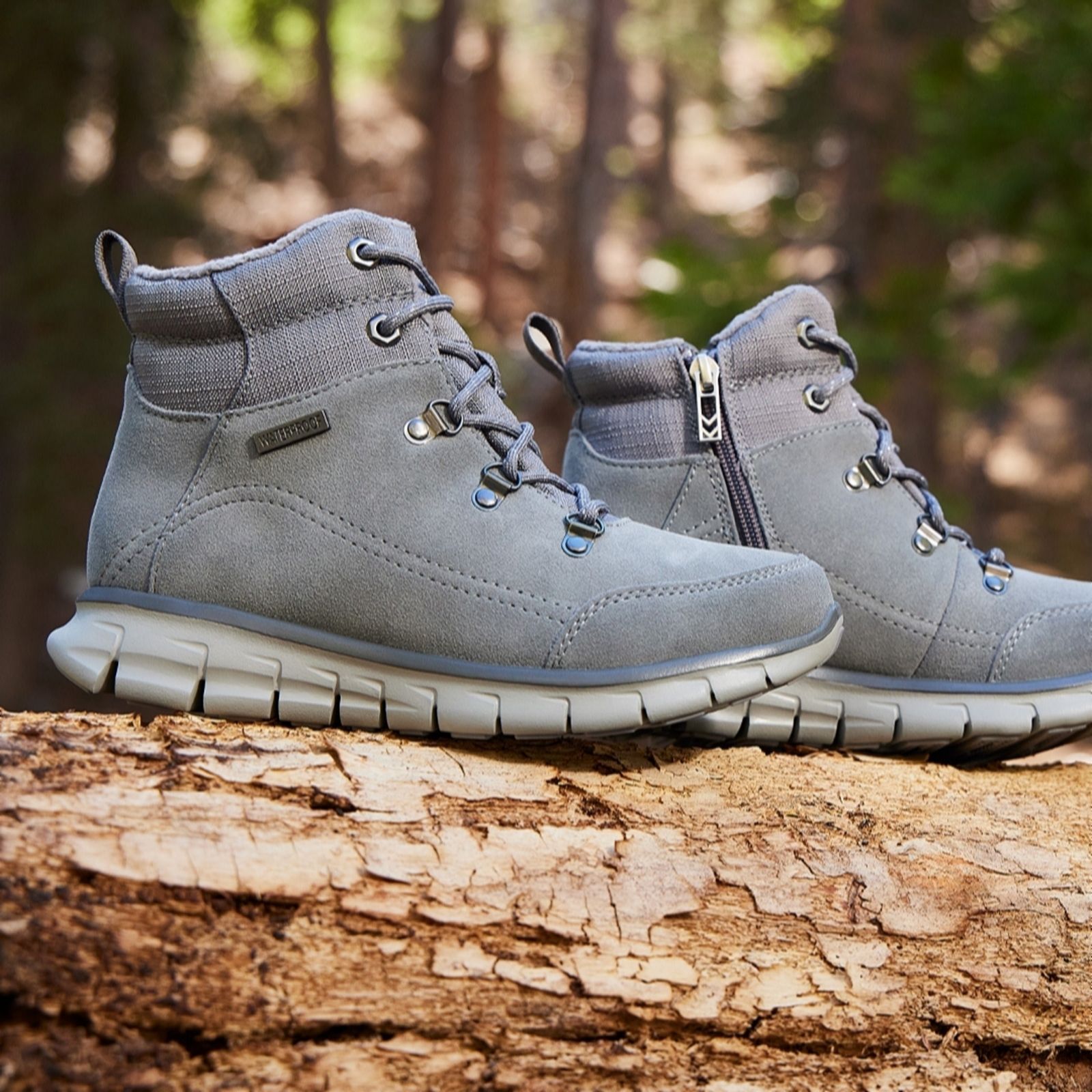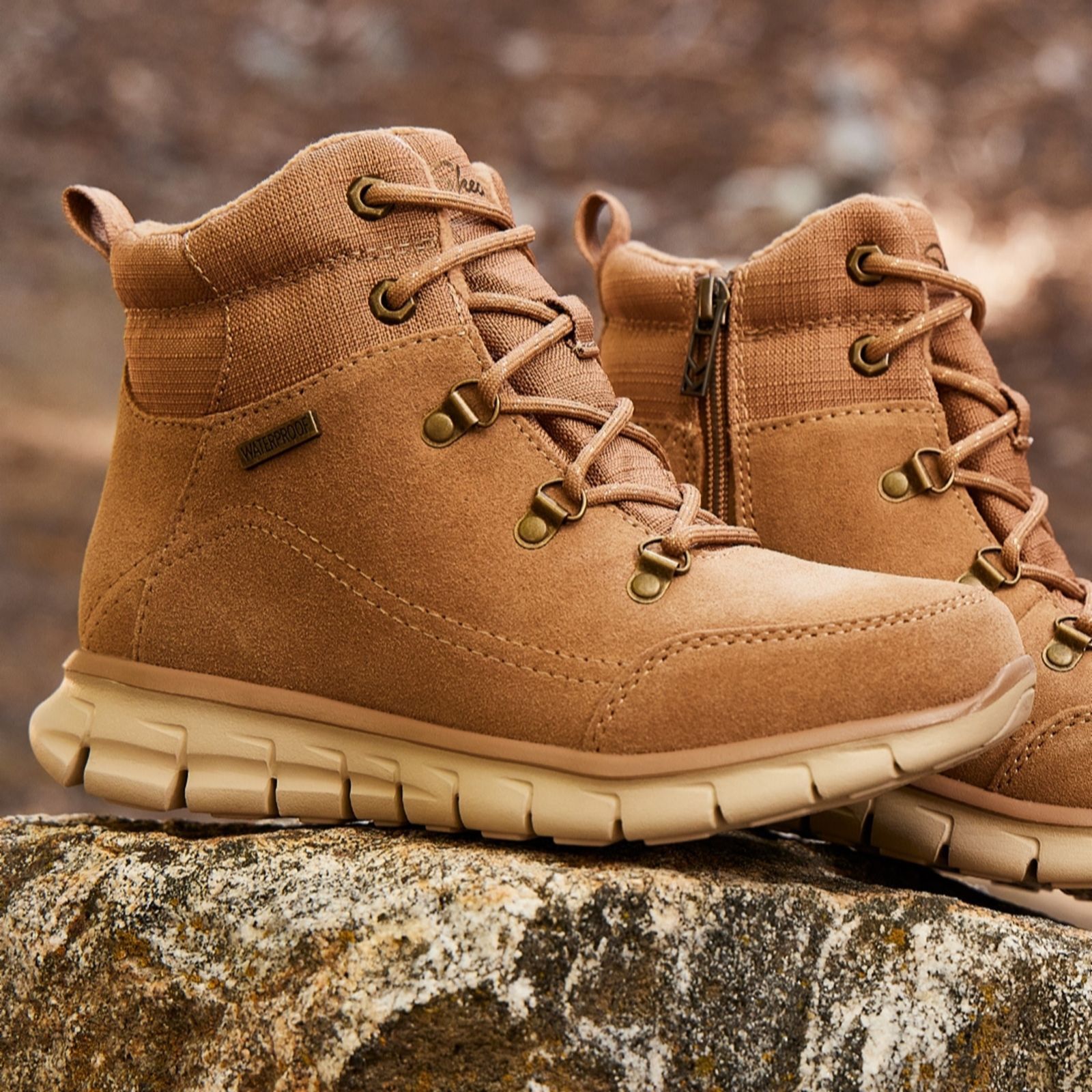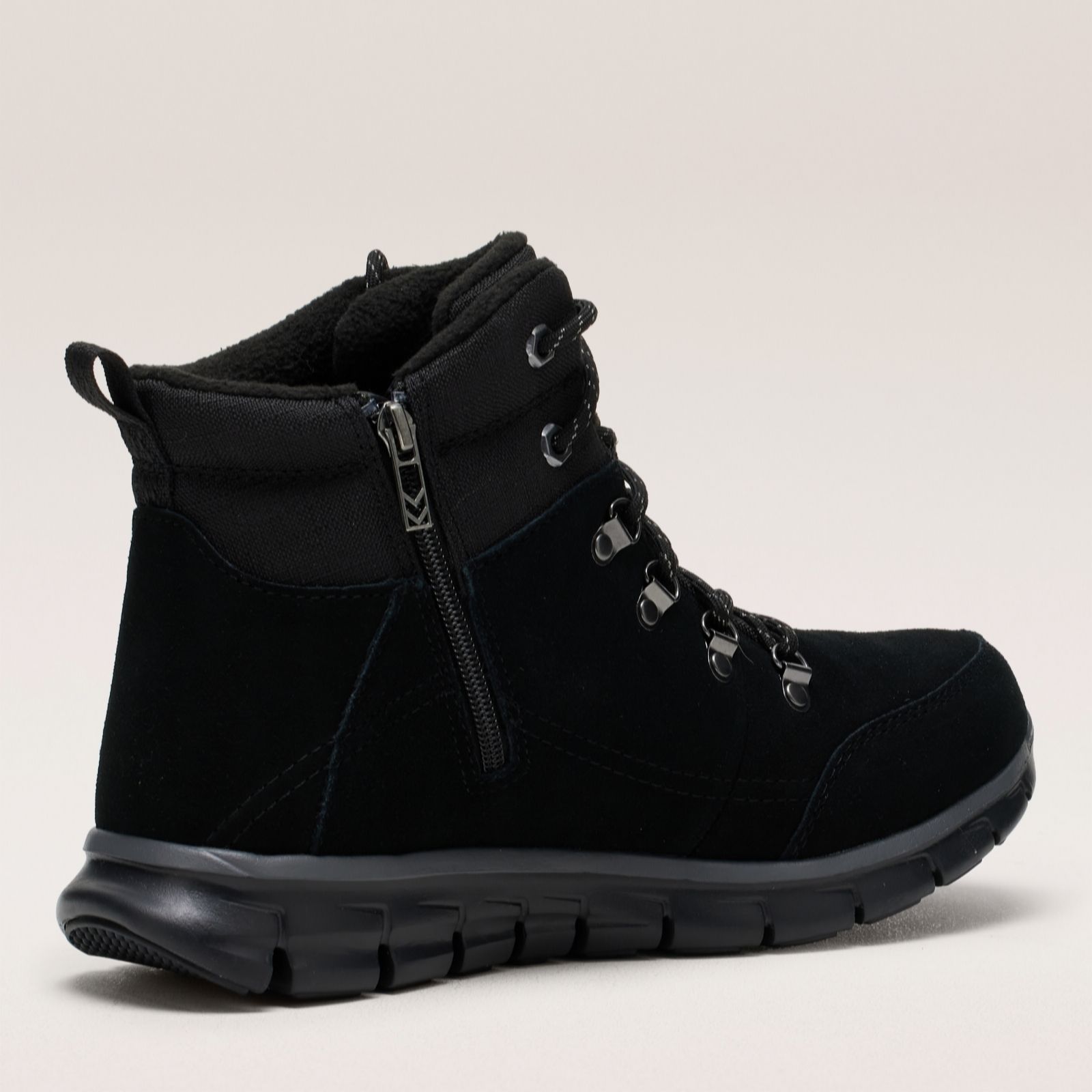 - Lace-up hiker boot design with an easy on/off internal zip fastening