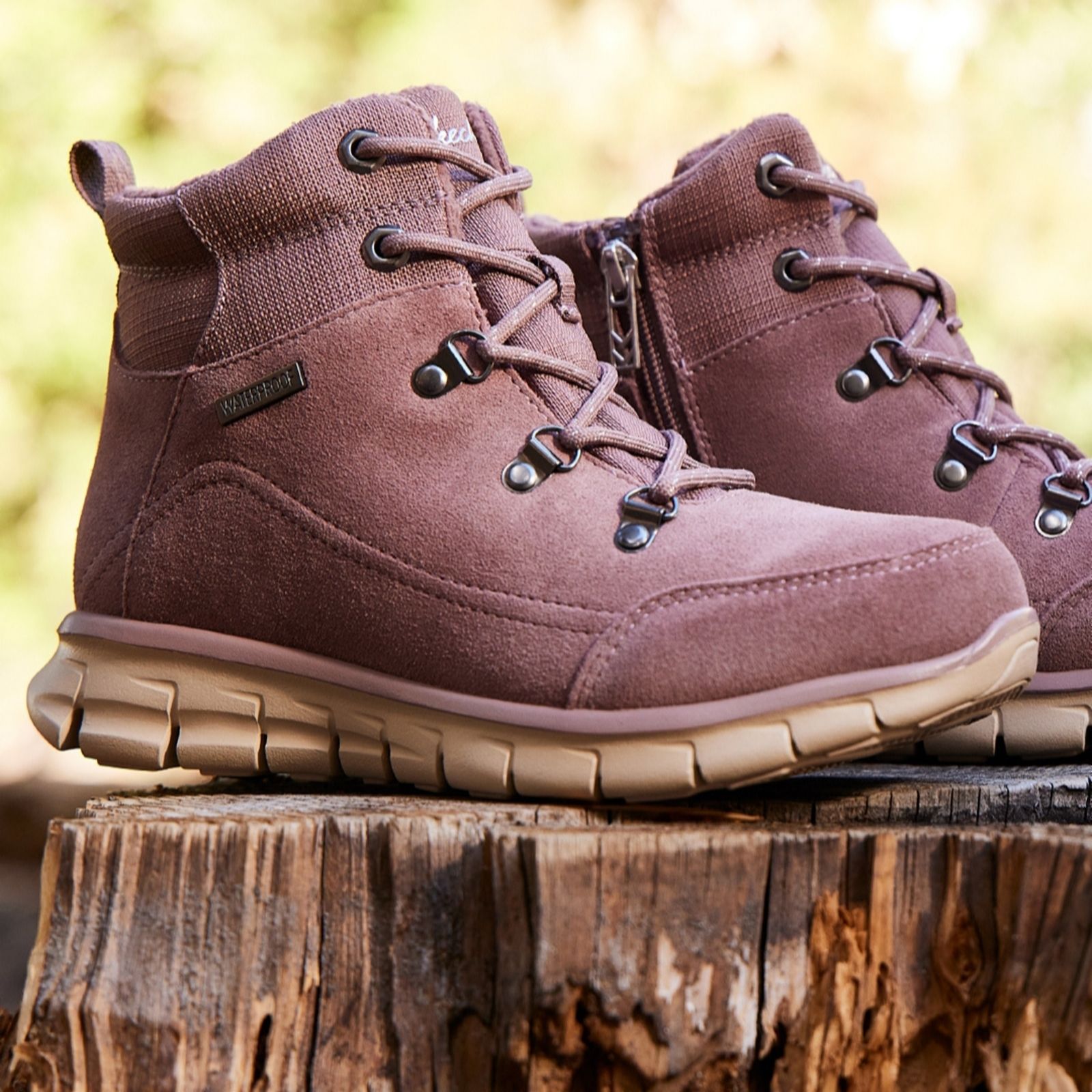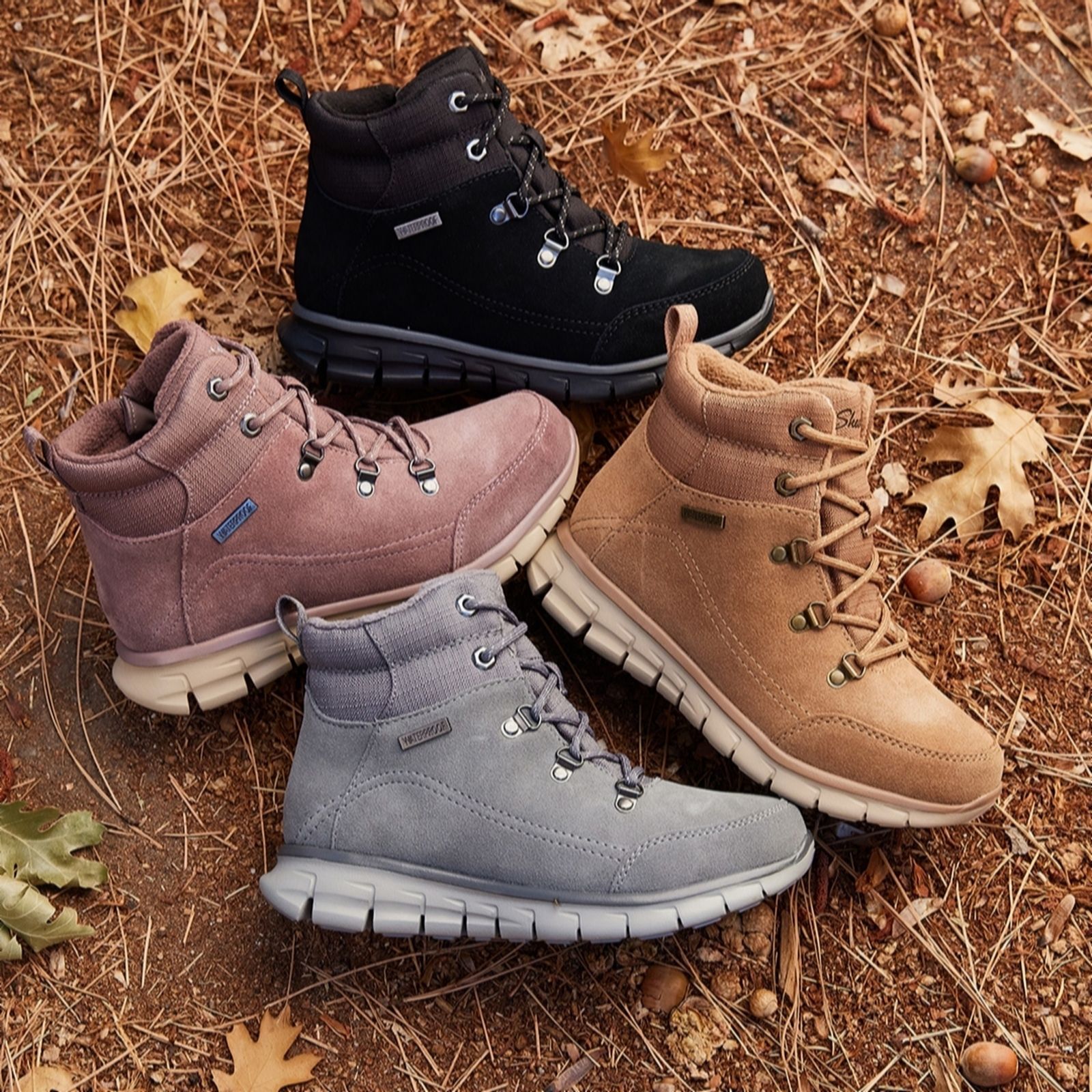- find the right boot to match your autumn/winter style with four colours up for grabs. Will you opt for a versatile Black, a classic Chestnut, an elegant Grey or Mauve for a touch of autumnal warmth? You won't find the Chestnut, Grey or Mauve versions of Skechers' Synergy Anti-Slip Waterproof boots anywhere other than QVC right now so don't miss out.