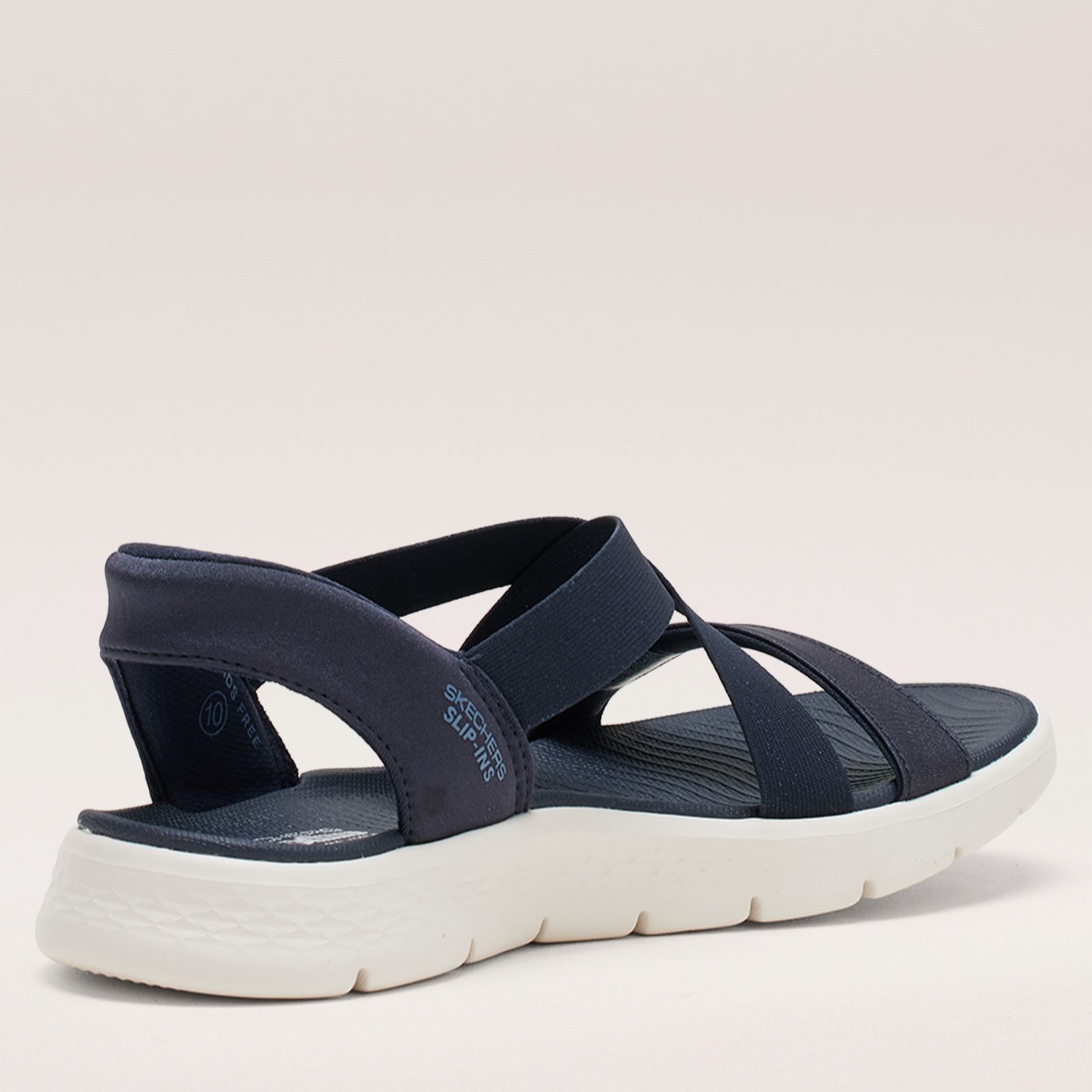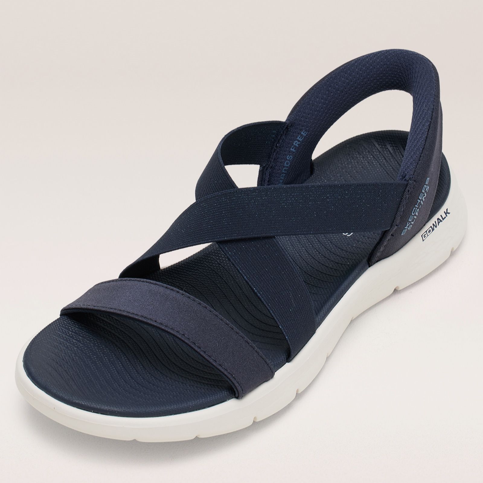 Step out in shimmer and comfort with the Skechers Go Walk Flex Glimmer Up Slip-Ins Sandal, where sparkling cross bands and a supportive quarter strap bring a touch of glamour to your everyday strolls. Perfect for relaxed weekends, sunny holidays, or casual lunches, these sandals blend effortless style with easy slip-in wear. Pair them with cropped trousers or your favourite summer dress for a chic, laid-back look that shines.