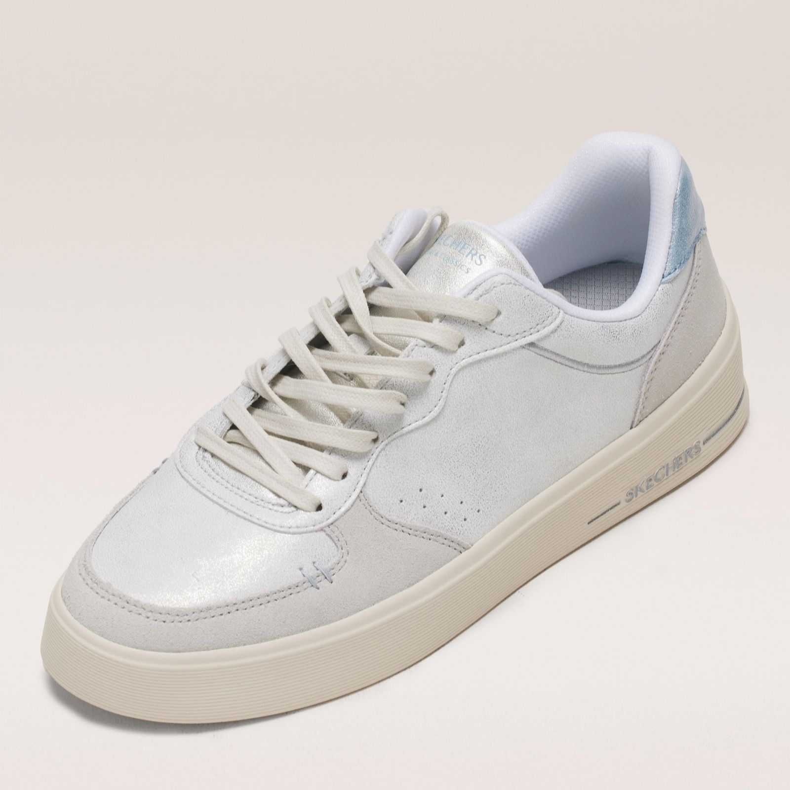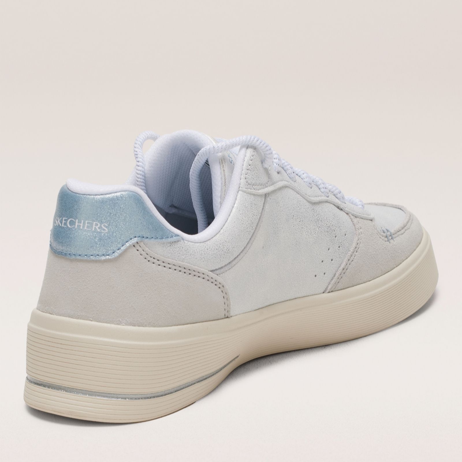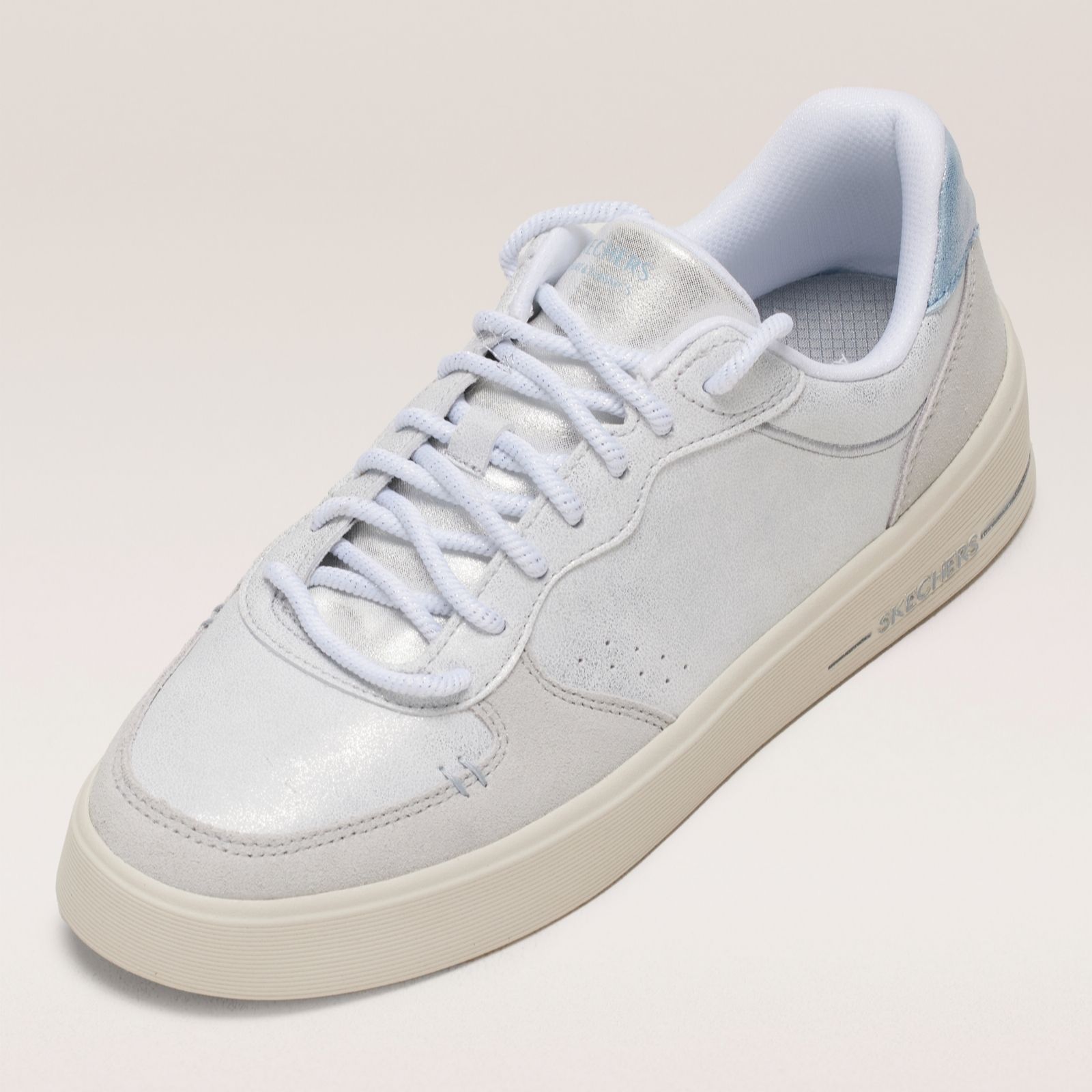 Step into effortless style with Skechers Hiland Shimmer lace-up trainers, adding sparkle to your everyday look. Featuring a hidden wedge and air-cooled memory foam insoles, they ensure comfort with every step. Made from synthetic and leather materials, they're perfect for casual outings, weekend getaways, or a relaxed office day. Pair them with jeans or a casual dress for a chic, laid-back vibe.