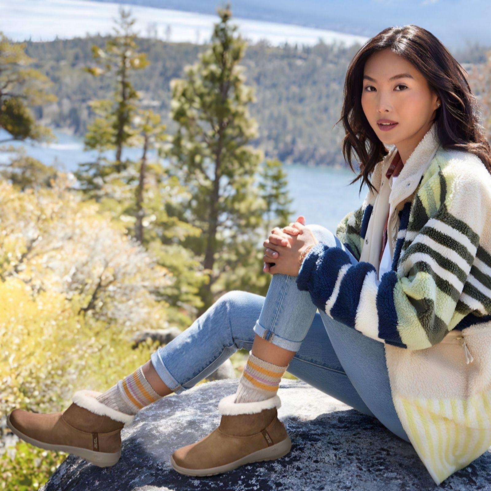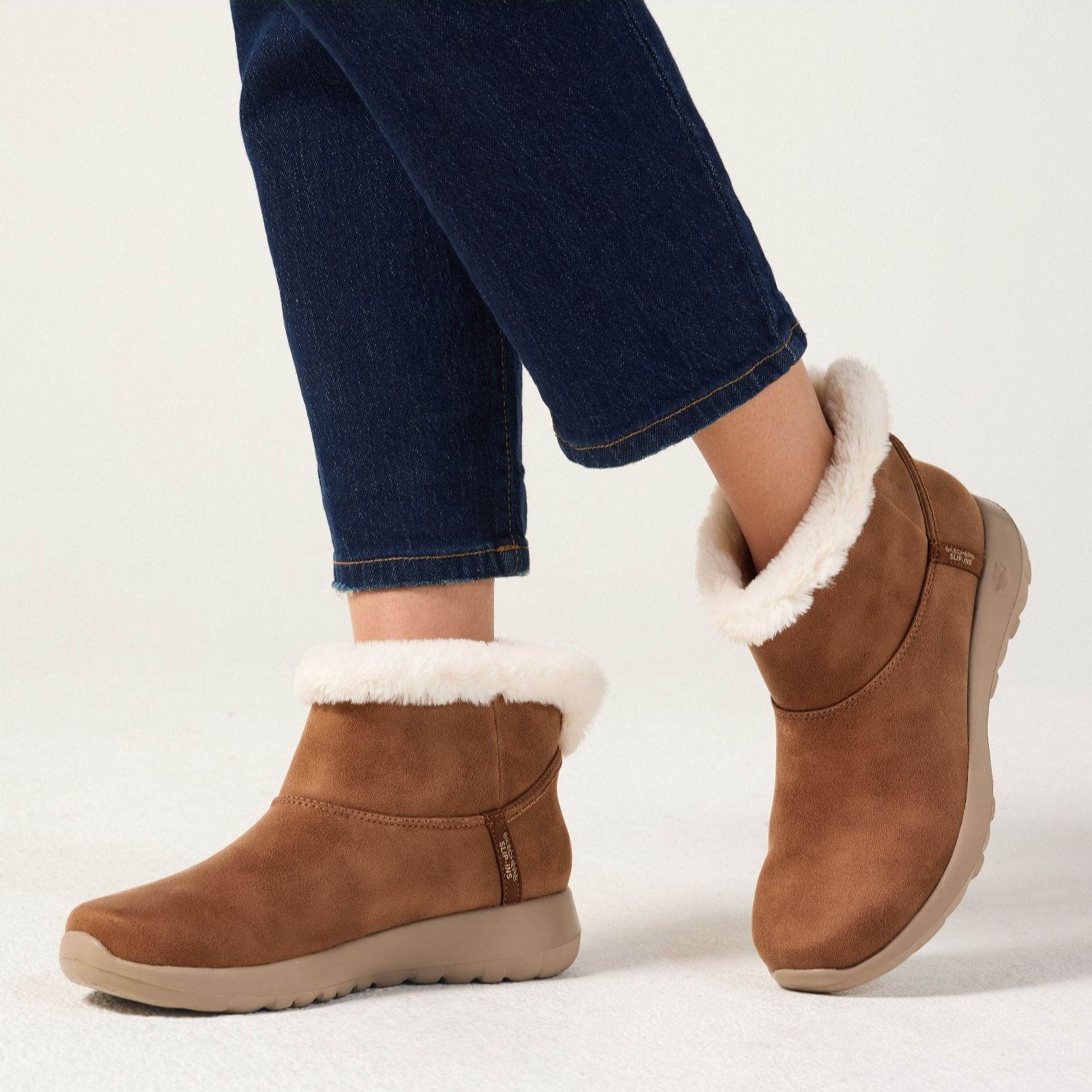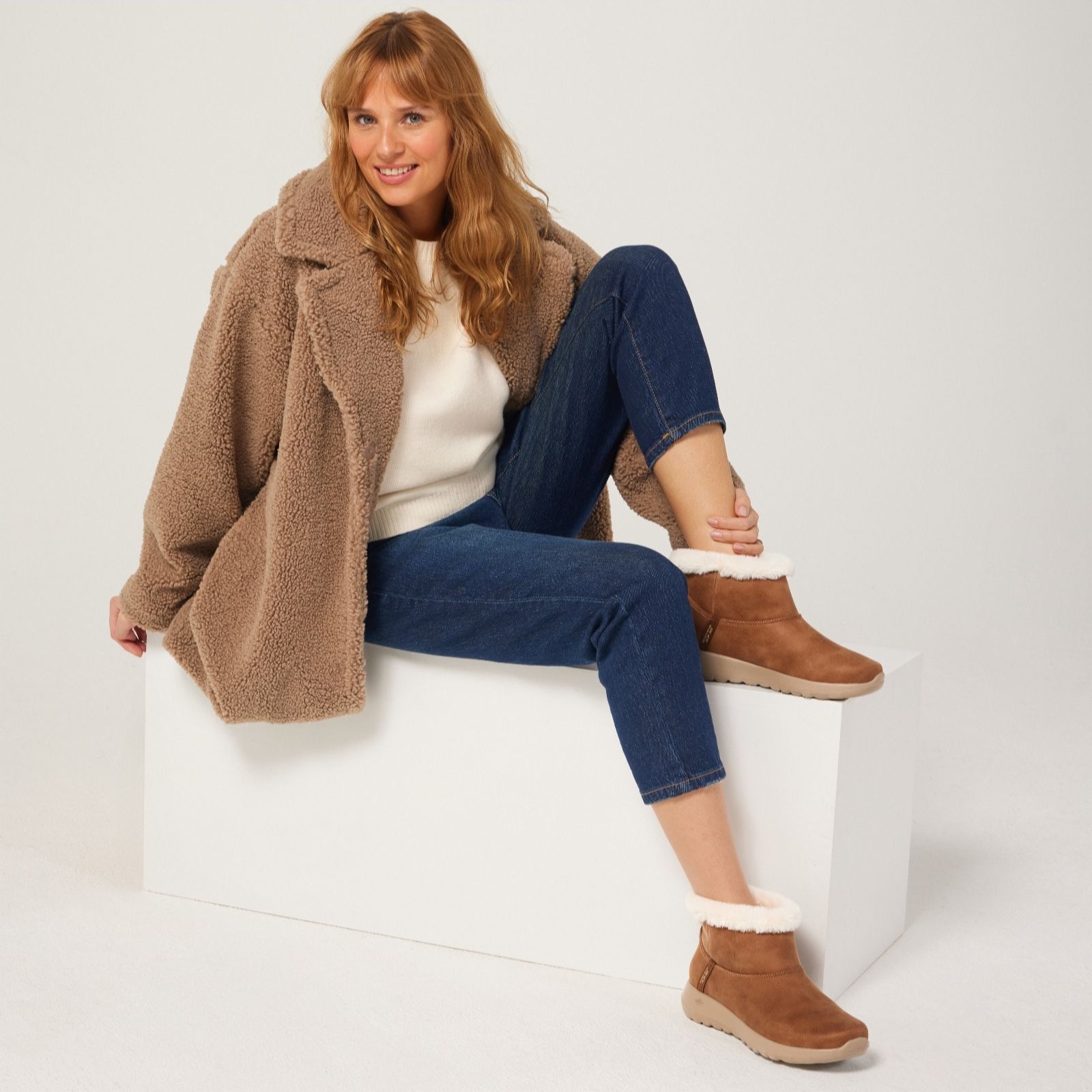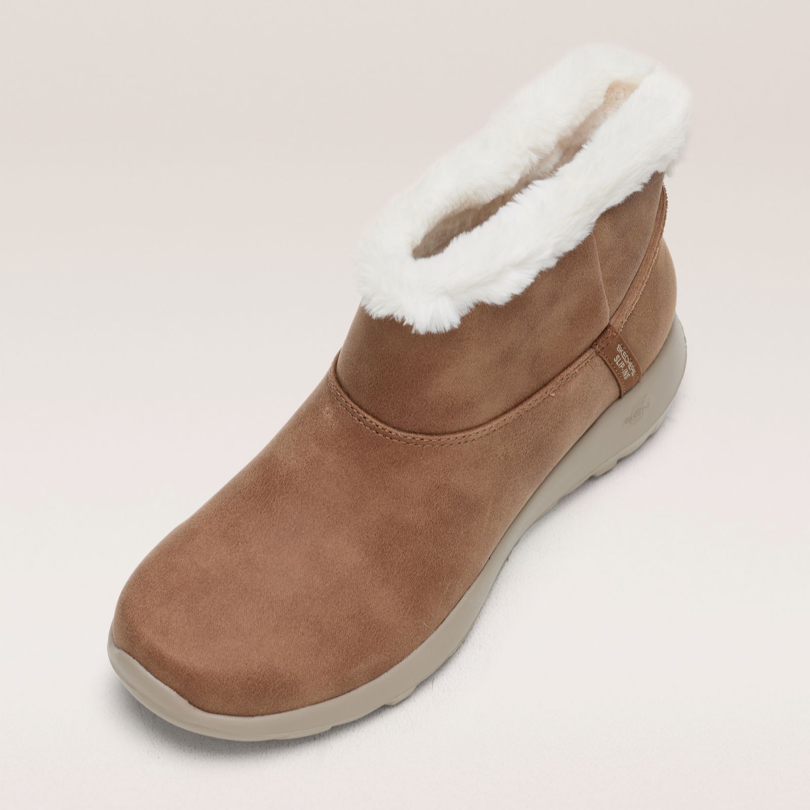 Slip in, step out and face the cold season head-on in these comfortable On-The-Go Cozy Dream Slip-Ins boots from Skechers. The clever Slip-Ins technology allows you to easily put on your boots hands-free, with no bending required. Complete with all of Skechers' fantastic memory foam insole technology, these cosy casual booties also boast a water and stain-resistant 3M Scotchgard treatment. Whether you're staying warm about the house or making a run to the shops, these boots are sure to become your new winter besties.