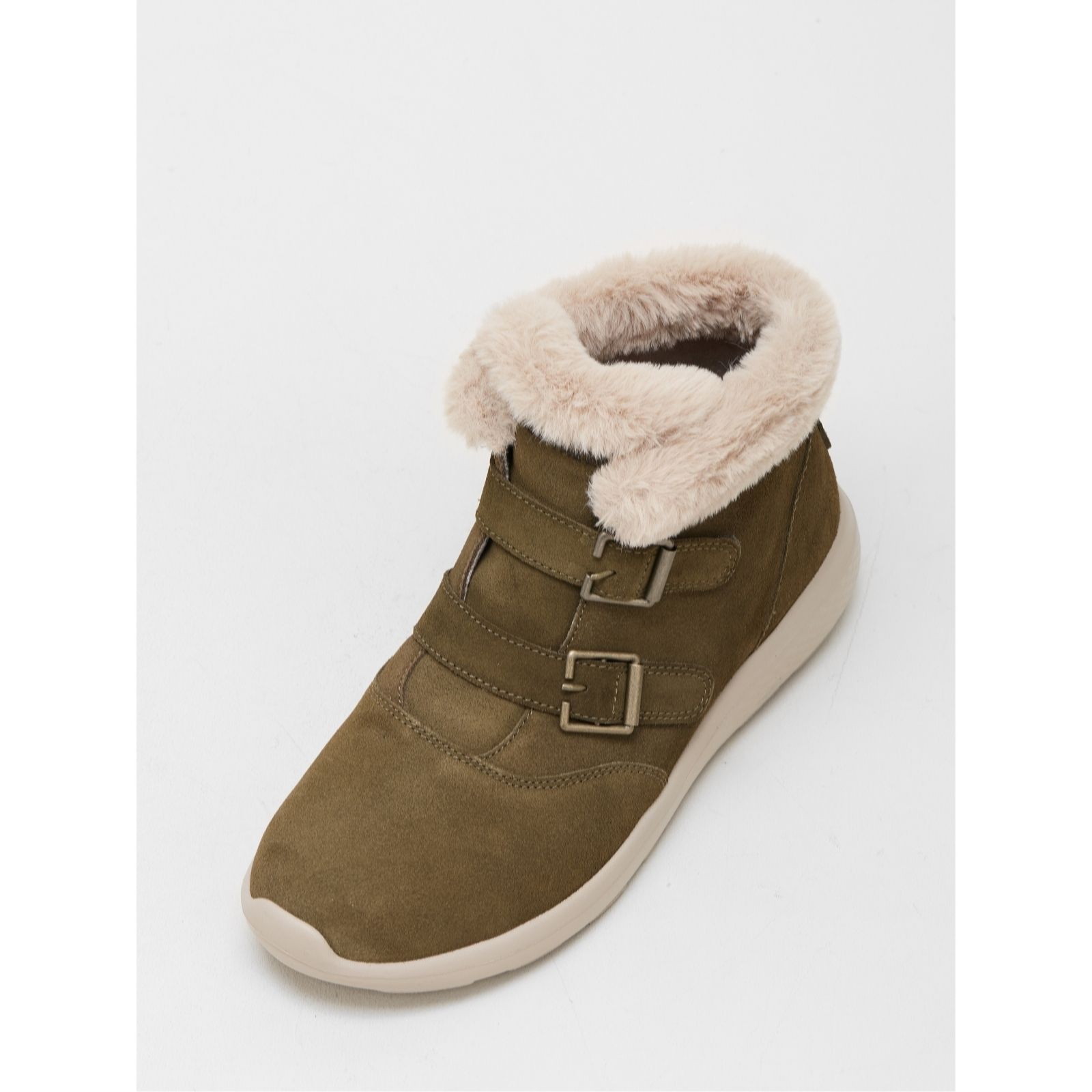 - these ankle boots aren't only practical, they look great too! Boasting luxuriously soft trims and chic suede, they will ensure your feet enjoy the ultimate comfort and the smart buckle detailing gives them a stylish finishing touch so you can wear them with almost anything.