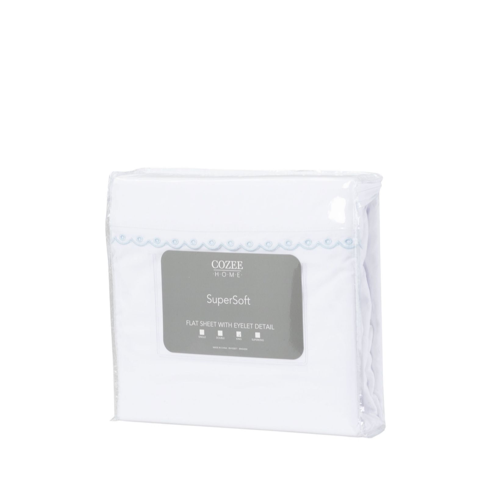 Transform your bedroom into a sanctuary of comfort with the Supersoft flat sheet from Cozee Home, featuring elegant eyelet detailing. Crafted from 100% polyester, this sheet boasts a plush 120gsm microfiber composition, offering a gentle touch against your skin. Perfect for adding a touch of sophistication to your bed, this sheet is an ideal choice for indulging in a restful night's sleep or refreshing your bedding collection with a stylish twist.