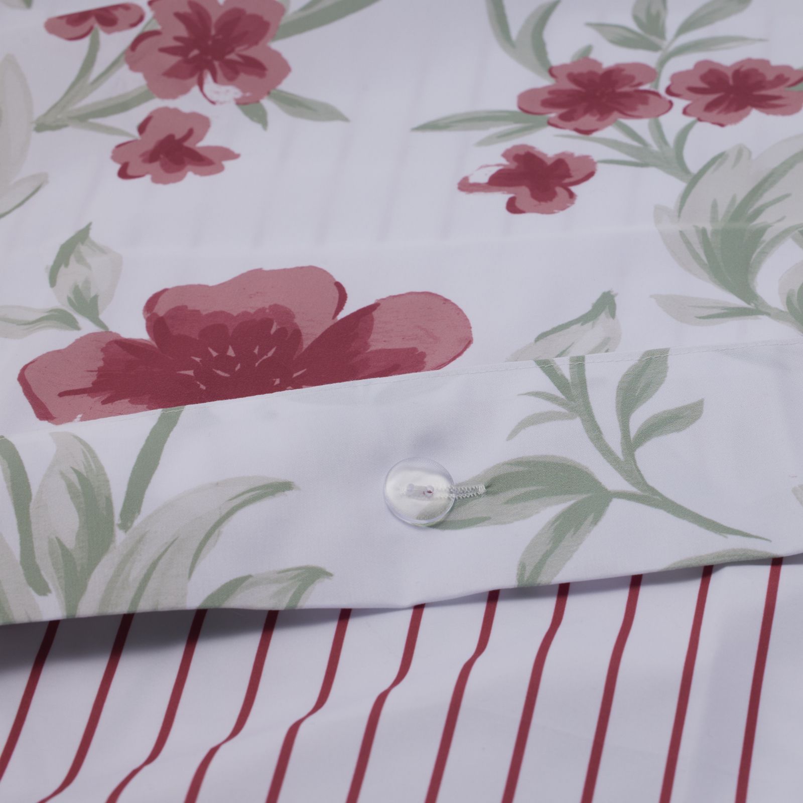 - Floral print front with stripe reverse on the duvet cover and pillowcases