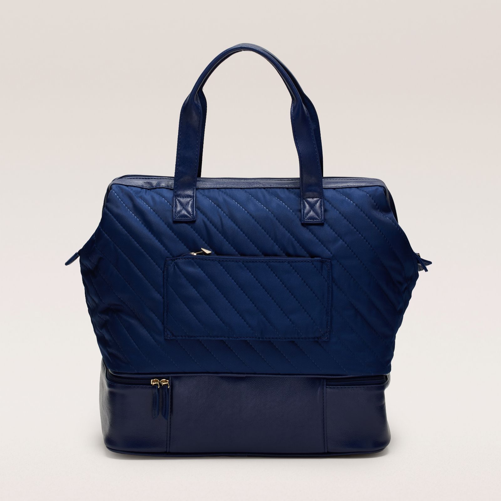 - the weekender bag boasts a detachable cross-body strap and a trolley sleeve for easy carrying, plus a dedicated laptop compartment that's perfect for a business trip. And if you're a shoe-aholic, there's an entire shoe compartment at the bottom for all your favourite pairs.