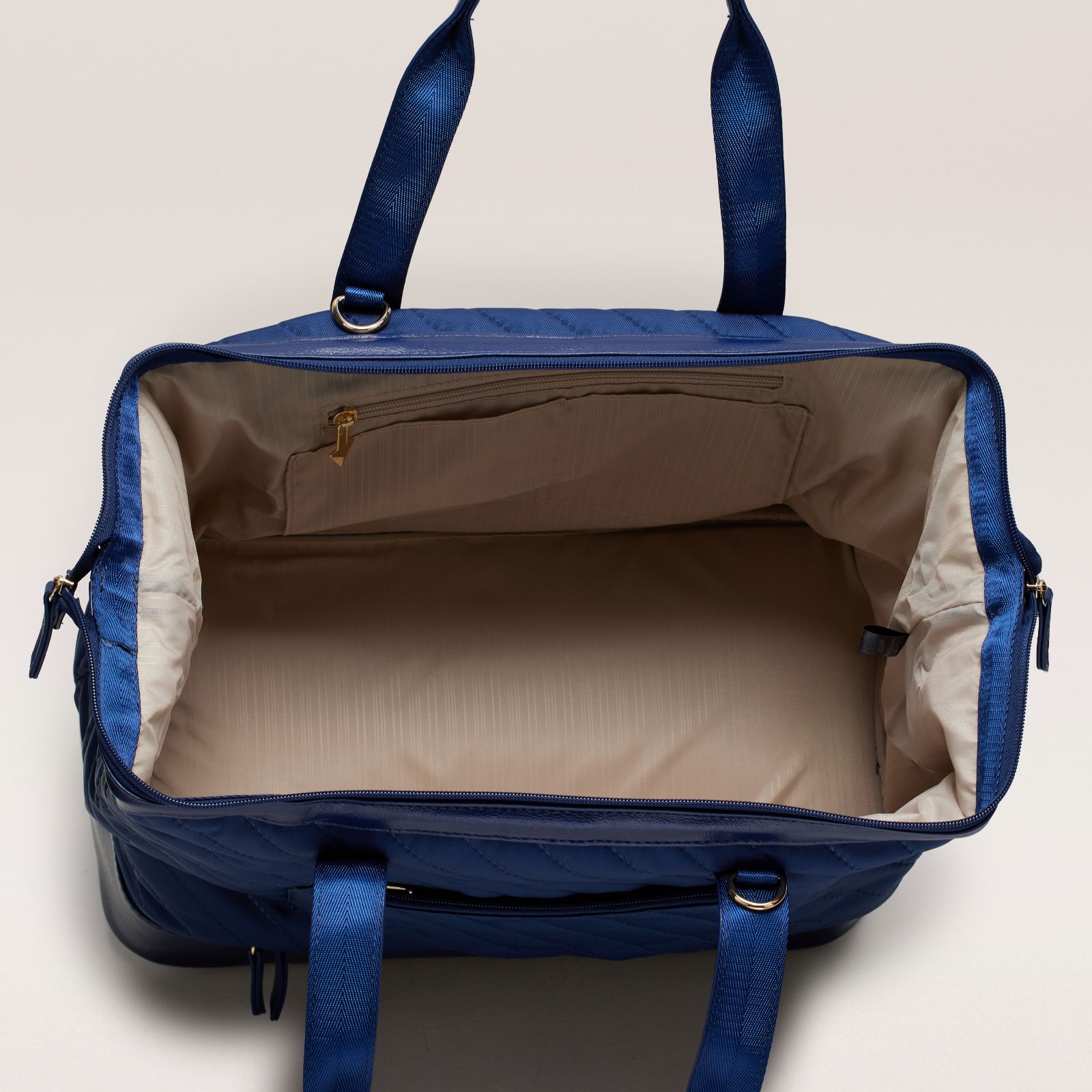 - Weekender tote: geometric design, shoe and laptop compartments, trolley sleeve, zipped pocket, matching interior lining