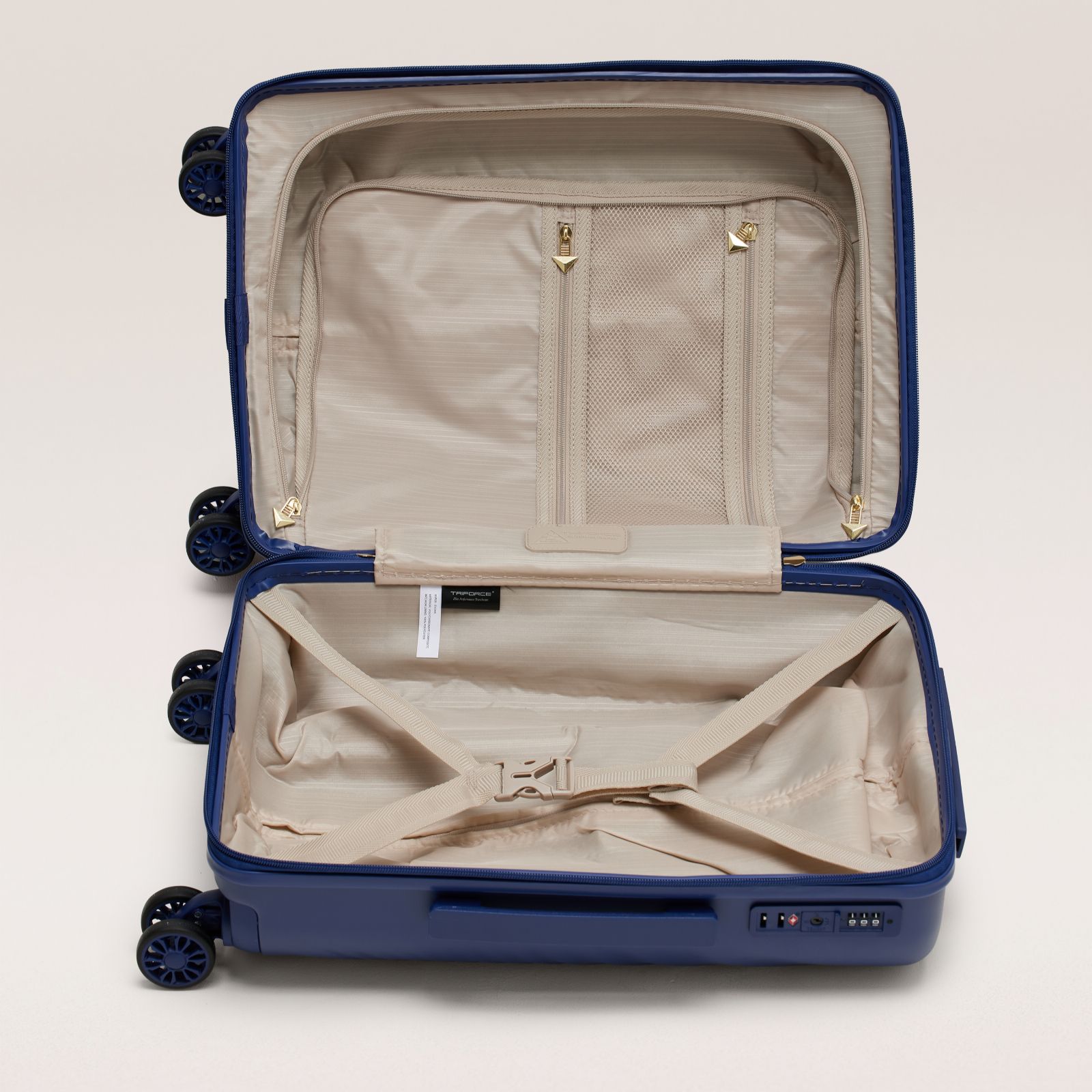 - featuring a smooth eight-wheeled design and an integrated TSA lock, plus an organised interior with tie-down straps and three zipped pockets, this suitcase is the carry-on upgrade of your holiday dreams. Psst… there's even a cupholder at the back!