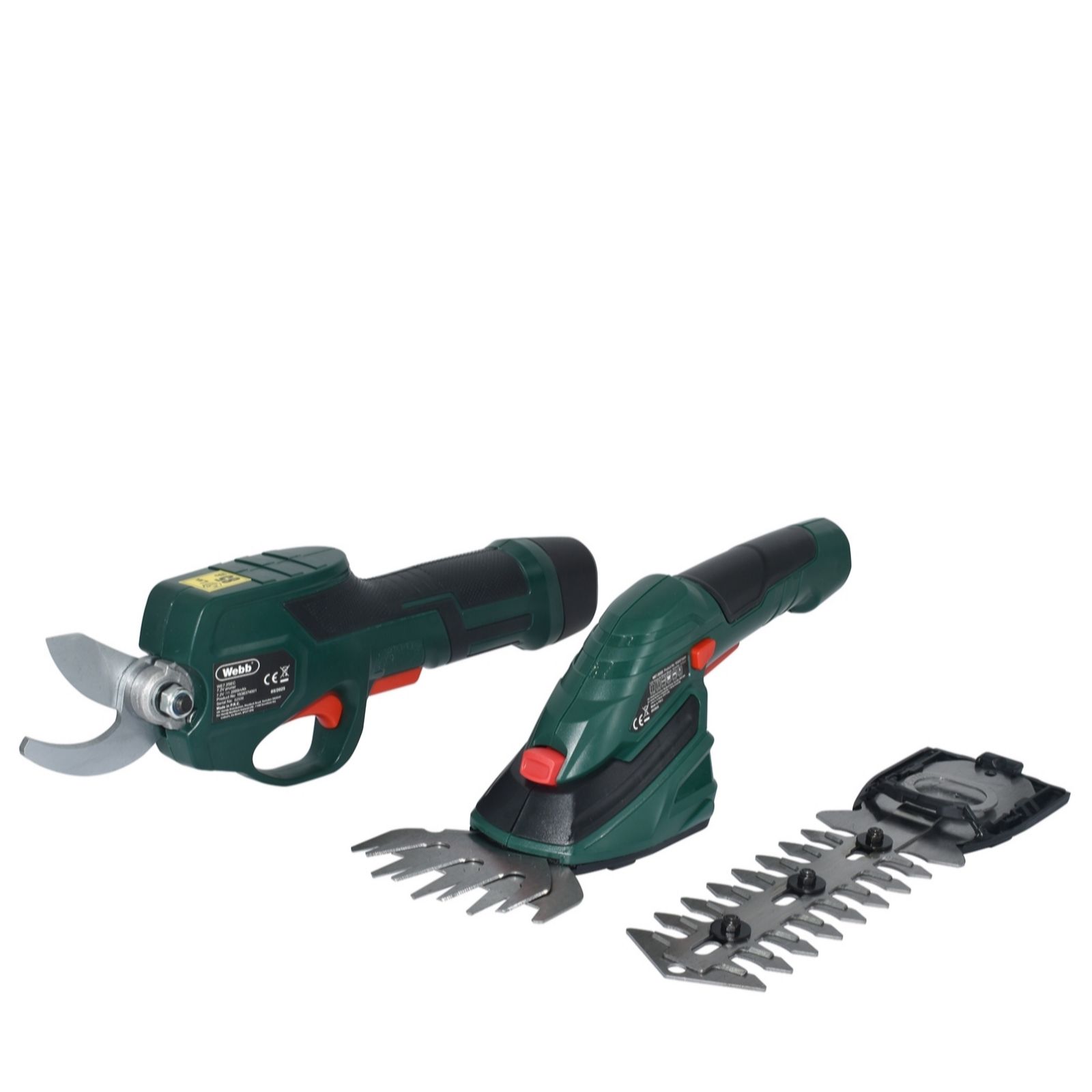 Tame your garden with the Webb Pruner & Shear Set, complete with a storage box. With the freedom of lightweight, cordless power, this set of Grass & Shrub Shears and Secateurs is your do-it-all set for an effortlessly pruned, professional-looking garden. Whether you're shaping hedges, neatening lawn edges or pruning back tough stems, this set will take your space from messy to magnificent in no time.