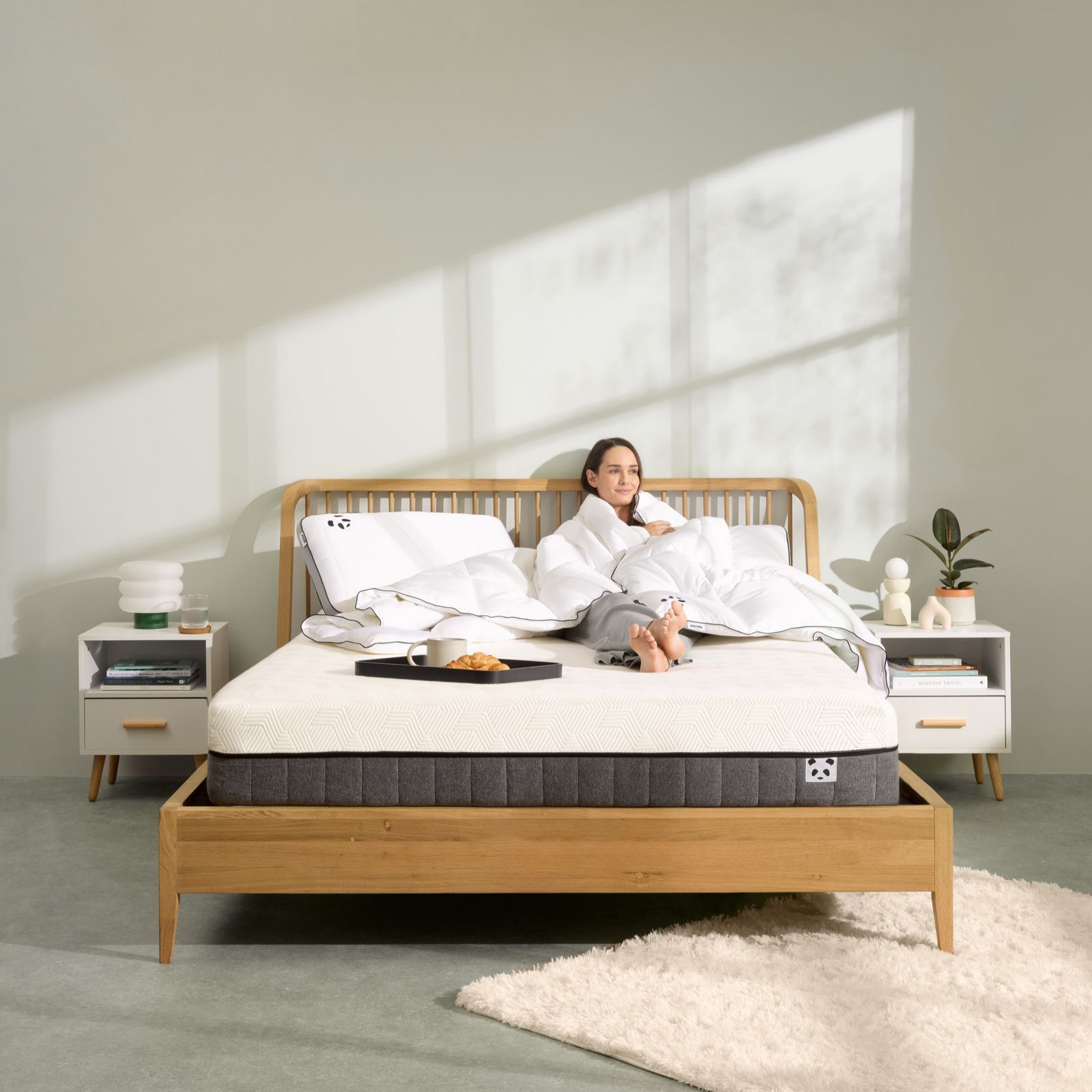 Refresh your sleep routine with the Panda London hybrid bamboo mattress, expertly blending memory foam and pocket springs for exceptional comfort and support. Featuring six innovative layers, including bamboo-infused BioCell Foam for breathability and DualFlex Foam for orthopaedic alignment, it's finished with a hypoallergenic, thermoregulating bamboo cover - perfect for year-round comfort and uninterrupted nights.