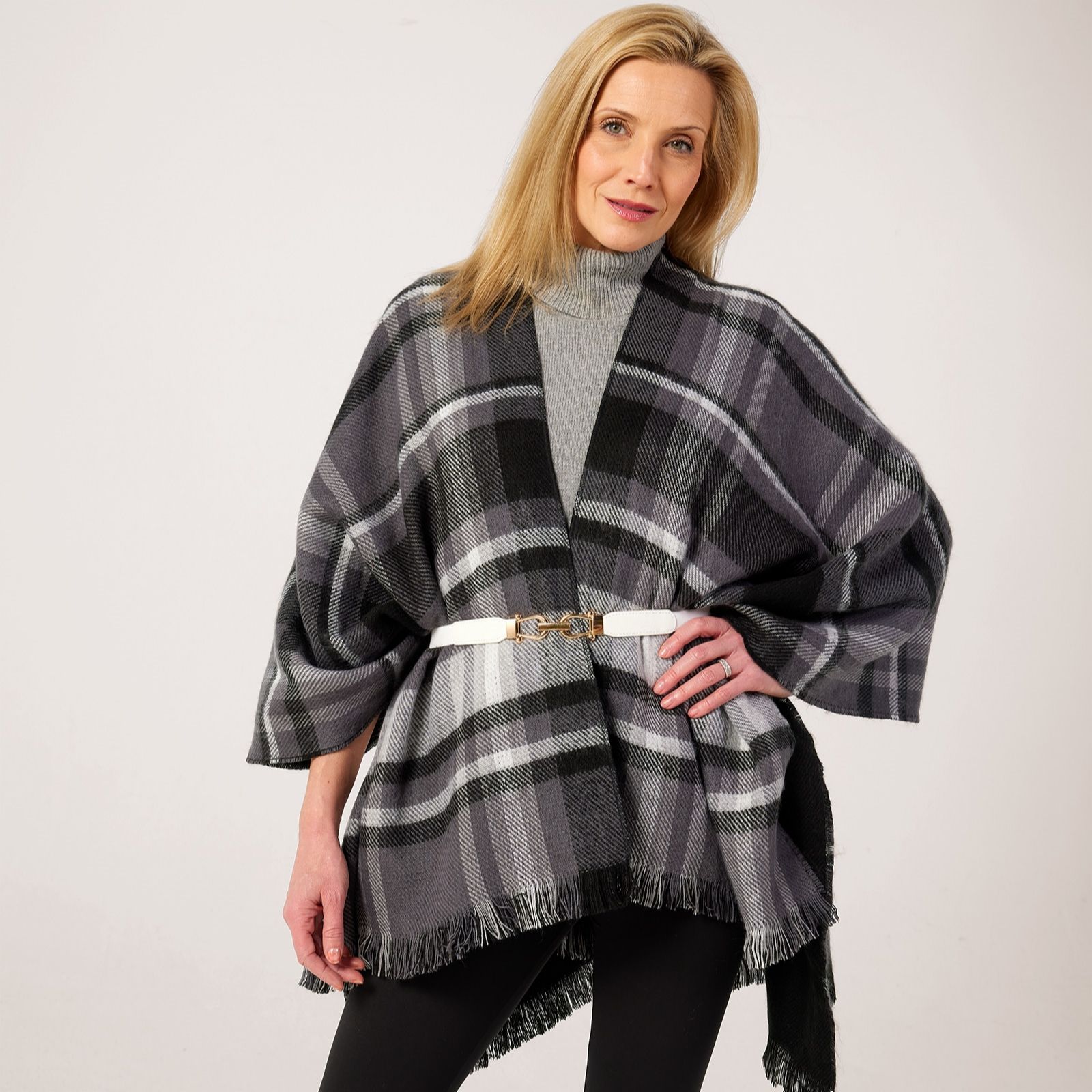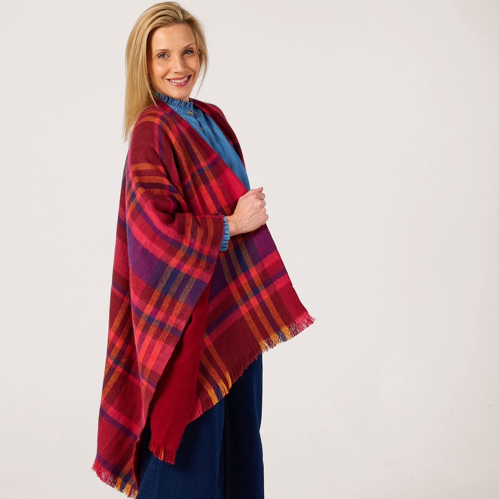 Drape yourself in timeless elegance with the Paul Costelloe Dressage reversible wrap, a chic layering piece that offers two looks in one. Crafted from acrylic for comfort and warmth, it's reversible, allowing you to effortlessly switch between a solid hue and a bold check pattern to suit your mood. It can be styled as a wrap or an oversized scarf and comes beautifully presented in a Paul Costelloe dust bag - perfect for gifting to a fashion-forward loved one.