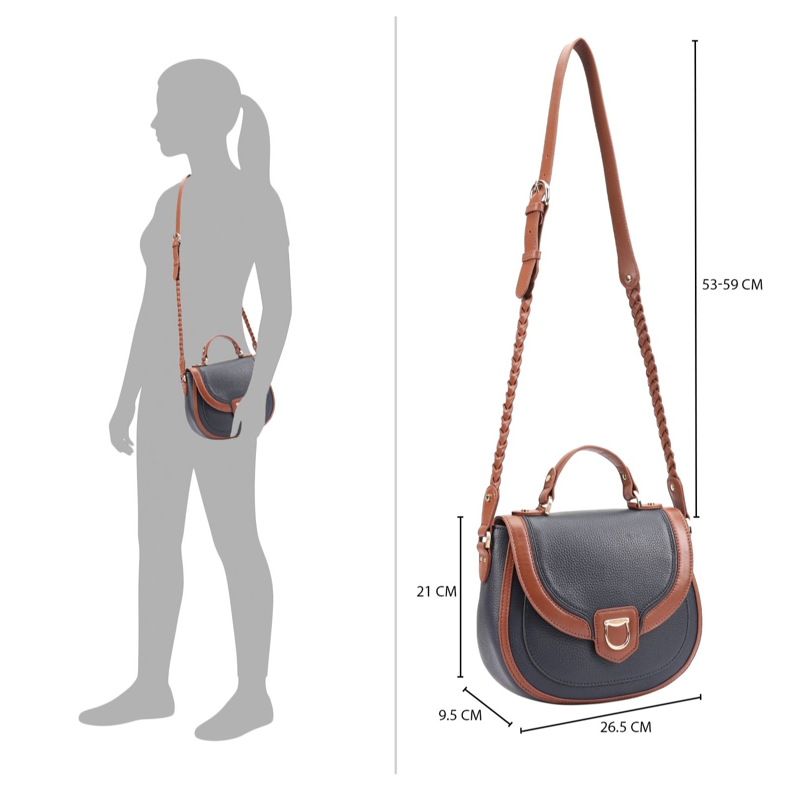 • Adjustable long strap: 53cm to 59cm (20'' to 23.2'')