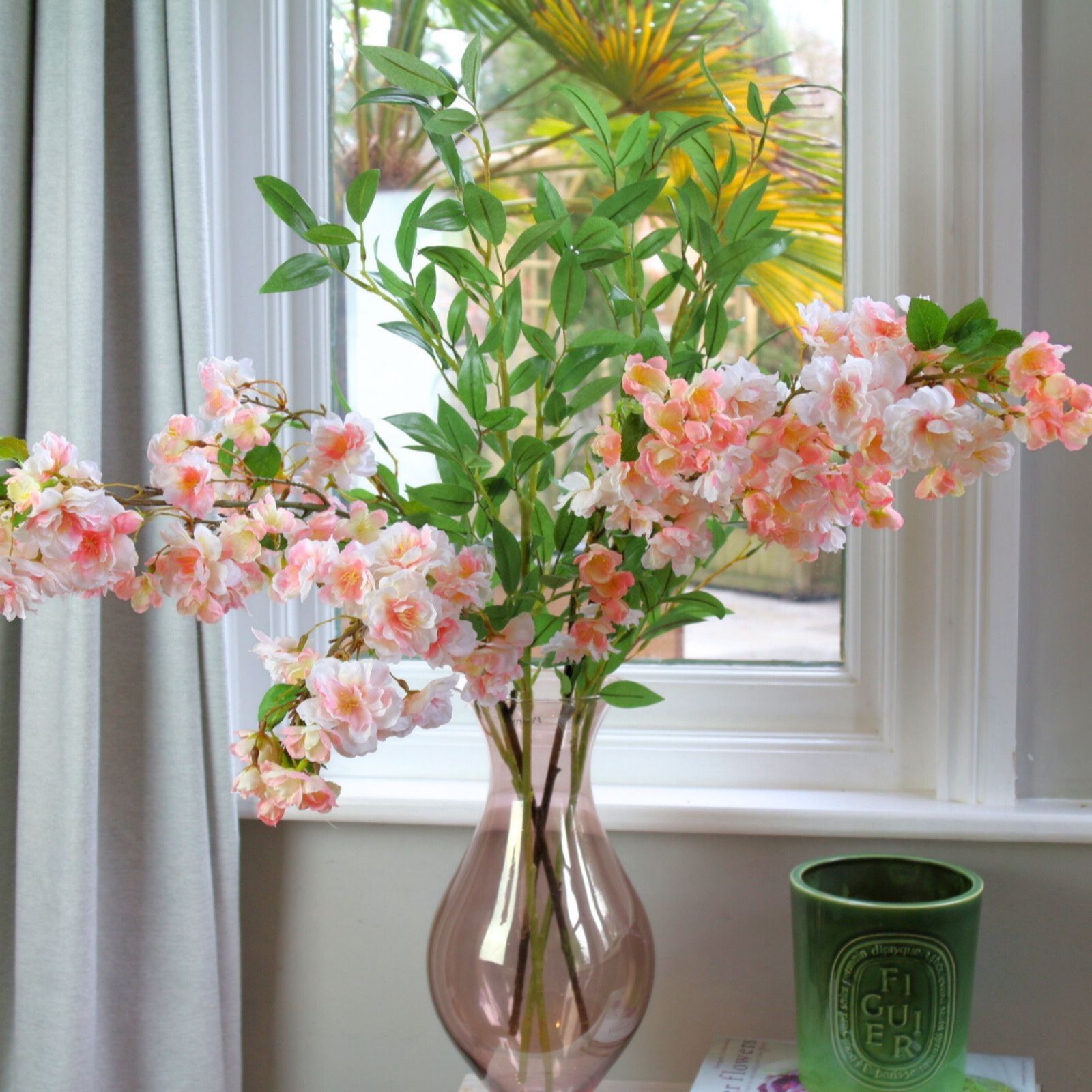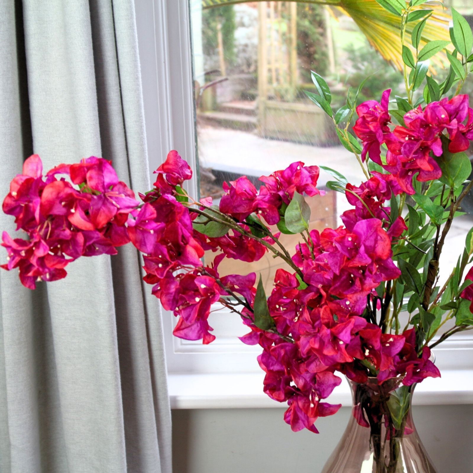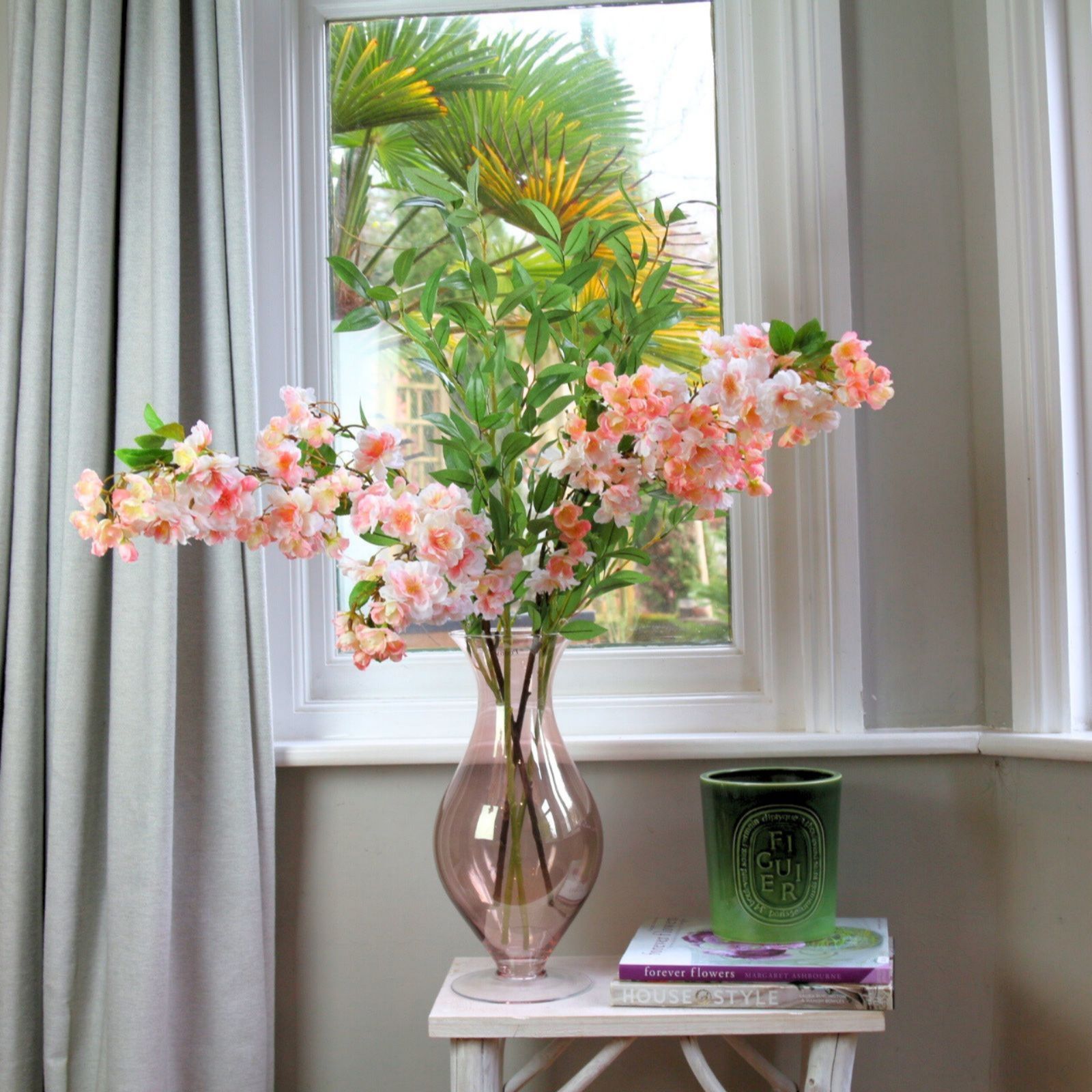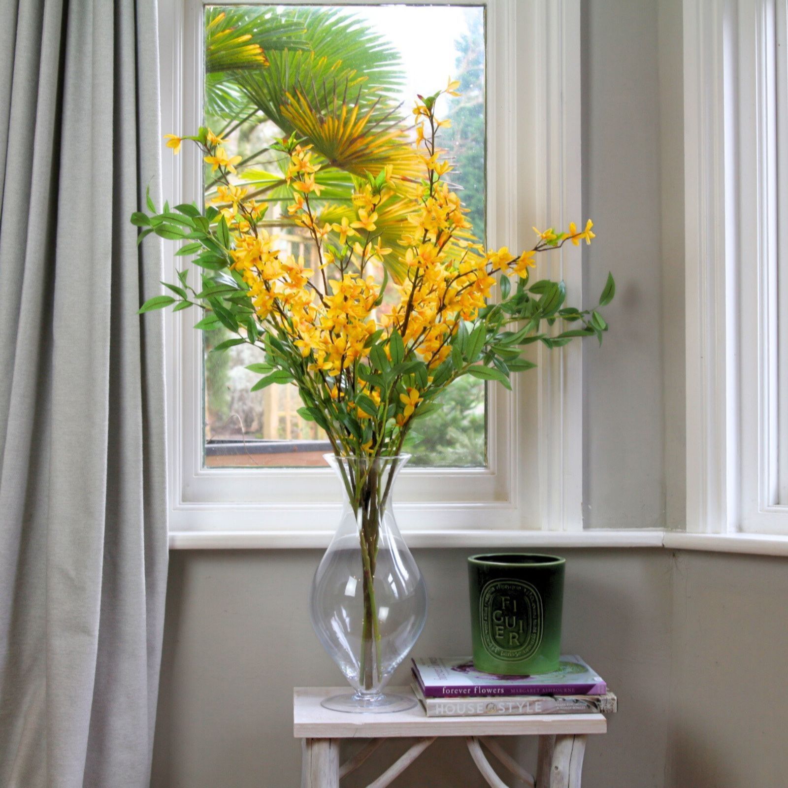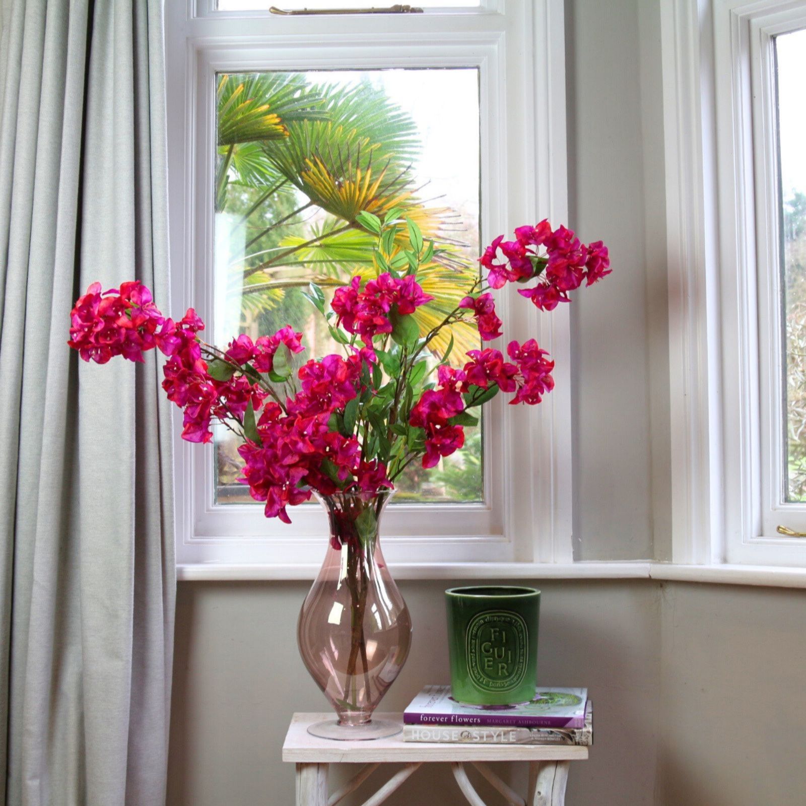 Create an inviting atmosphere in your home with this elegant Flowers & Greenery In Hourglass Vase from Peony. The lifelike peonies, blossoms, bougainvillea and forsythia are artfully arranged to bring a touch of timeless beauty to any room. This arrangement is housed in a stylish hourglass vase, adding a sophisticated charm that complements both modern and traditional decor. Perfect for brightening up your living room, dining area or bedroom, this piece is a lovely addition to your home.