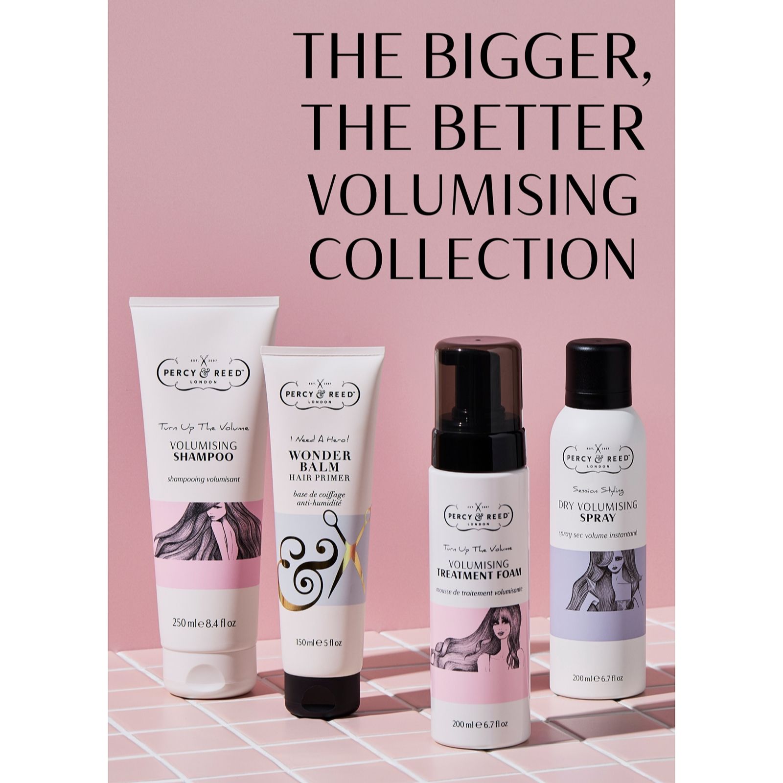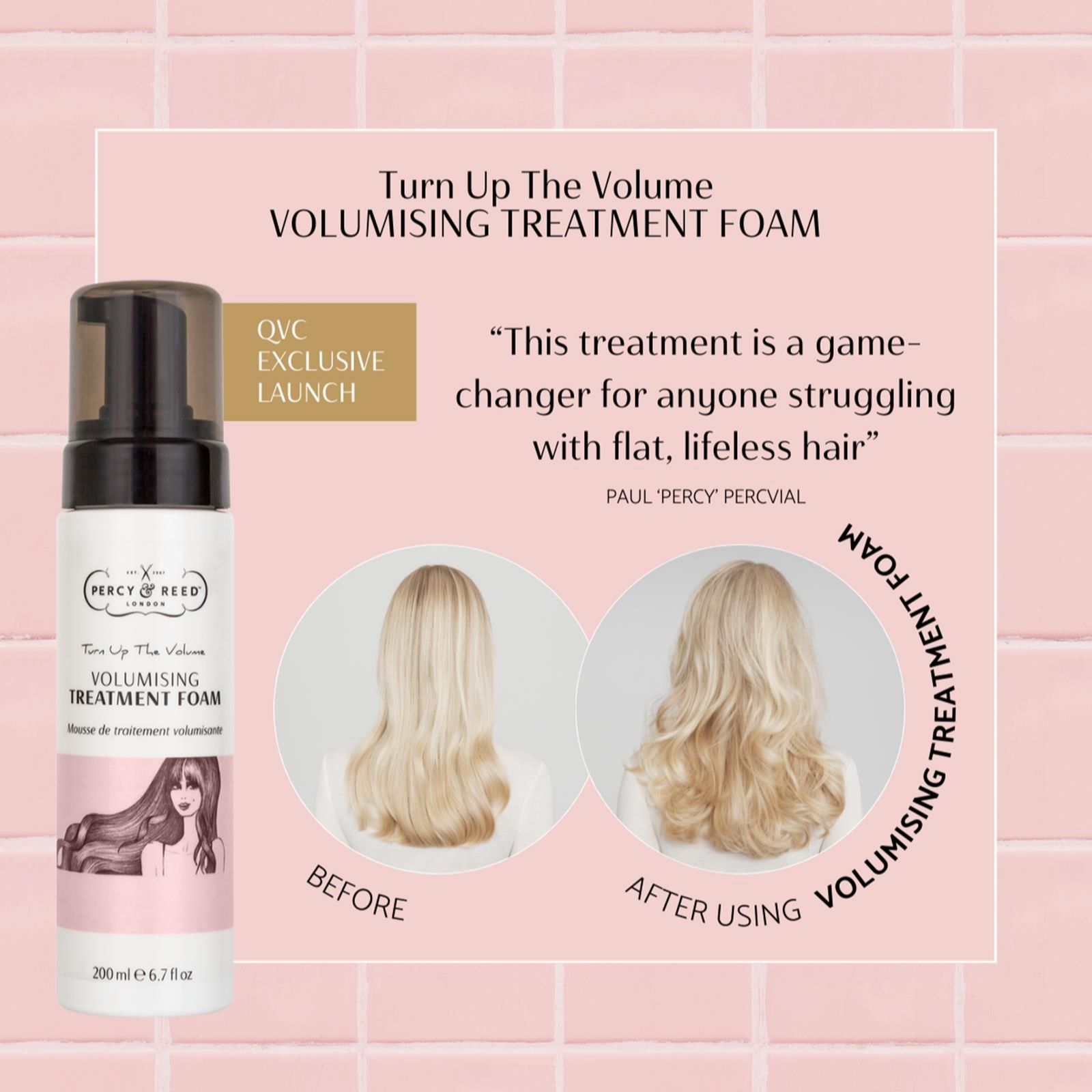 Raise your hair game with The Bigger, The Better Volumising Regime from Percy & Reed, designed to help give your locks a boost of va-va-volume. This four-piece haircare set includes the NEW Turn Up The Volume Foaming Treatment Mask, which is currently only available at QVC, alongside full-sized versions of its award-winning shampoo and volumising spray, and a supersize hair primer. This collection will work in harmony to create voluminous hairstyles, beautifully infused with Percy & Reed's signature scents.