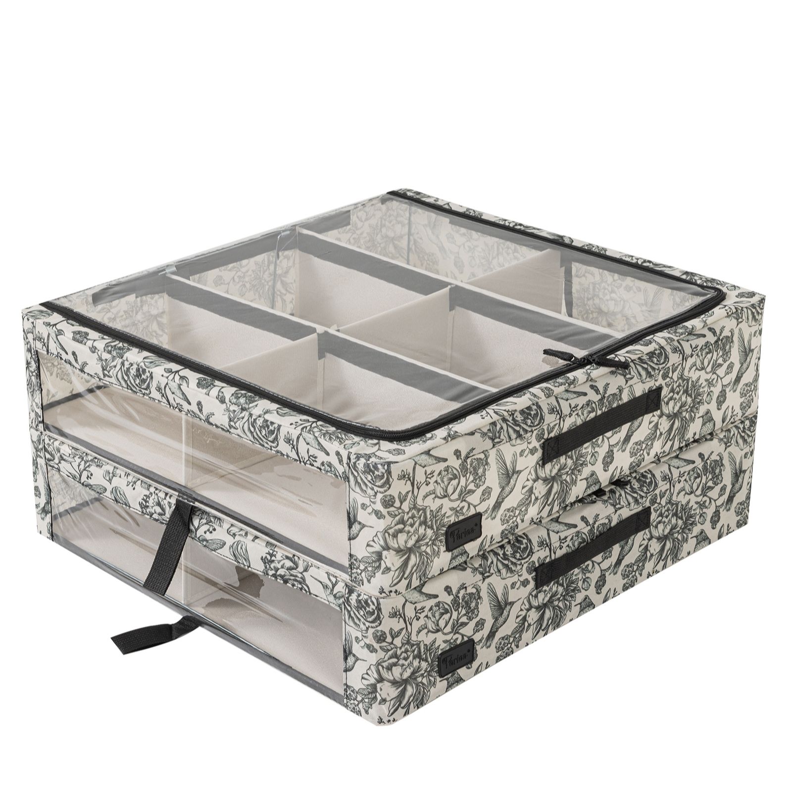 - Adjustable and removable dividers create up to six compartments per box