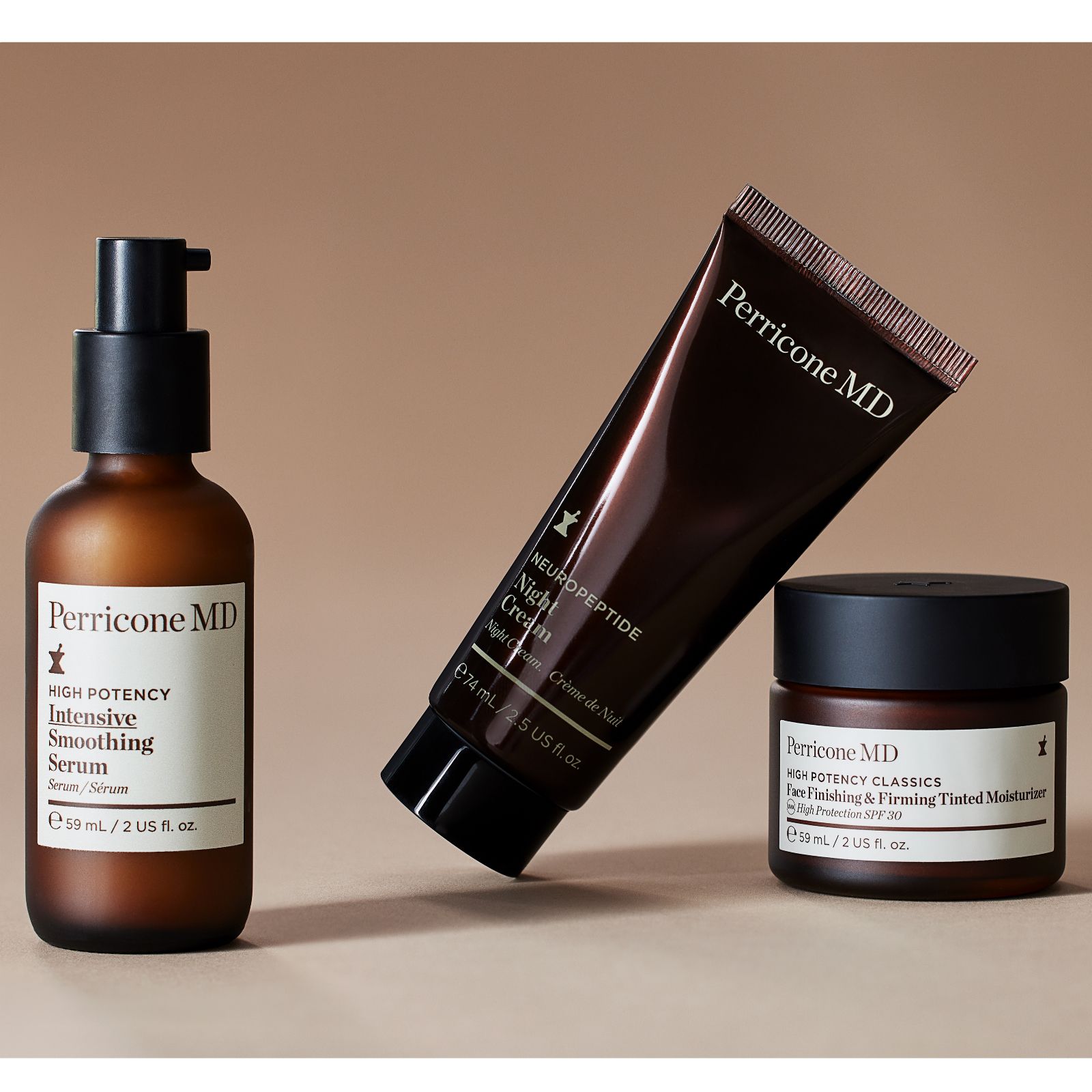 Discover your new skincare essentials with this superb trio from Perricone, including two bestselling moisturisers for day and night, plus the new Intensive Smoothing Serum from the High Potency range, formulated with niacinamide and ceramides and created to work with your moisturisers to help promote a smooth, hydrated effect. Treat yourself to powerhouse Perricone products - your skin will thank you for it!
