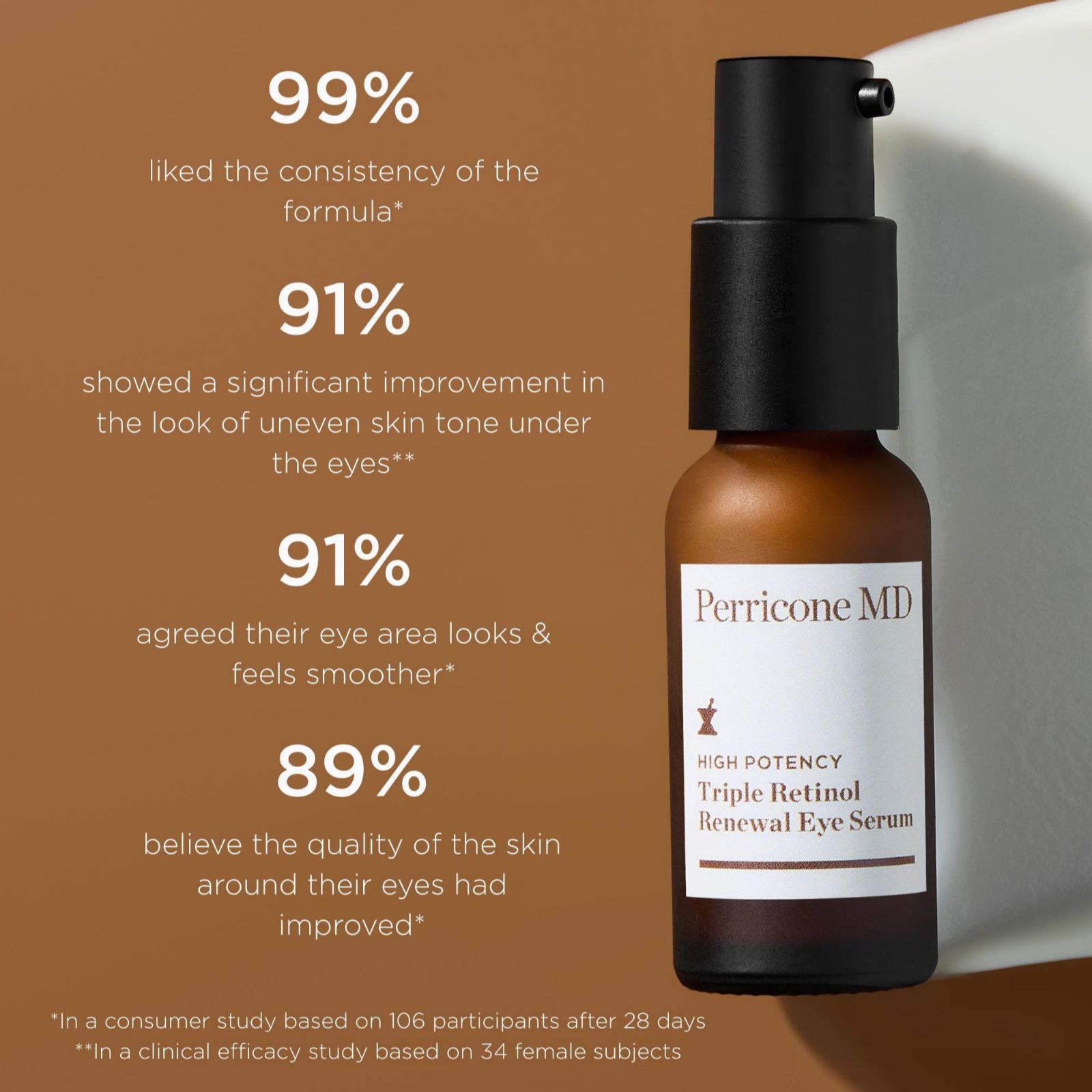 - 1 x Perricone MD High Potency Triple Retinol Renewal Eye Serum (15ml) - powered by coenzyme Q10 and vitamin A
