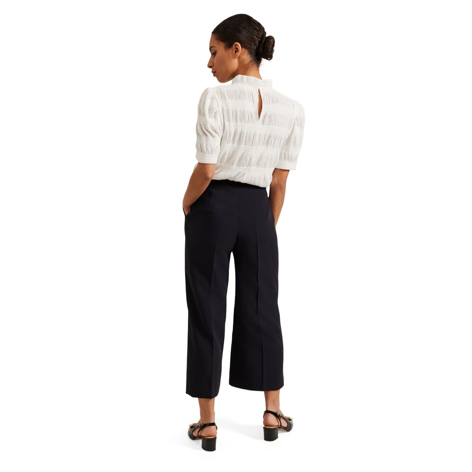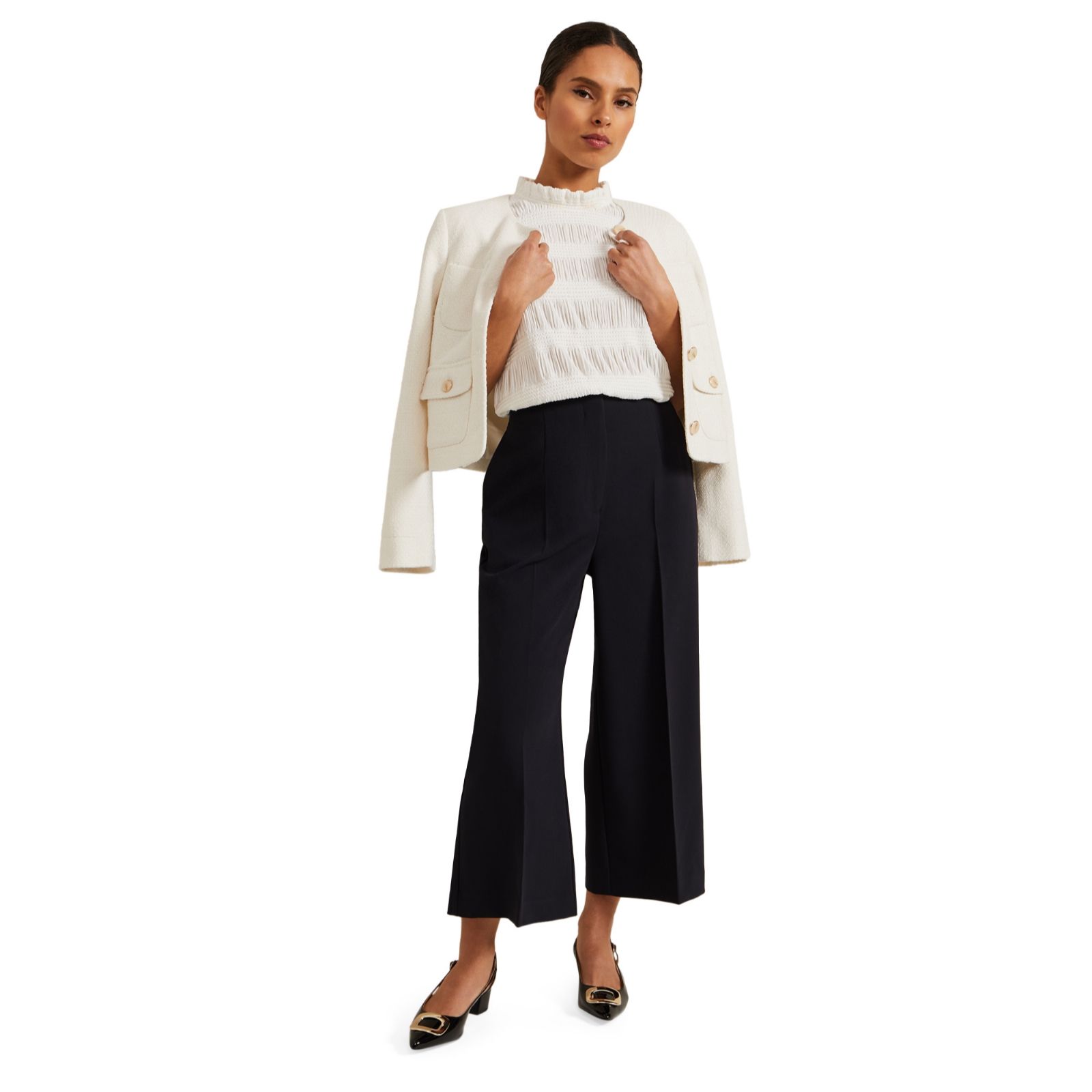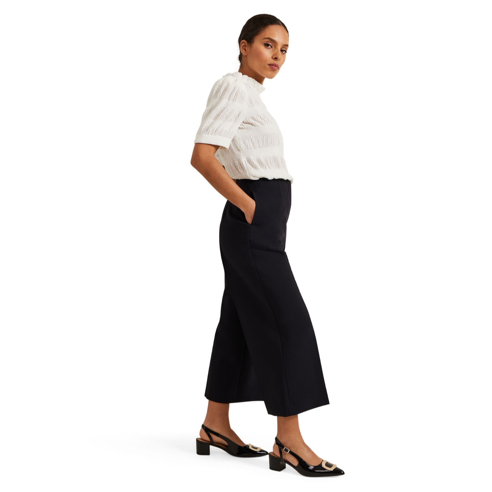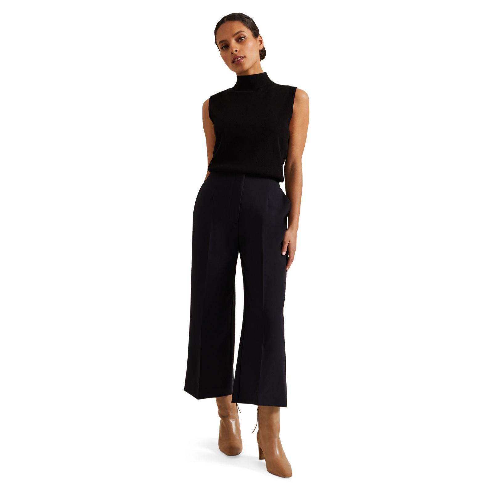 Enhance your wardrobe with the chic and stylish Aubrielle Culotte Trousers from Phase Eight in a petite length. These trendy trousers boast a sophisticated culotte style, perfect for adding a touch of elegance to any outfit. With a high waist and a comfortable fit, these trousers are ideal for both casual and formal occasions. Pair them with a fitted blouse and heels for a polished look or with a relaxed T-shirt and trainers for a more laid-back ensemble.