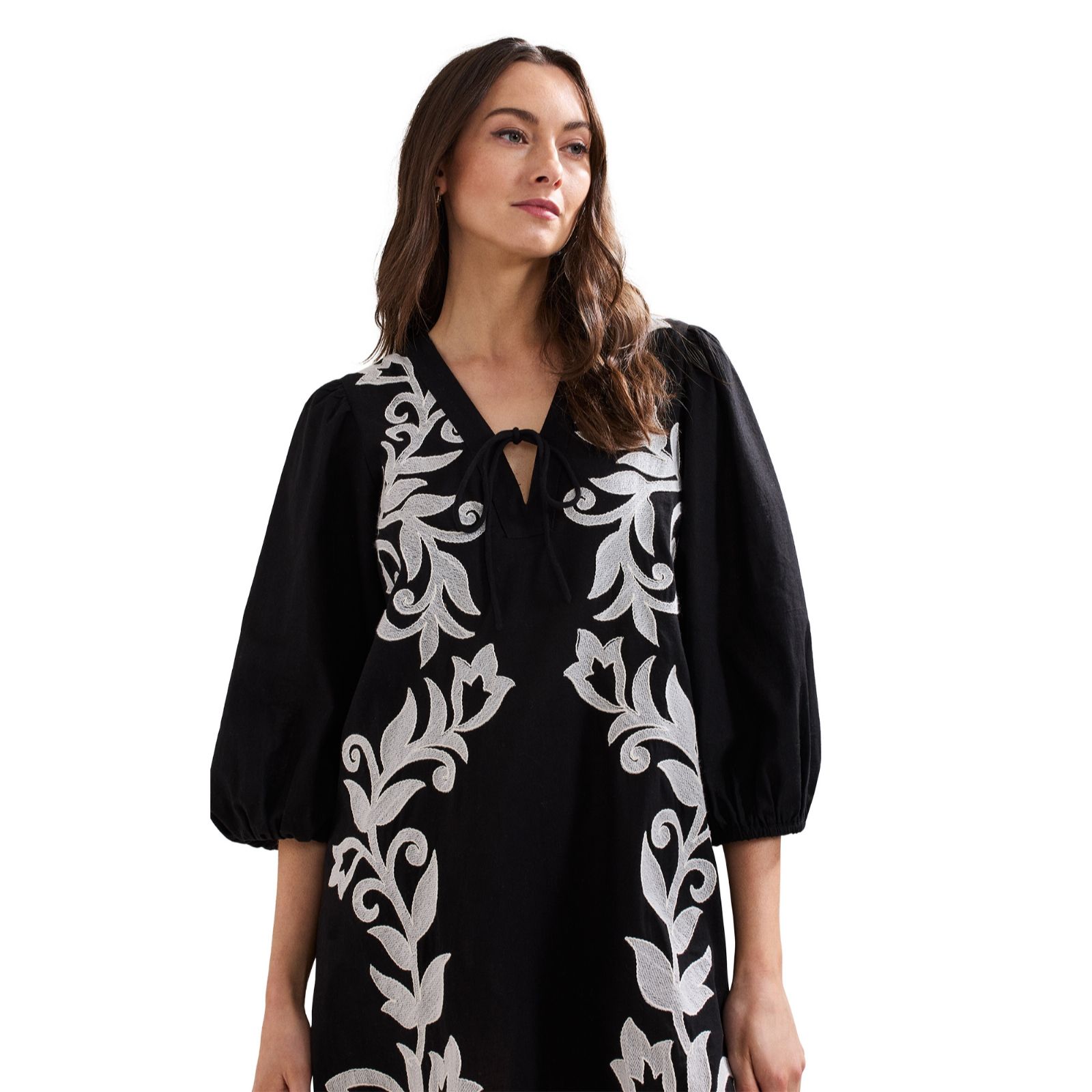 - Button-through front with tunic styling