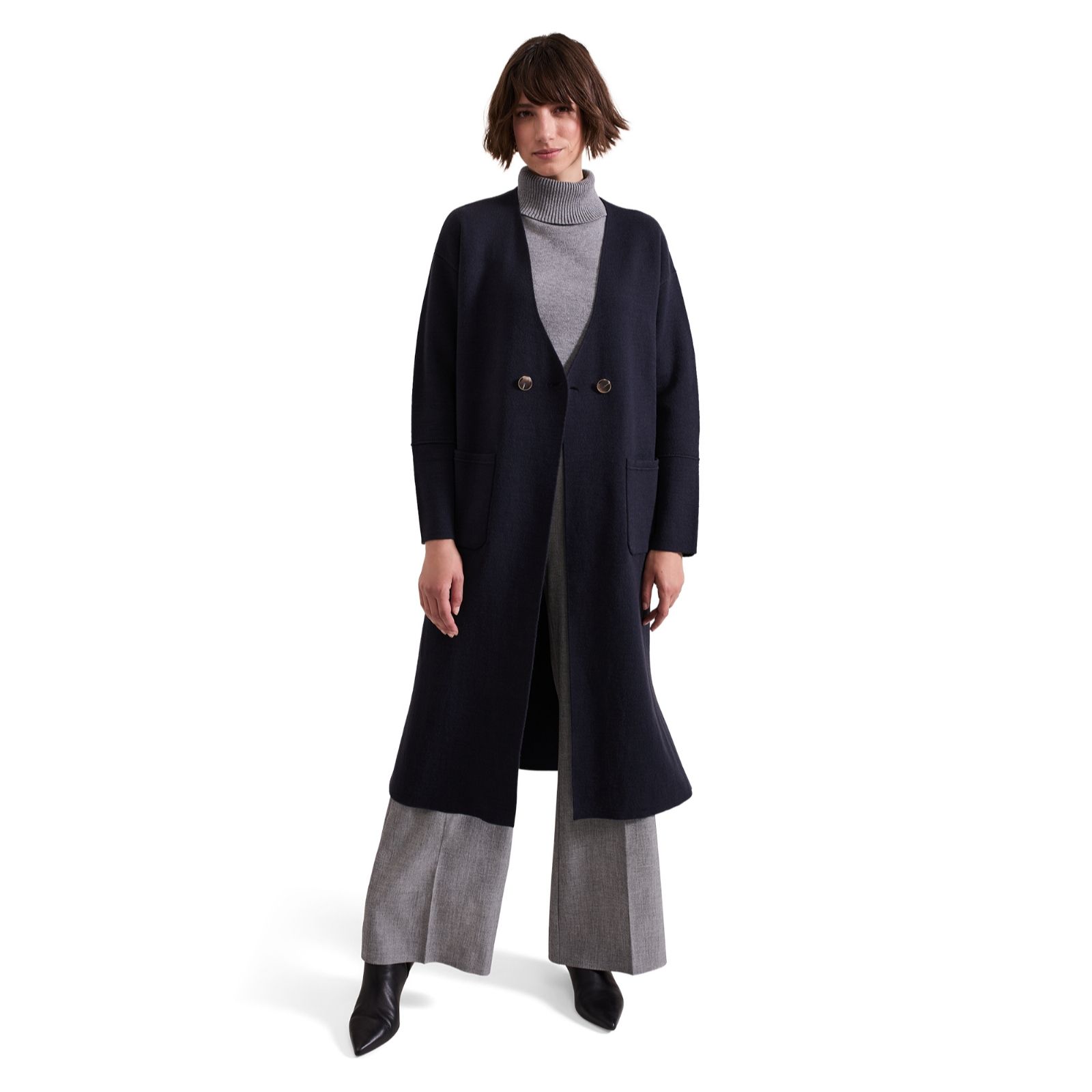 Elevate your seasonal wardrobe with the Phase Eight Destiny double-breasted knitted coatigan. This versatile piece combines the warmth of a coat with the comfort of a cardigan, making it perfect for layering during those transitional months. With its sophisticated double-breasted design and cosy knit texture, it's an ideal choice for both workwear and casual outings. Style it over a blouse and trousers for a chic office look or pair it with jeans and a tee for a relaxed weekend ensemble.