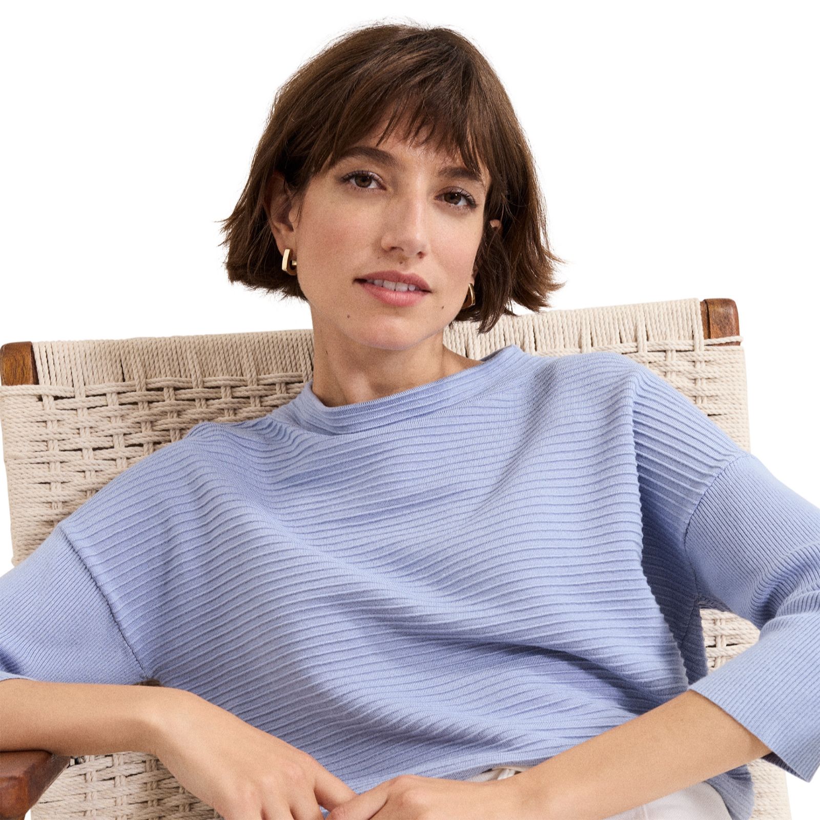 Embrace comfort and contemporary style with the Elise ripple stitch textured knitted jumper from Phase Eight, where a high neckline and intricate ripple detailing add depth and interest to your everyday looks. Whether you're heading to lunch with friends or seeking a cosy layer for office days, this jumper effortlessly balances modern design and everyday wearability. For a chic finish, team it with tailored trousers or your favourite denim jacket.