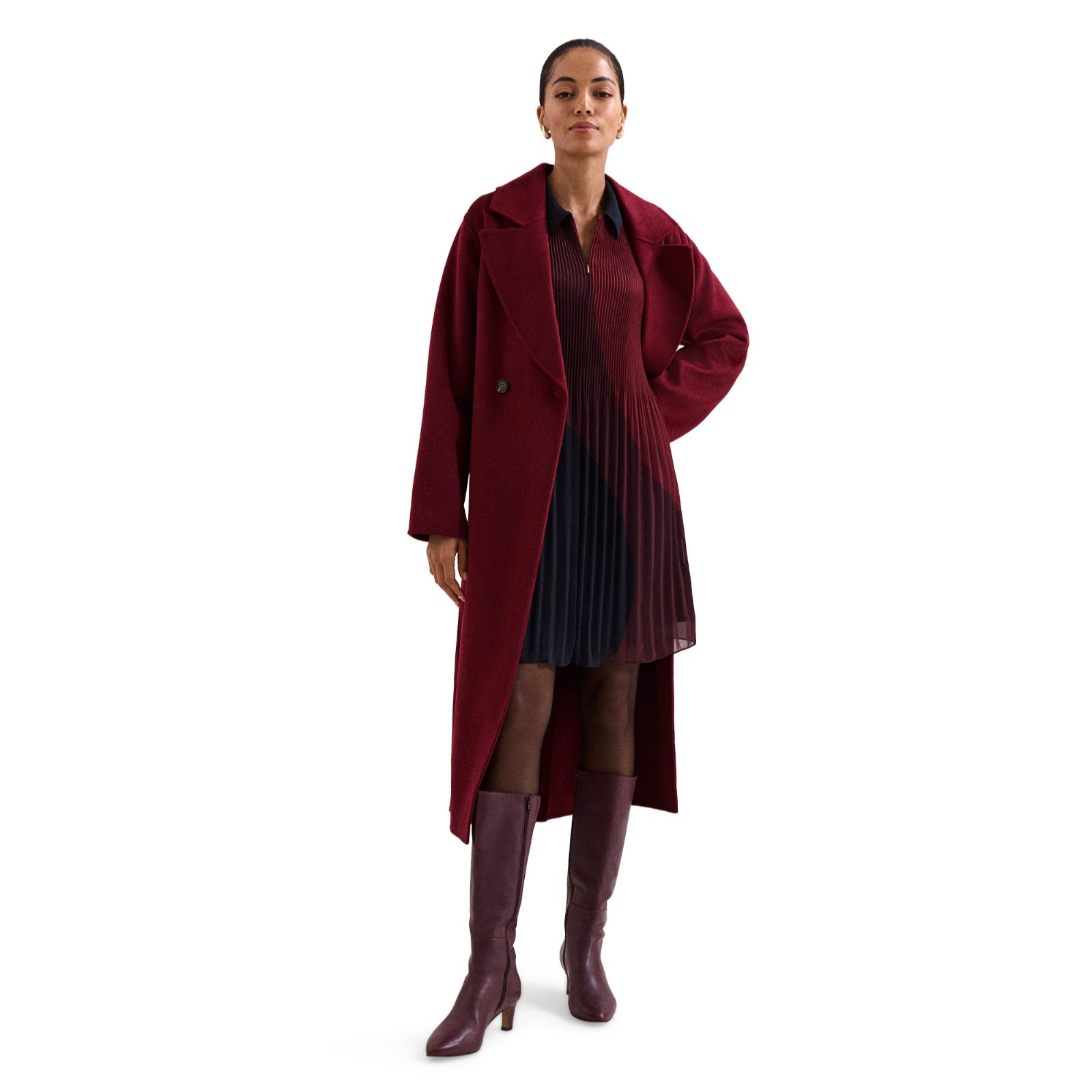 Turn heads in the Ella Colourblock Pleat Swing Dress from Phase Eight, where striking navy and red panels meet fluid pleats for a look thats both bold and effortlessly chic. Perfect for everything from daytime lunches to evening events, its swing silhouette moves beautifully with you. Pair with sleek heels and a clutch for a polished finish, or style with flats for laid-back elegance.