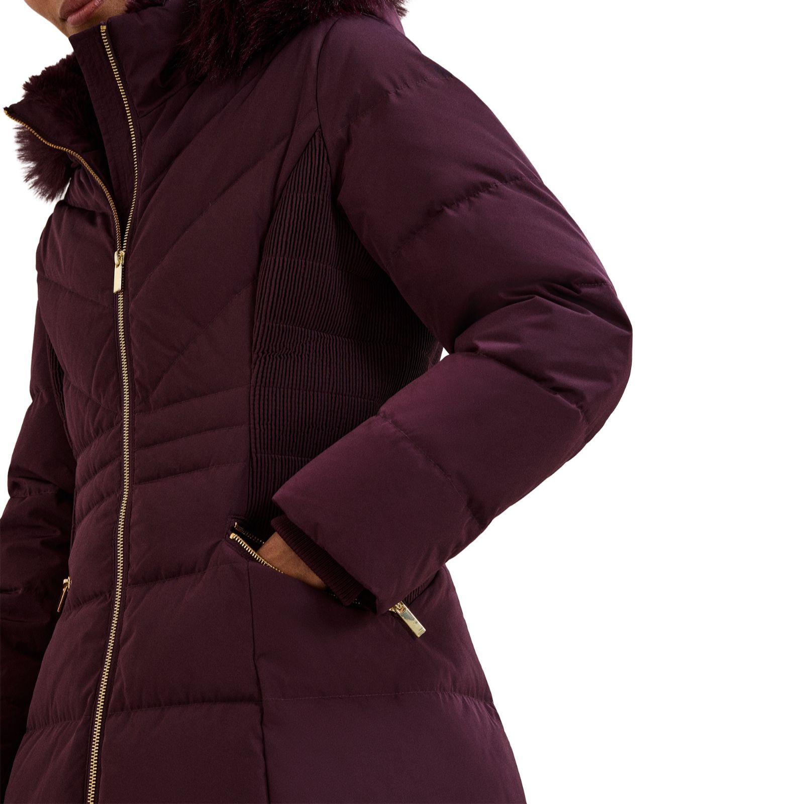- Fur shawl collar for added sophistication